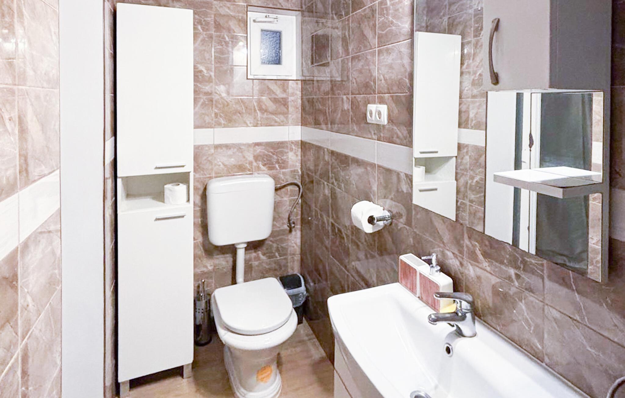 Badezimmer 5m2 (nr. 1) - WC. Warmes und kaltes Wasser. Dusche
