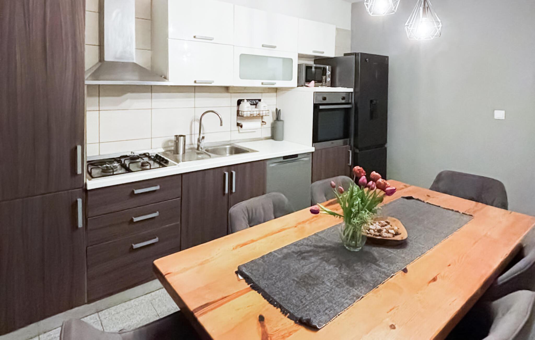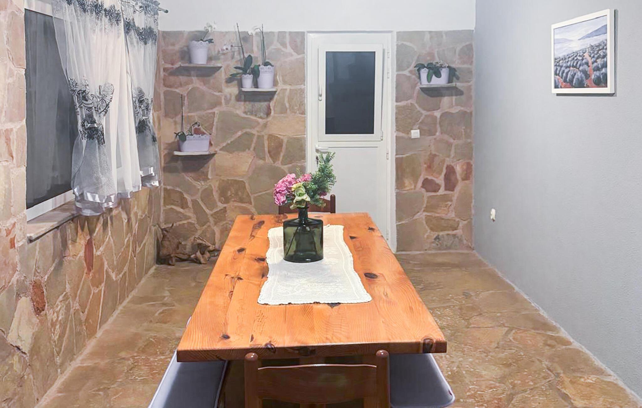 Machen Sie es sich bequem in dieser komfortablen Ferienwohnung, in der Sie mit der ganzen Familie einen gemütlichen Urlaub nahe der Adriaküste genießen können. Versuchen Sie sich in der modernen Küche an kroatischen Gerichten und genießen Sie diese wahlweise im modernen Essbereich oder im rustikalen Ambiente mit Natursteinwänden und Weitblick. Lassen Sie sich nach einem langen Ausflugstag auf dem Sofa nieder und gönnen Sie sich einen guten Film oder einen geselligen Spieleabend.