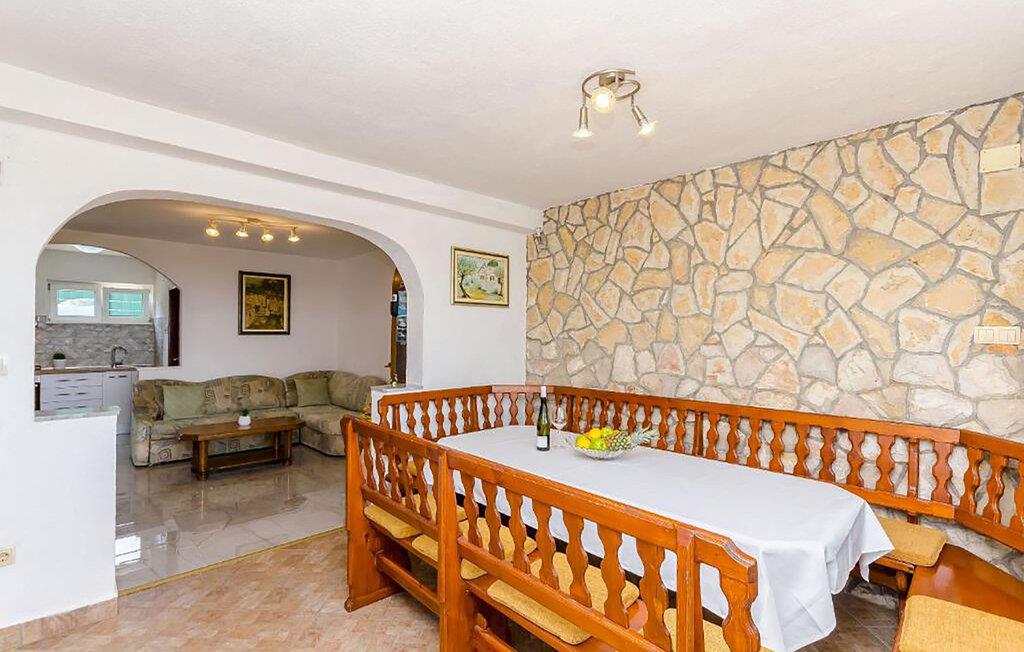 Dieses großzügige und traditionell eingerichtete Urlaubsdomizil heißt Sie, eingebettet in die grüne Landschaft nahe der Küste, herzlich willkommen. Lassen Sie sich vom Ambiente inspirieren und zaubern Sie kroatische Gerichte, die Sie in der rustikalen Essecke in geselliger Runde genießen können. Machen Sie es sich hier für fröhliche Spieleabende bequem oder entspannen Sie mit einem Buch auf dem großzügigen Sofa.