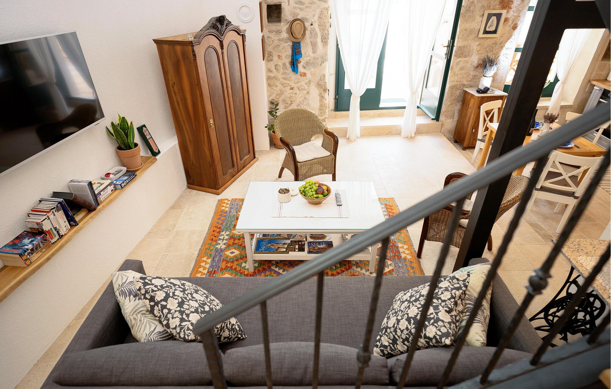 Willkommen im charmanten Ferienhaus auf Hvar, wo traditionelle Steinwände harmonisch mit modernem Design und einem offenen Galeriewohnkonzept verschmelzen. Ideal für ein Paar, das Entspannung und gemeinsame Zeit genießen möchte. Das Haus bietet eine stilvolle Einrichtung und eine traumhafte Terrasse, die sich perfekt zum Kaffeetrinken, Buchlesen und Sonnen eignet. Der atemberaubende Landschaftsblick von der Terrasse rundet das Gesamtbild ab und sorgt für unvergessliche Momente.
