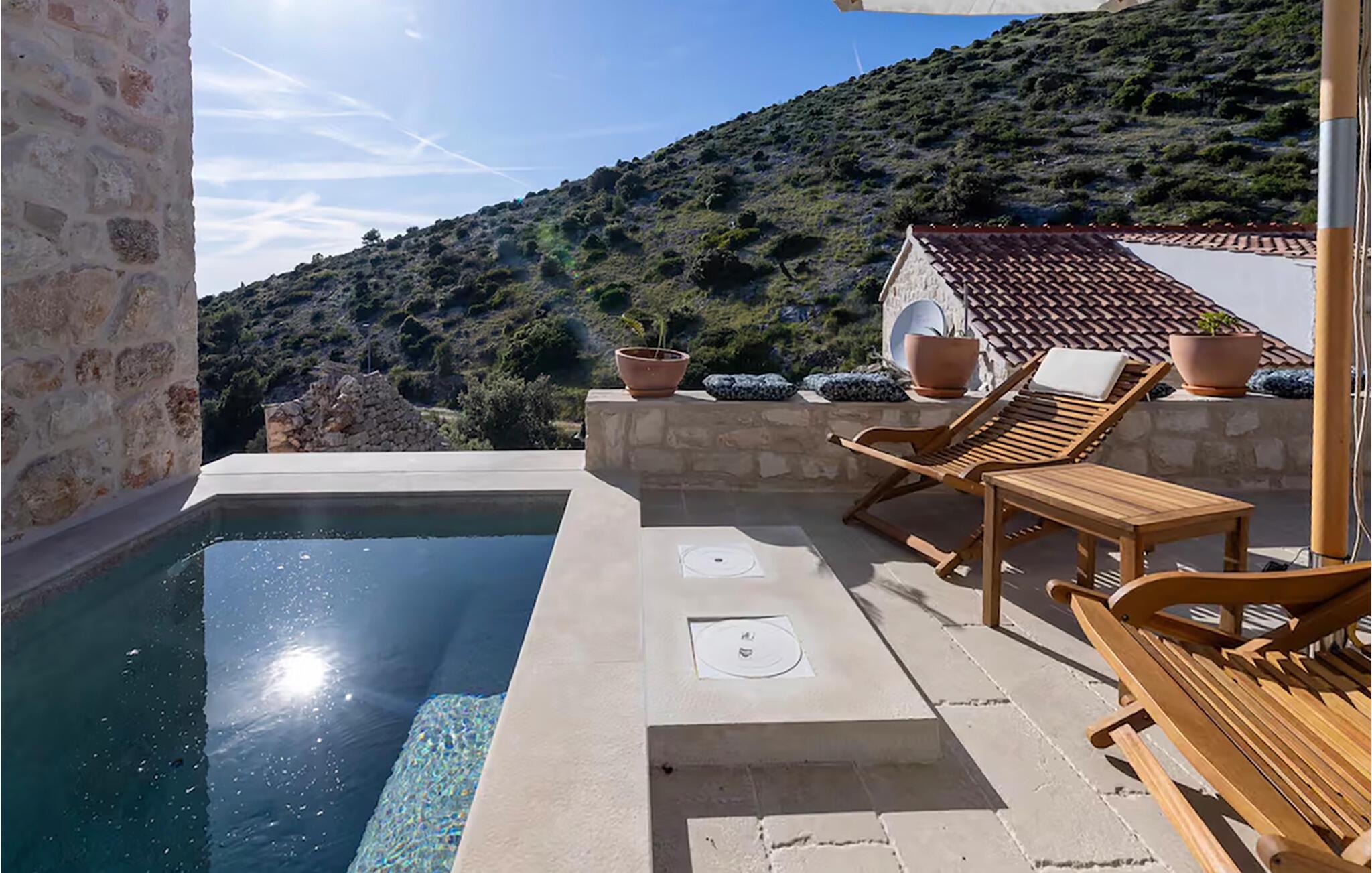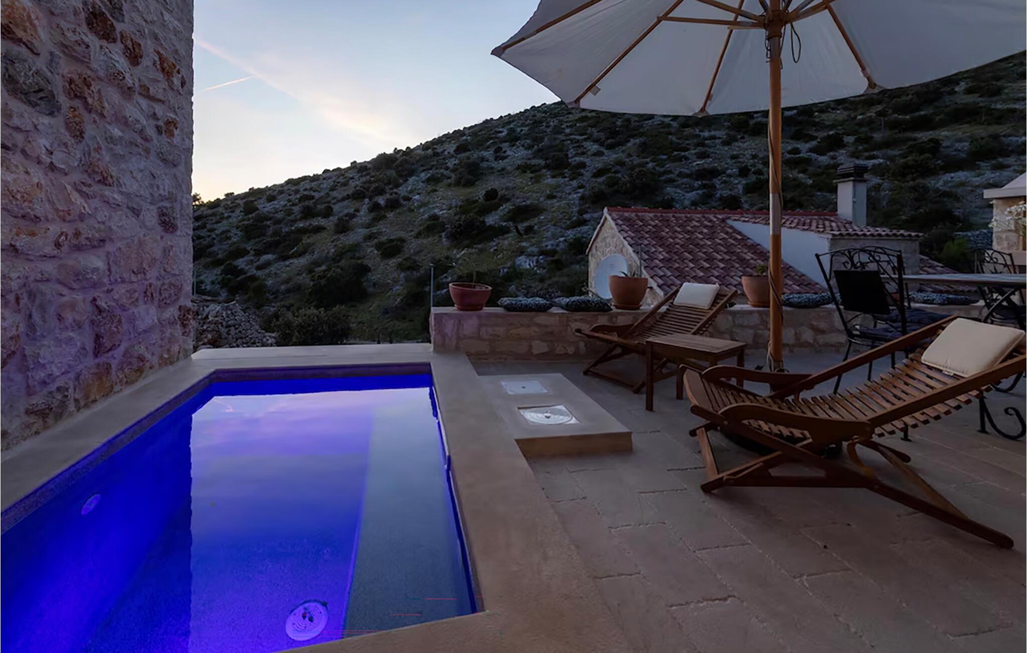 Springen Sie bei Morgensonne in den Pool und entspannen Sie sich anschließend auf einer Sonnenliege. Von hier aus haben Sie einen fantastischen Bergblick. Bereiten Sie abends ein saftiges Steak auf dem Grill zu und essen Sie gemeinsam in der schönen Abendstimmung, die rund um die Villa bei Sonnenuntergang entsteht.