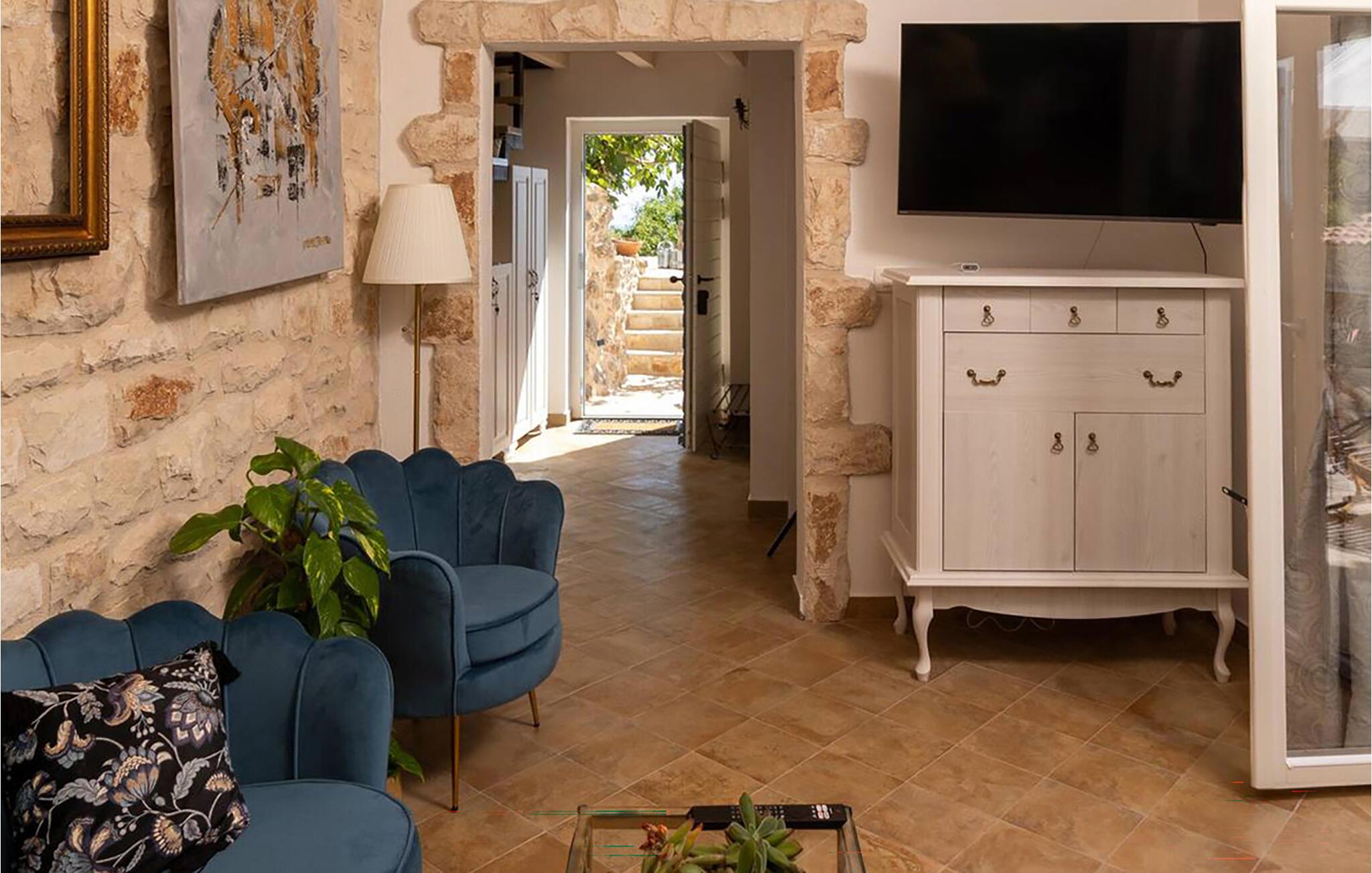 Diese beeindruckende Natursteinvilla verspricht Ihnen einen Urlaub der Extraklasse. Verbringen Sie entspannte Stunden in den im Landhausstil eingerichteten Wohnräumen, bereiten Sie sich frische Mahlzeiten in der modern ausgestatteten Küche zu oder streamen Sie Ihre Lieblingsserie.