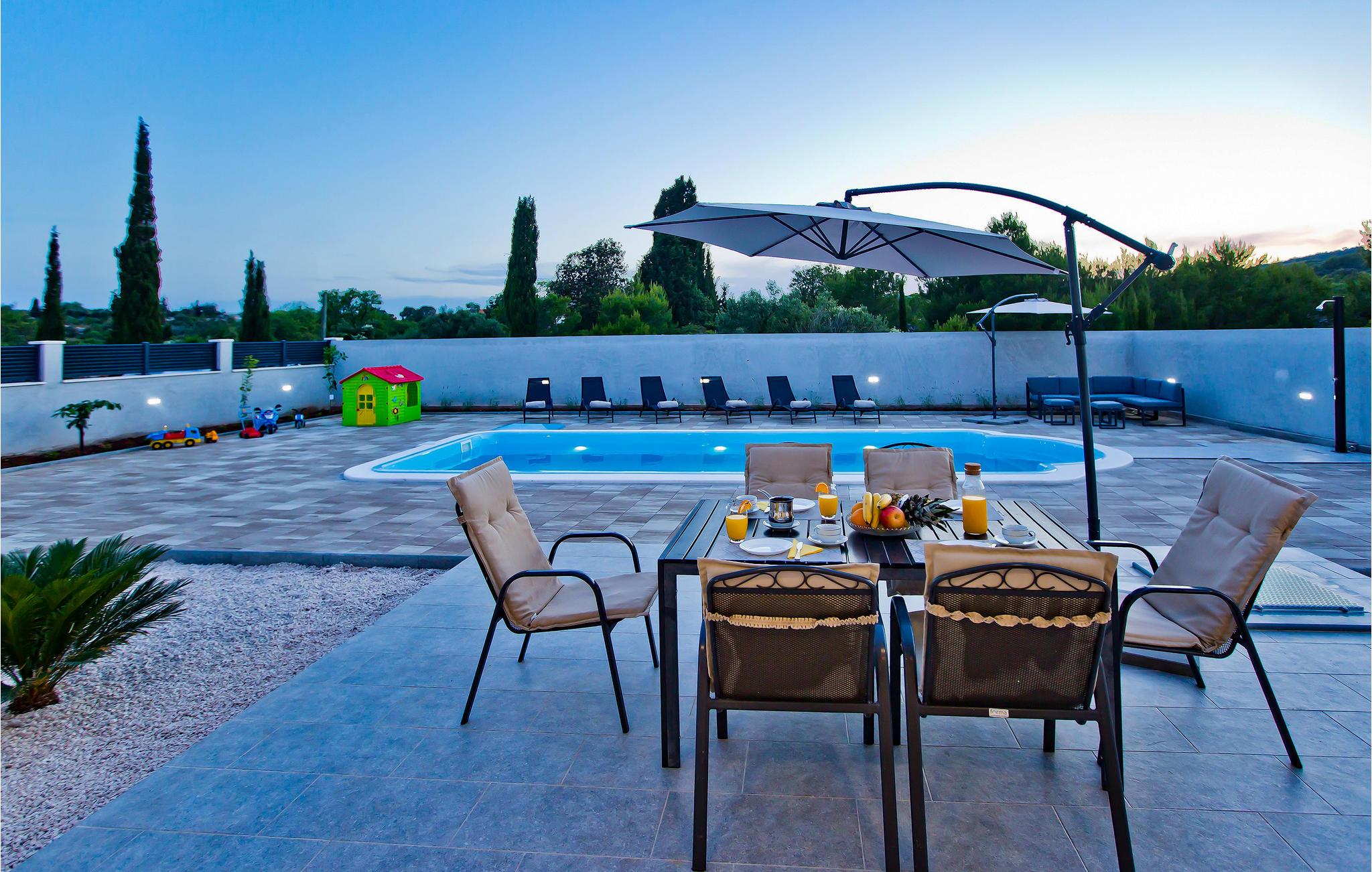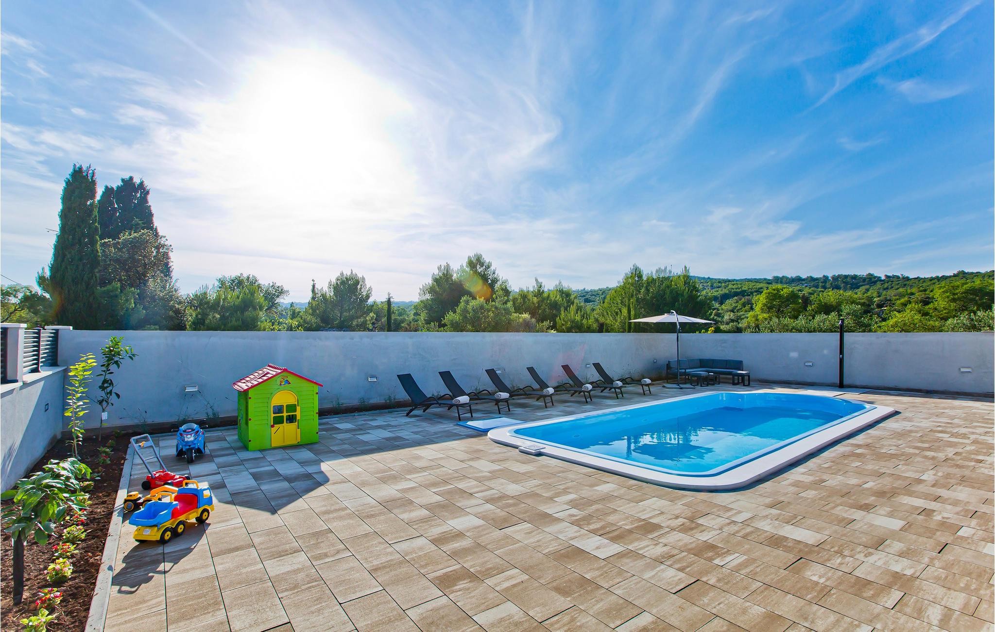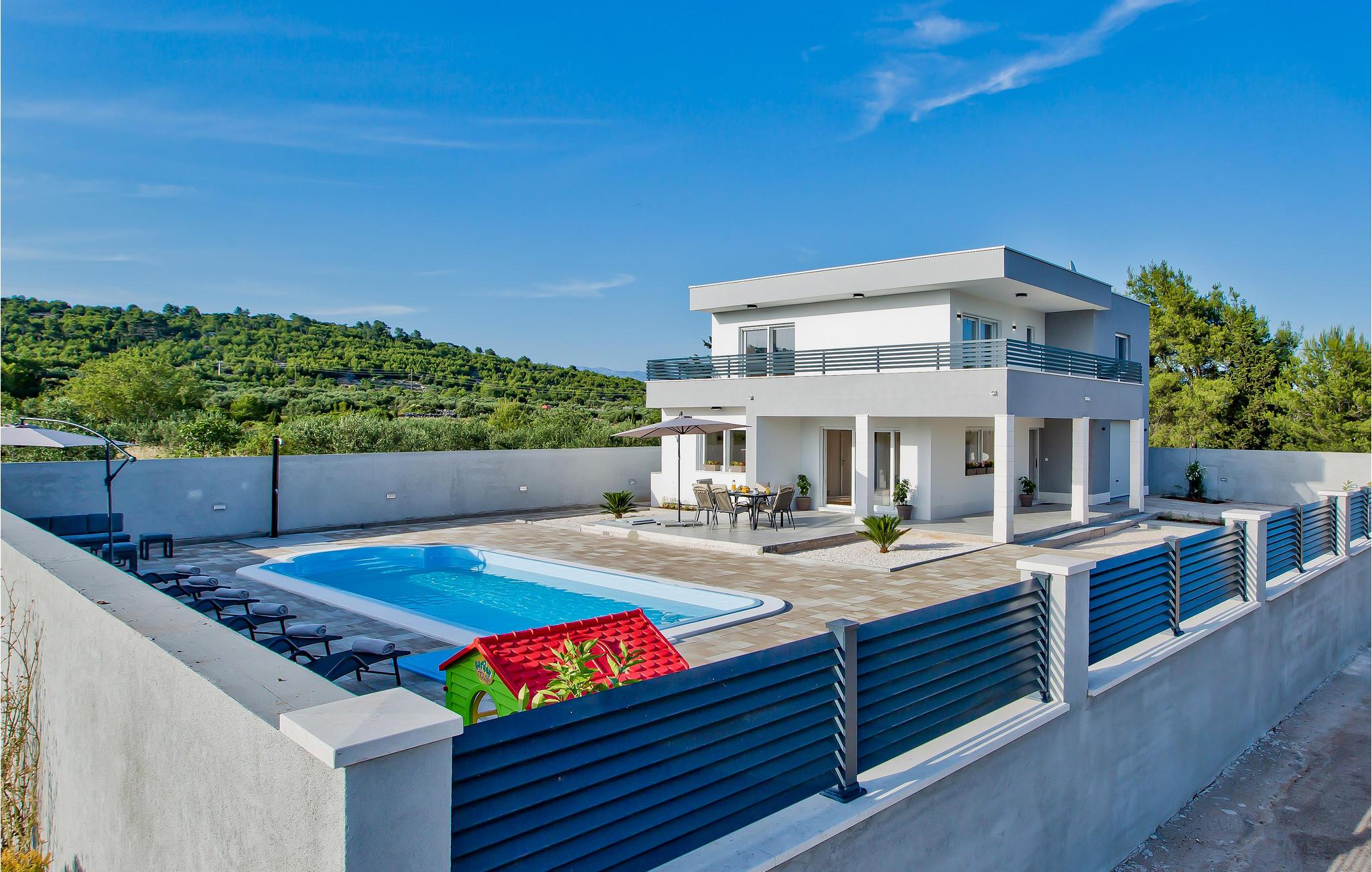 Dieses fabelhafte Ferienhaus ist ruhig gelegen inmitten schöner Natur. Es liegt auf der Insel Hvar und hat sich harmonisch in die natürliche Umgebung angepasst. Die hellen Innenräume verteilen sich im Erdgeschoss über das offene Wohnzimmer mit Küche und Essbereich, während im Obergeschoss 3 Schlafzimmer liegen. Das Haus ist komplett isoliert und winterfest. Die Einrichtung beinhaltet Wäschetrockner, Waschmaschine und Klimaanlage in jedem Zimmer. Auf dem Grundstück befinden sich eine schöne Terrasse und ein Kinderspielplatz mit Trampolin, Tischtennis und Rutsche. Ein Grill sowie eine überdachte Terrasse mit Esstisch sorgen für beste Voraussetzungen für einen Grillabend im Freien. Das Grundstück ist umzäunt und auch Ihr Haustier ist hier willkommen. Im Erdgeschoss gibt es eine Garage mit einem Parkplatz und einen weiteren Außenparkplatz am Haus.