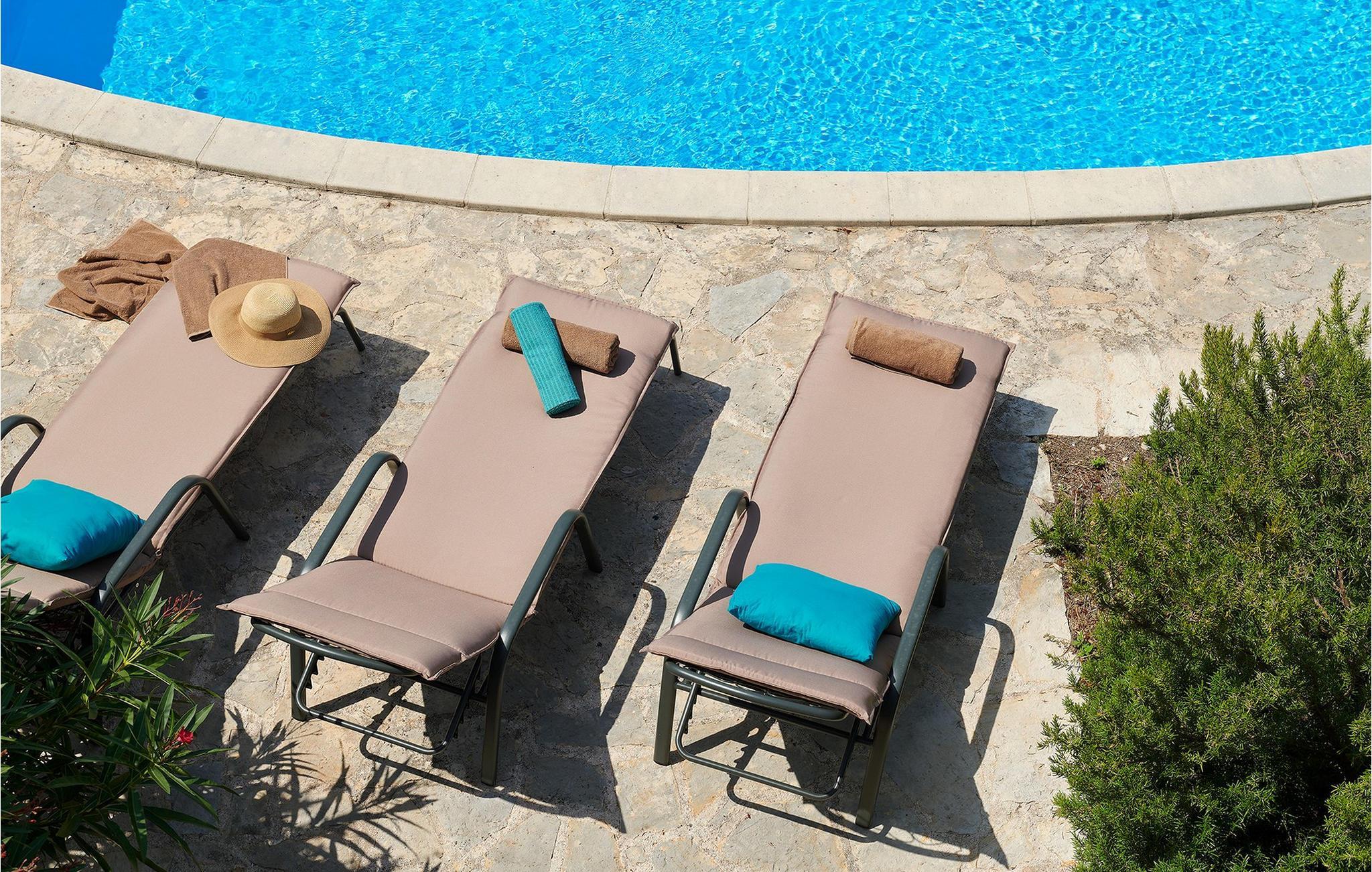 Servieren Sie sich ein herrliches Frühstück auf der Terrasse und erfreuen Sie sich am Blick auf das blaue Meer. Erfrischen Sie sich nach Lust und Laune im Pool, lassen Sie die friedliche Atmosphäre bei einer Siesta auf der Sonnenliege auf sich wirken und zelebrieren Sie die gemeinsame Zeit mit stimmungsvollen Grillabenden bei Wein und Kerzenschein.