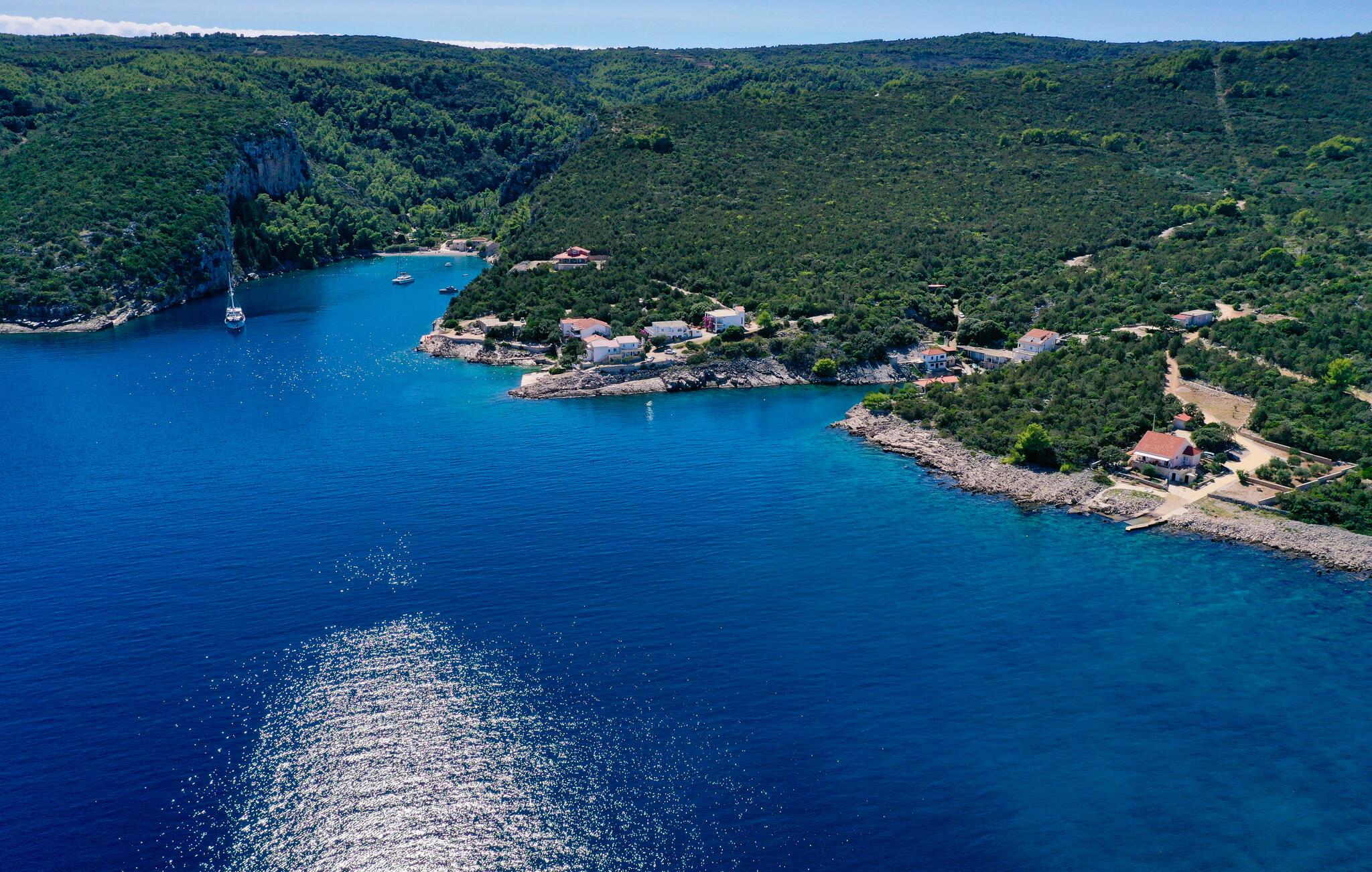 Dieses gemütliche Ferienhaus liegt direkt am Meer, in der Bucht Smricev Bad, auf der Insel Hvar. Am Beton- und Felsenstrand vor dem Haus können Sie die Seele baumeln lassen. Das Haus setzt sich aus zwei separaten Wohneinheiten zusammen, die über ein Schlafzimmer, Badezimmer und Küche mit Wohnbereich verfügen. Ideal für größere Familien oder Freunde, die gemeinsam ihren Urlaub verbringen möchten. Genießen Sie den einmaligen Panoramablick während Sie auf der Terrasse frühstücken. Auf Anfrage beim Eigentümer Bootsverleih für Ausflüge oder um auf die andere Seite der Bucht zu gelangen (etwa 300 m), wo sich eine Pizzeria und Restaurant befinden. Zum Haus führen ca. 100 m nicht asphaltierter Straße.