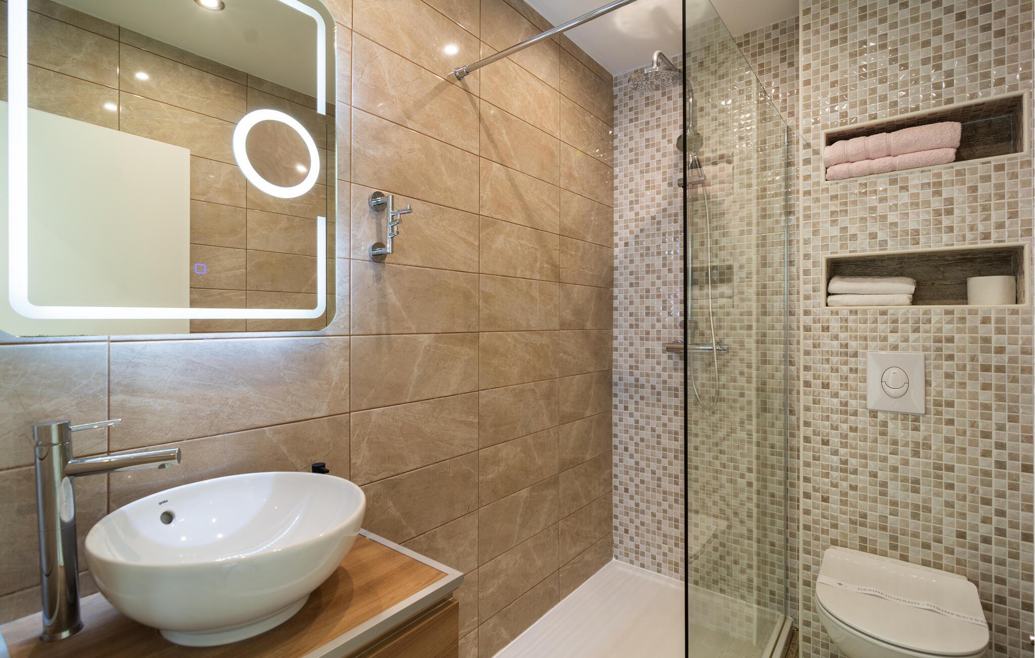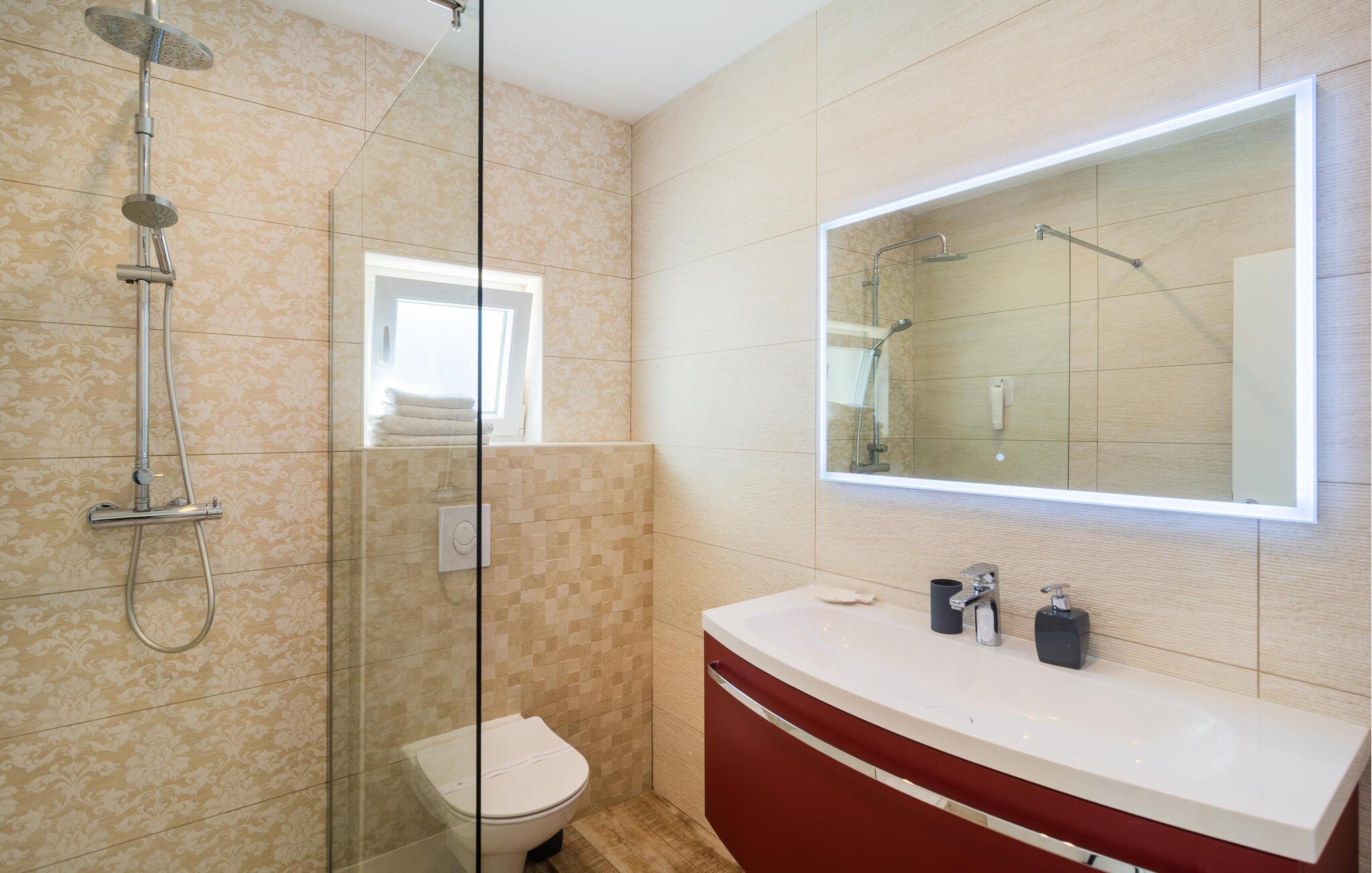 - WC mit warmem und kaltem Wasser, Dusche