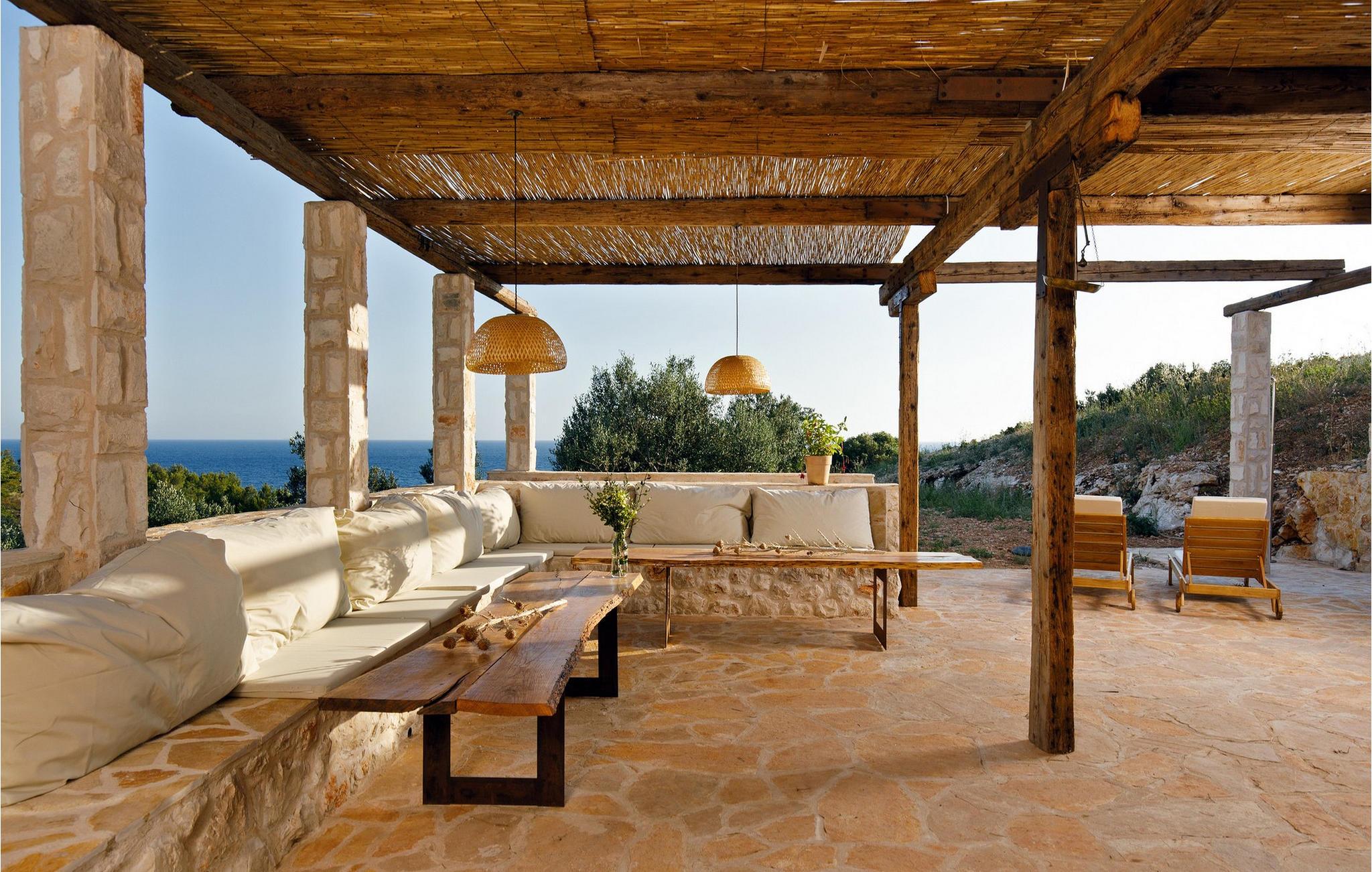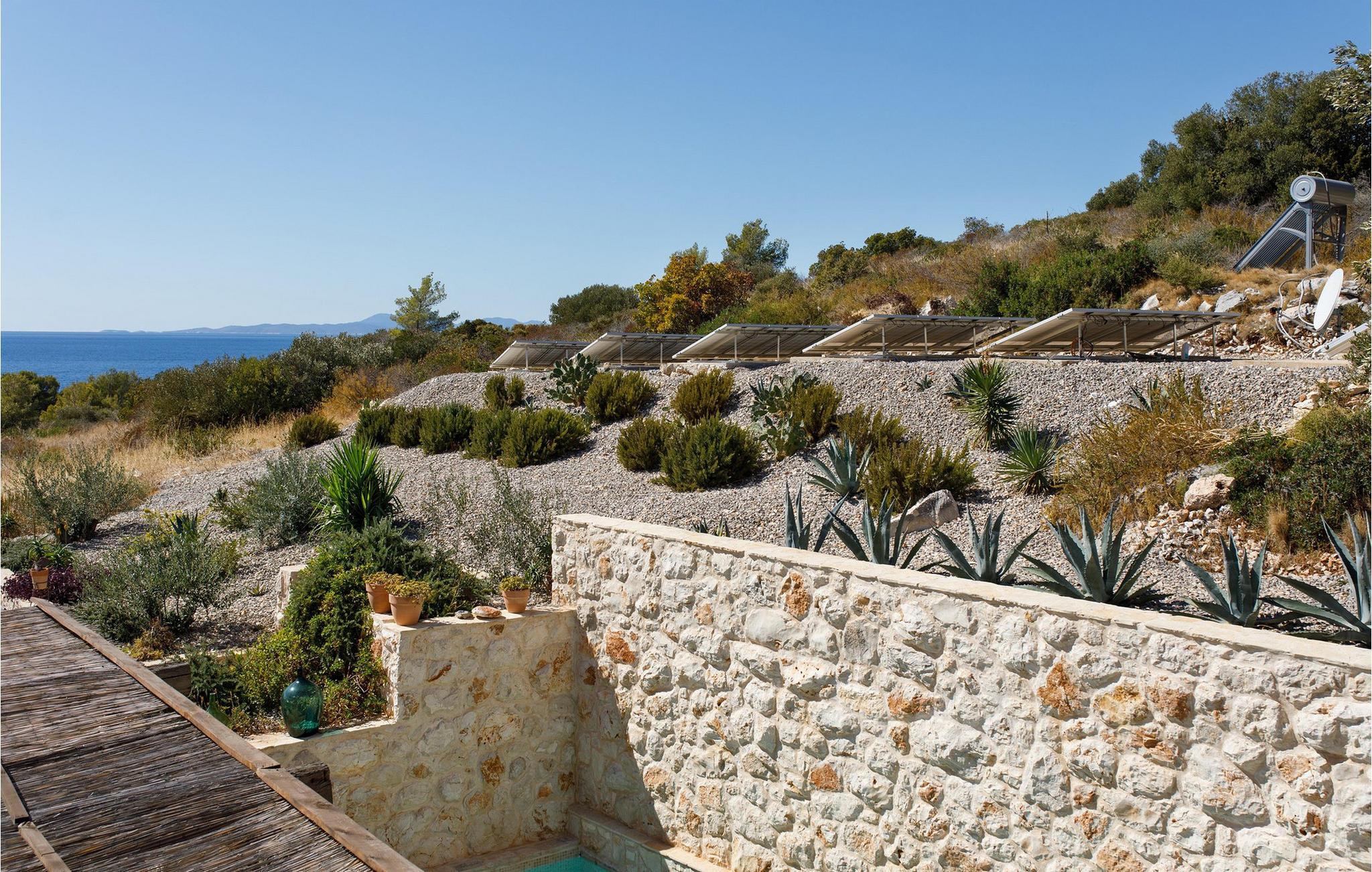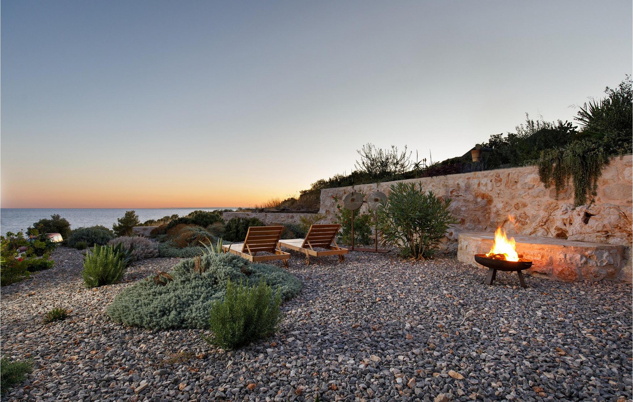 Draußen eröffnet sich Ihnen ein traumhafter Rückzugsort, umgeben von Naturstein, mediterraner Vegetation und warmem Licht. Genießen Sie auf der großzügigen Terrasse mit überdachtem Essbereich Ihre Mahlzeiten, begleitet vom Duft der Kräuter und dem Rauschen der Meereswellen. Springen Sie für ein erfrischendes Bad in den Pool und entspannen Sie sich hinterher mit einem guten Buch auf einer der komfortablen Liegen. Am Abend verwandelt sich der Pool in eine stimmungsvolle Kulisse. Nur wenige Schritte trennen Sie von einer kleinen Bucht – ideal für ein Bad im klaren Wasser oder einen ruhigen Moment am Meer.