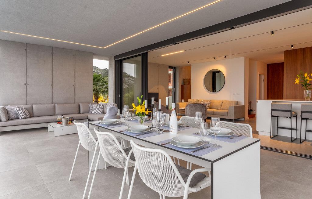 Die wunderschöne Villa Magic Sunset begrüßt Sie mit einem modernen und stilvoll eingerichteten Interieur, in dem große Fensterfronten einen spektakulären Panoramablick bis zum Meer eröffnen. Zaubern Sie kulinarische Highlights aus regionalen Zutaten, finden Sie für harmonische Mahlzeiten zusammen und nutzen Sie die gemeinsame Zeit für gute Gespräche in vertrauter Runde.