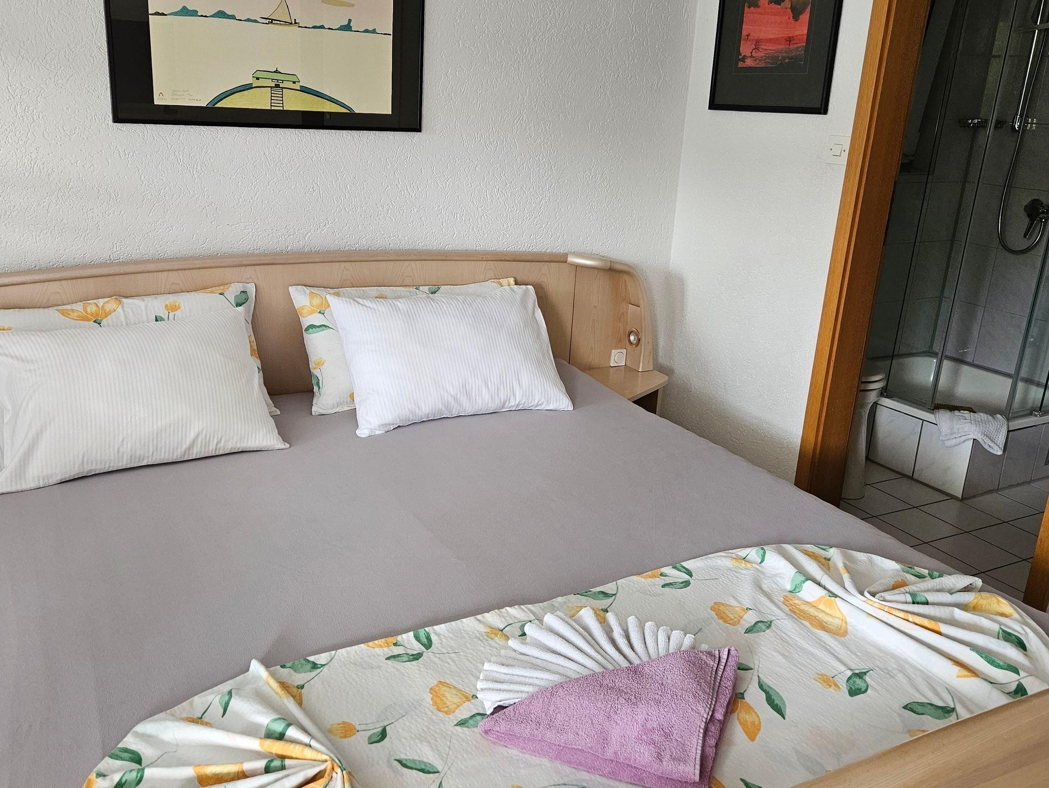 Ferienwohnung bietet Platz für 4 Gäste. Die Betten sind in Schlafzimmern, die es 2 gibt, innerhalb einer Gesamtfläche von 38m2, angeordnet. Die Gäste haben eine eigene Terrasse zur Verfügung, auf der sie in warmen Sommernächten genießen können. Das Apartment bietet Meerblick. Es ist erlaubt, Speisen auf dem Gemeinschafts-Grill vorzubereiten. Während ihres Aufenthalts können Gäste das gemeinsam zur Nutzung stehende Schwimmbad benutzen. In der Unterkunftseinheit besteht die Möglichkeit des Mitbringens von Haustieren, und die Dienstleistung ist im Preis der Unterkunft enthalten. IM PREIS INBEGRIFFEN: Kurtaxe, Endreinigung, Klimatisierung, Pool, Parkplatz, Internet, Wäschewaschen, Haustiere, Liegestühle. Die Verfügbarkeit zusätzlicher Dienstleistungen in Ihrem reservierten Termin und die Preise derselben (falls nicht aufgeführt) müssen im Voraus überprüft werden. Zusätzliche Dienstleistungen die in der Zahlungsaufforderung nicht aufgeführt sind werden direkt beim Vermieter bezahlt, angenommen der Gast nutzt auch diese. Ermäßigung auf den Grundpreis: Gratistag 14=13 (bei einem Aufenthalt von 14 Tagen oder mehr erhalten Sie einen Gratistag für den Aufenthalt bis 31.12.26).