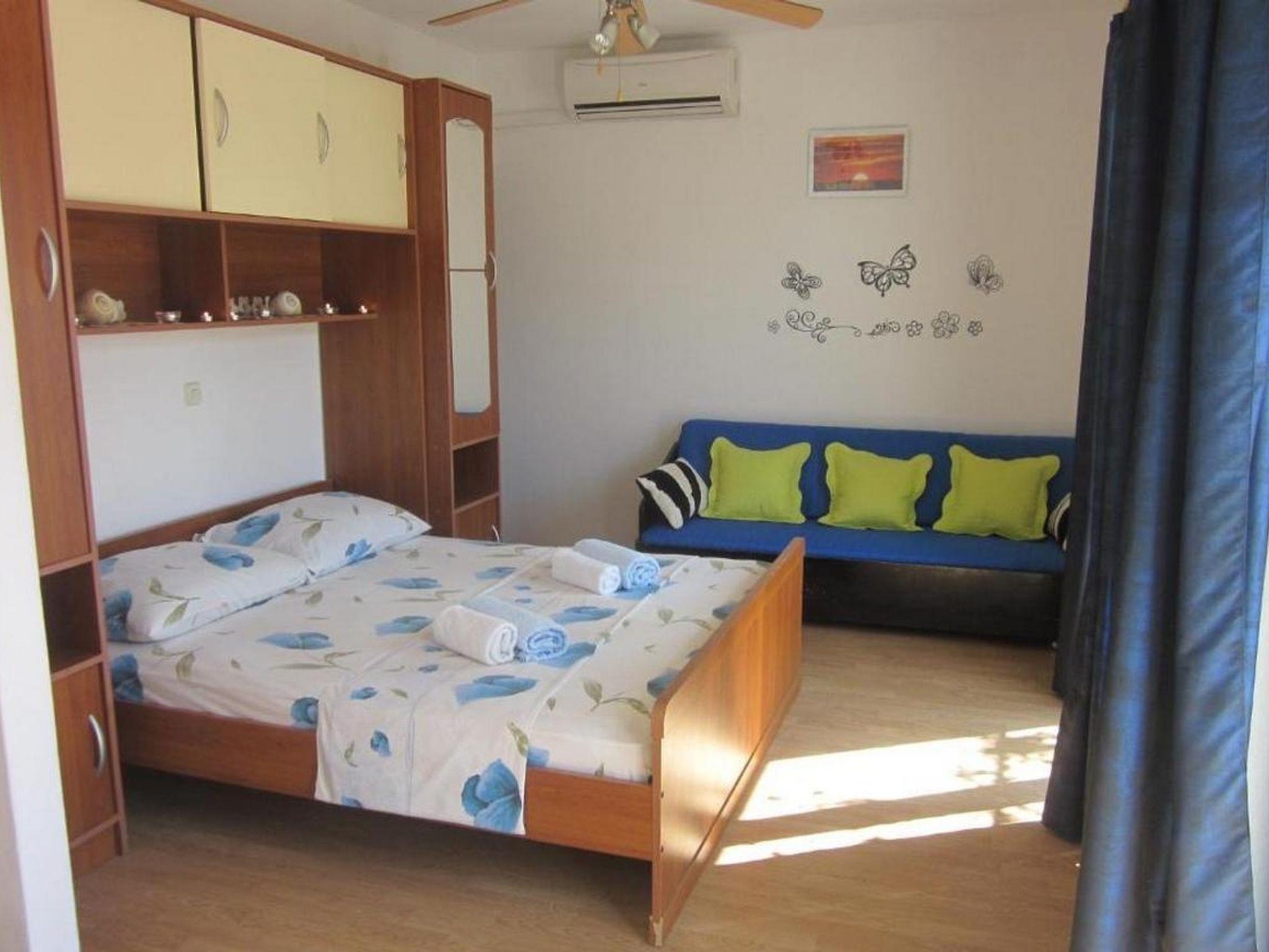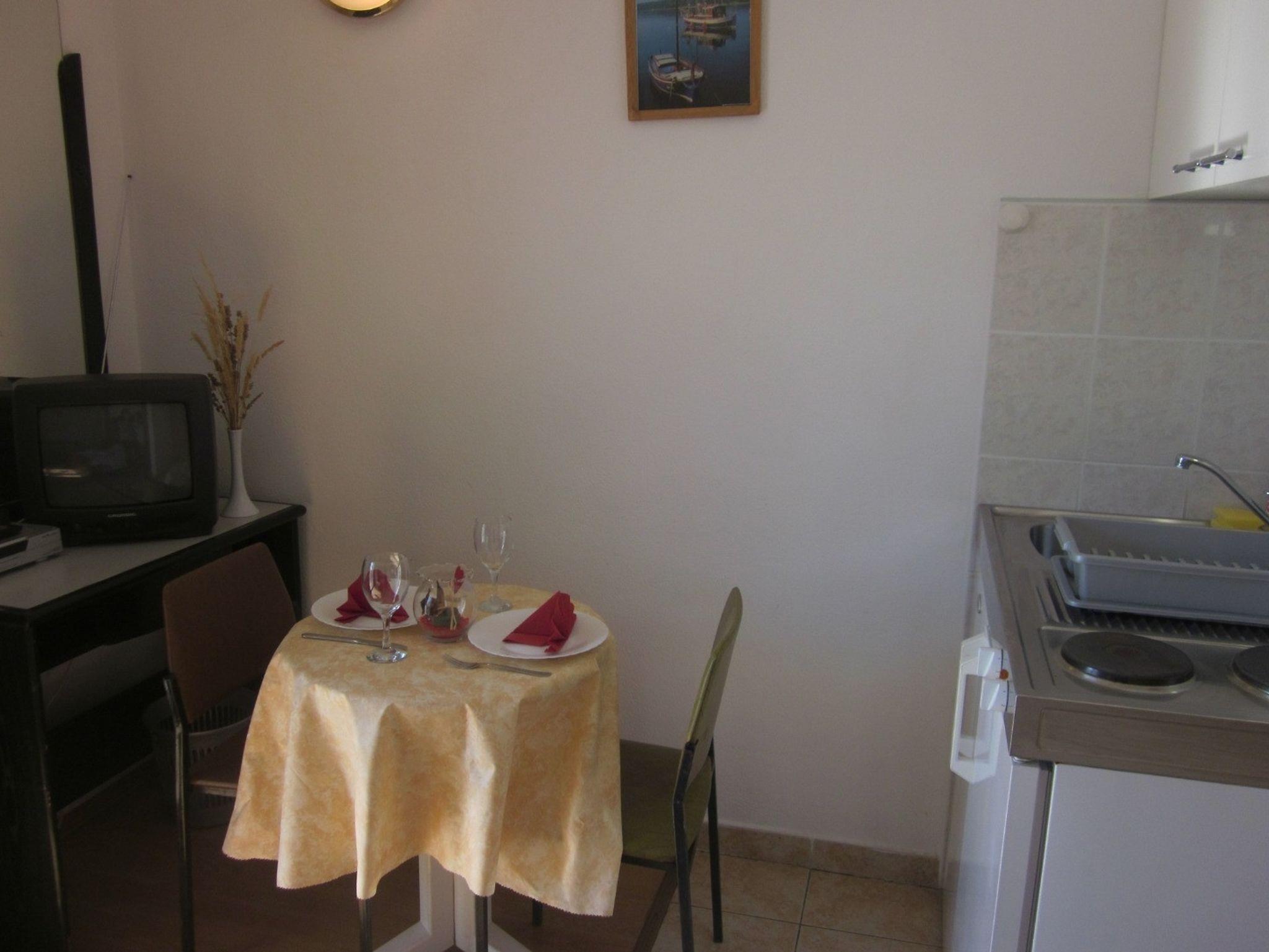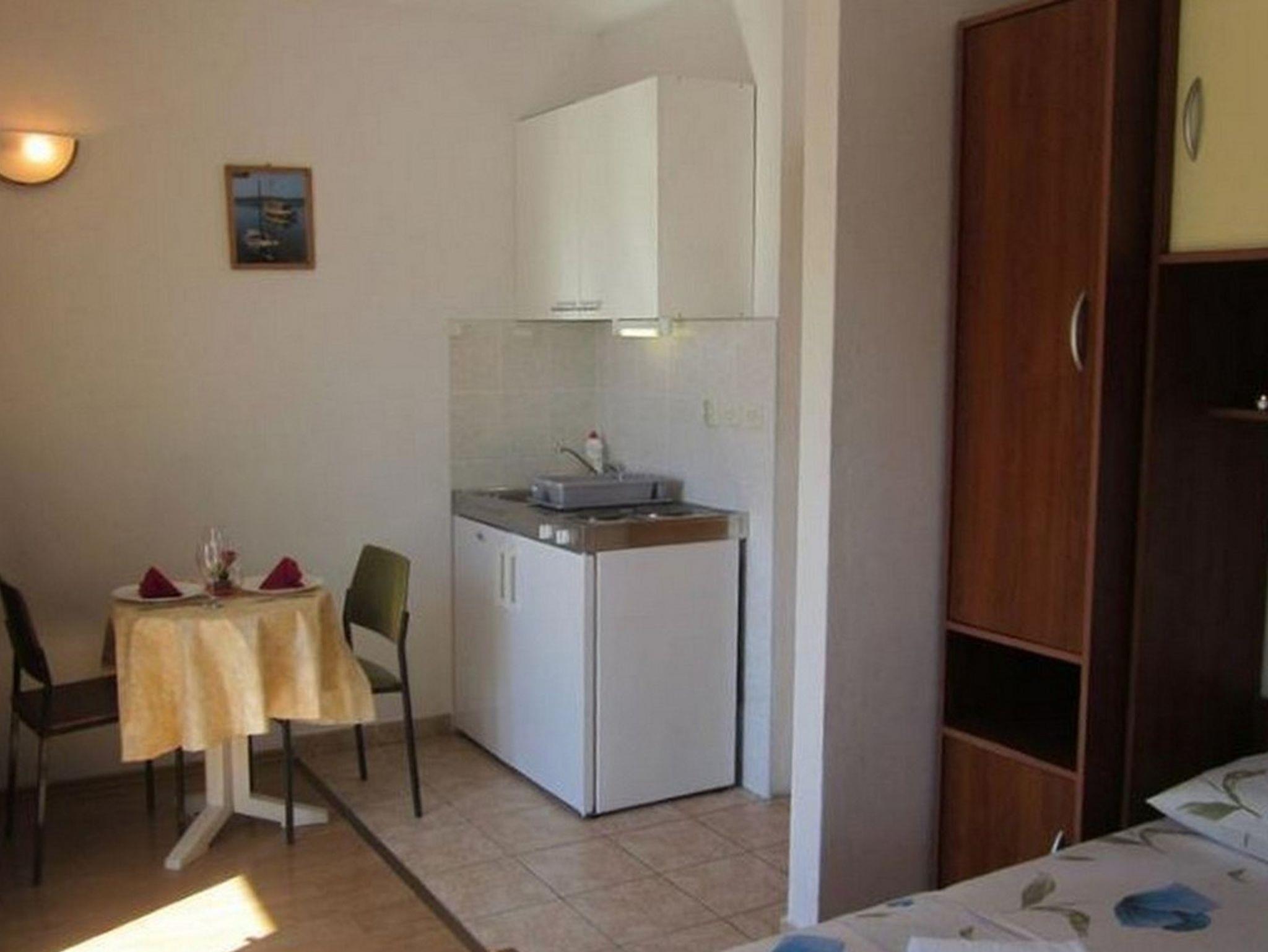 Studio bietet Platz für 2 Gäste. Die Betten sind in Schlafzimmern, die es 1 gibt, innerhalb einer Gesamtfläche von 17m2, angeordnet. Die Gäste haben einen eigenen Balkon zur Verfügung, auf der sie in warmen Sommernächten genießen können. Das Studio-Apartment bietet Meerblick. IM PREIS INBEGRIFFEN: Kurtaxe, Endreinigung, Klimatisierung, Internet, Kinderbett, Bügeleisen, Bügelbrett, Föhn. VERBINDLICHE ZUSÄTZLICHE KOSTEN: Aufzahlung für Kurzaufenthalte (prozentualer Zuschlag pro Nächtigungsanzahl: 30% - 1, 20% - 2, 10% - 3). UNVERBINDLICHE ZUSÄTZLICHE KOSTEN: Wäschewaschen (14,00 € Waschen), Zusatzbett (30,00 € pro Nacht). Die Verfügbarkeit zusätzlicher Dienstleistungen in Ihrem reservierten Termin und die Preise derselben (falls nicht aufgeführt) müssen im Voraus überprüft werden. Zusätzliche Dienstleistungen die in der Zahlungsaufforderung nicht aufgeführt sind werden direkt beim Vermieter bezahlt, angenommen der Gast nutzt auch diese.
