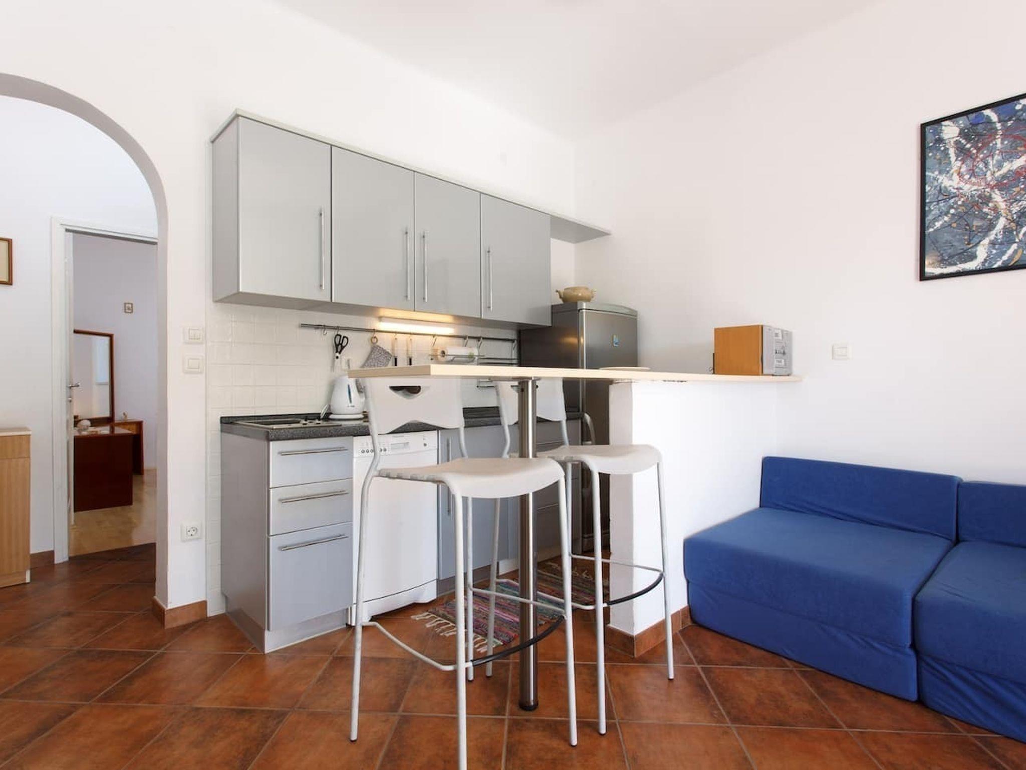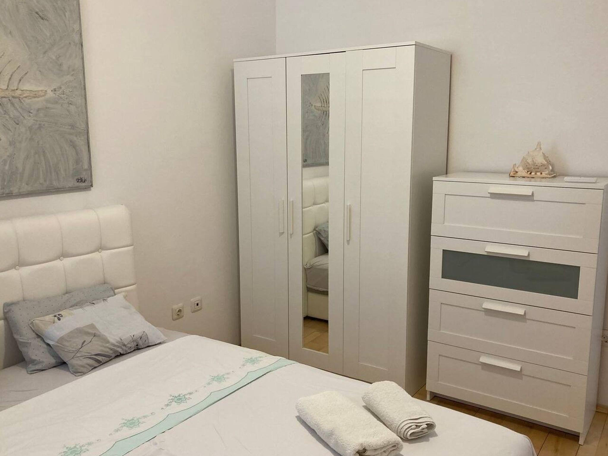 Ferienwohnung bietet Platz für 4 Gäste. Die Betten sind in Schlafzimmern, die es 1 gibt, und in Wohnzimmer, innerhalb einer Gesamtfläche von 34m2, angeordnet. Die Gäste haben eine eigene Terrasse zur Verfügung, auf der sie in warmen Sommernächten genießen können. Das Apartment bietet Meerblick. IM PREIS INBEGRIFFEN: Kurtaxe, Endreinigung, Klimatisierung, Parkplatz, Internet, Kinderbett, Bügeleisen, Bügelbrett, Föhn, Sonnenschirm. Die Verfügbarkeit zusätzlicher Dienstleistungen in Ihrem reservierten Termin und die Preise derselben (falls nicht aufgeführt) müssen im Voraus überprüft werden. Zusätzliche Dienstleistungen die in der Zahlungsaufforderung nicht aufgeführt sind werden direkt beim Vermieter bezahlt, angenommen der Gast nutzt auch diese. Ermäßigung auf den Grundpreis: Gratistag 14=13 (bei einem Aufenthalt von 14 Tagen oder mehr erhalten Sie einen Gratistag für den Aufenthalt bis 31.12.26).