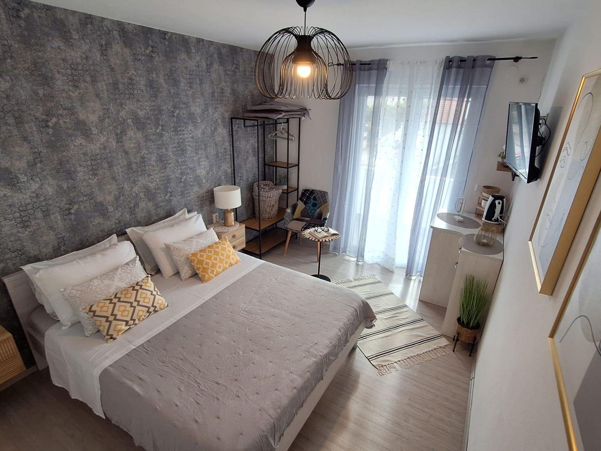 Zimmer bietet Platz für 2 Gäste. Die Betten sind in Schlafzimmern, die es 1 gibt, innerhalb einer Gesamtfläche von 19m2, angeordnet. Die Gäste haben einen eigenen Balkon zur Verfügung, auf der sie in warmen Sommernächten genießen können. Das Zimmer bietet Meerblick. Die reservierte Unterkunftseinheit ist ein Zimmer mit eigenem Badezimmer ohne die Möglichkeit der Nutzung einer Küche. IM PREIS INBEGRIFFEN: Kurtaxe, Endreinigung, Klimatisierung, Parkplatz, Internet, Kinderbett, Bügeleisen, Bügelbrett, Föhn. VERBINDLICHE ZUSÄTZLICHE KOSTEN: Aufzahlung für Kurzaufenthalte (prozentualer Zuschlag pro Nächtigungsanzahl: 30% - 1, 20% - 2, 10% - 3). Die Verfügbarkeit zusätzlicher Dienstleistungen in Ihrem reservierten Termin und die Preise derselben (falls nicht aufgeführt) müssen im Voraus überprüft werden. Zusätzliche Dienstleistungen die in der Zahlungsaufforderung nicht aufgeführt sind werden direkt beim Vermieter bezahlt, angenommen der Gast nutzt auch diese.