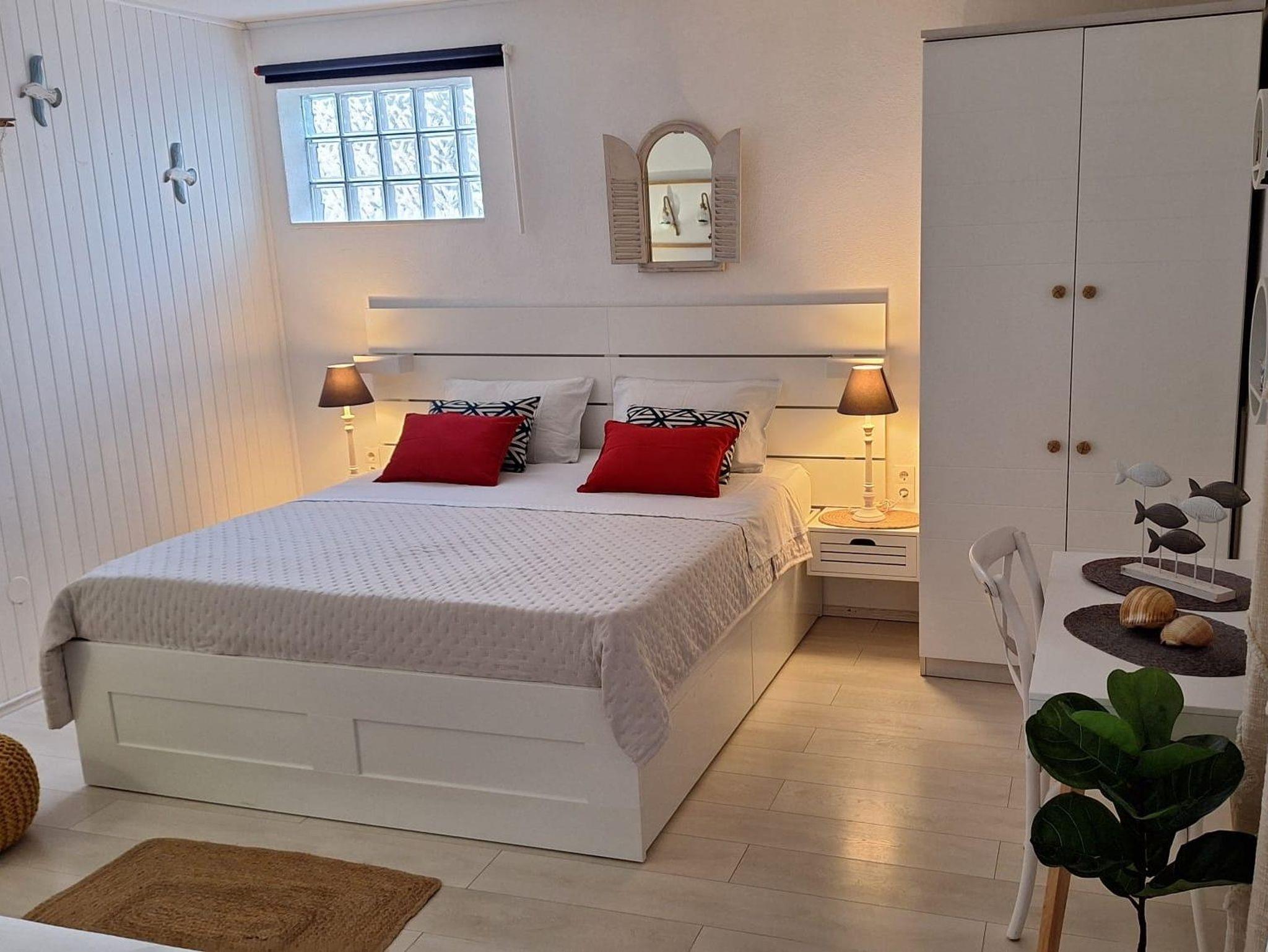Studio bietet Platz für 2 Gäste. Die Betten sind in Schlafzimmern, die es 1 gibt, innerhalb einer Gesamtfläche von 29m2, angeordnet. Die Gäste haben eine eigene Terrasse zur Verfügung, auf der sie in warmen Sommernächten genießen können. IM PREIS INBEGRIFFEN: Kurtaxe, Endreinigung, Klimatisierung, Parkplatz, Internet, Kinderbett, Bügeleisen, Bügelbrett, Föhn. VERBINDLICHE ZUSÄTZLICHE KOSTEN: Aufzahlung für Kurzaufenthalte (prozentualer Zuschlag pro Nächtigungsanzahl: 30% - 1, 20% - 2, 10% - 3). Die Verfügbarkeit zusätzlicher Dienstleistungen in Ihrem reservierten Termin und die Preise derselben (falls nicht aufgeführt) müssen im Voraus überprüft werden. Zusätzliche Dienstleistungen die in der Zahlungsaufforderung nicht aufgeführt sind werden direkt beim Vermieter bezahlt, angenommen der Gast nutzt auch diese.