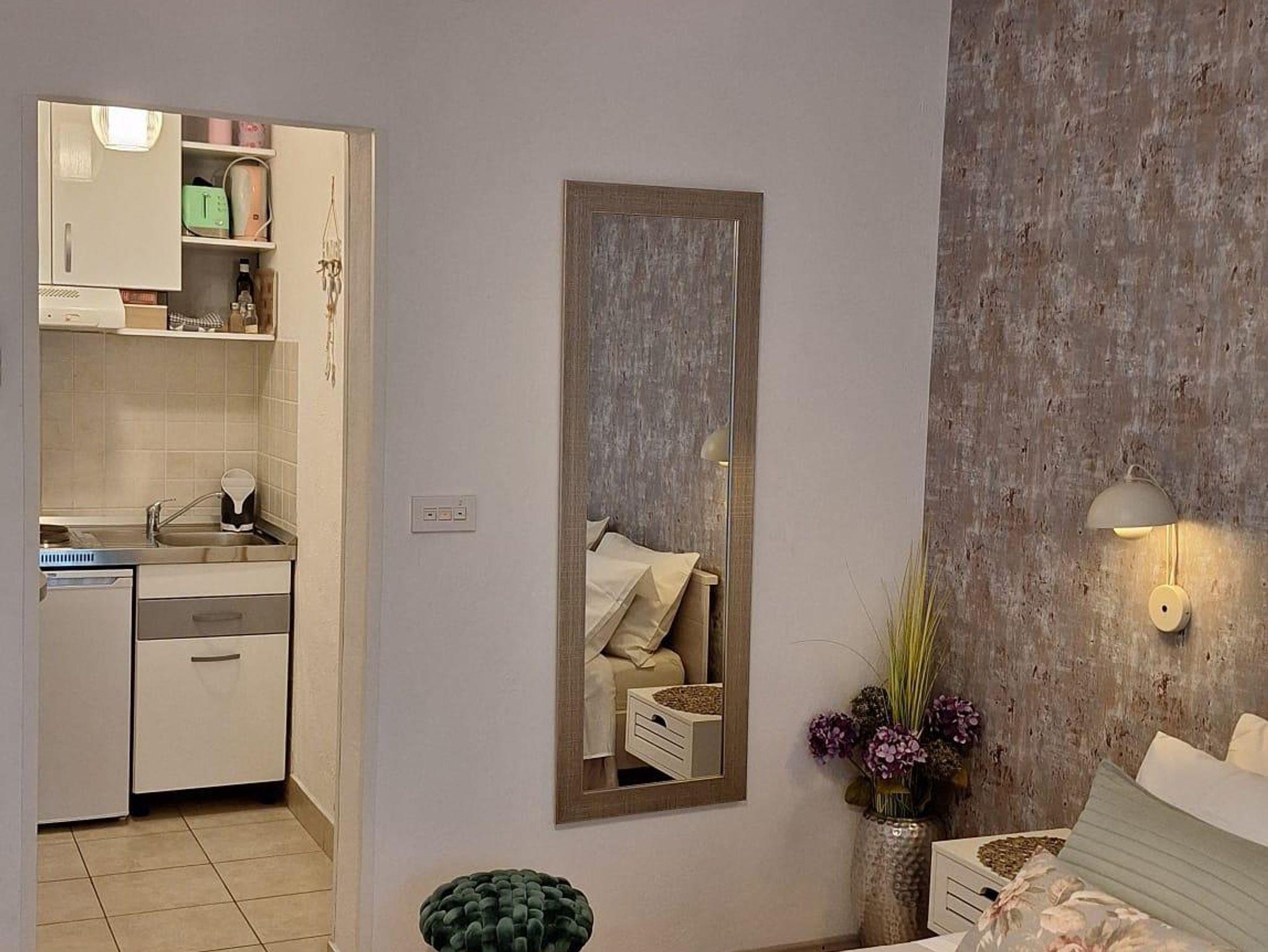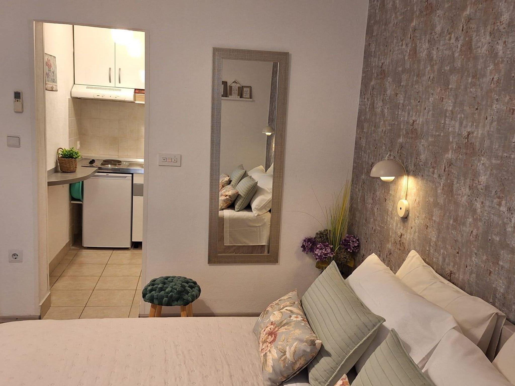 Studio bietet Platz für 2 Gäste. Die Betten sind in Schlafzimmern, die es 1 gibt, innerhalb einer Gesamtfläche von 19m2, angeordnet. Die Gäste haben einen eigenen Balkon zur Verfügung, auf der sie in warmen Sommernächten genießen können. IM PREIS INBEGRIFFEN: Kurtaxe, Endreinigung, Klimatisierung, Parkplatz, Internet, Kinderbett, Bügeleisen, Bügelbrett, Föhn. VERBINDLICHE ZUSÄTZLICHE KOSTEN: Aufzahlung für Kurzaufenthalte (prozentualer Zuschlag pro Nächtigungsanzahl: 30% - 1, 20% - 2, 10% - 3). Die Verfügbarkeit zusätzlicher Dienstleistungen in Ihrem reservierten Termin und die Preise derselben (falls nicht aufgeführt) müssen im Voraus überprüft werden. Zusätzliche Dienstleistungen die in der Zahlungsaufforderung nicht aufgeführt sind werden direkt beim Vermieter bezahlt, angenommen der Gast nutzt auch diese.