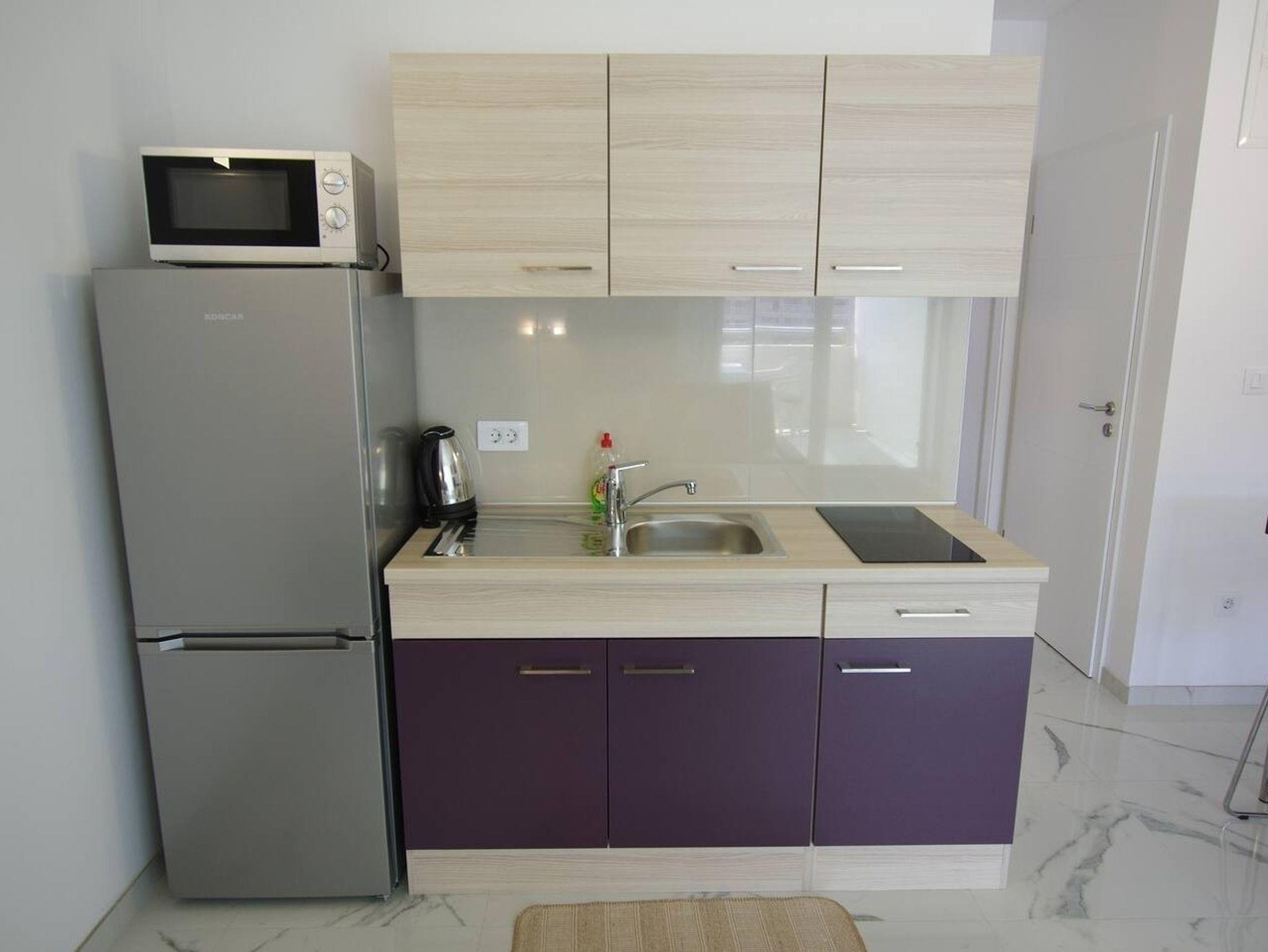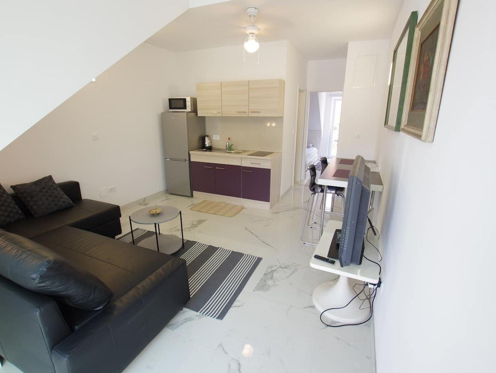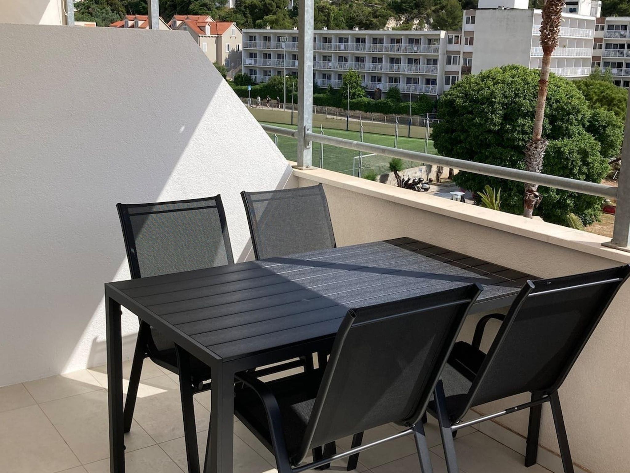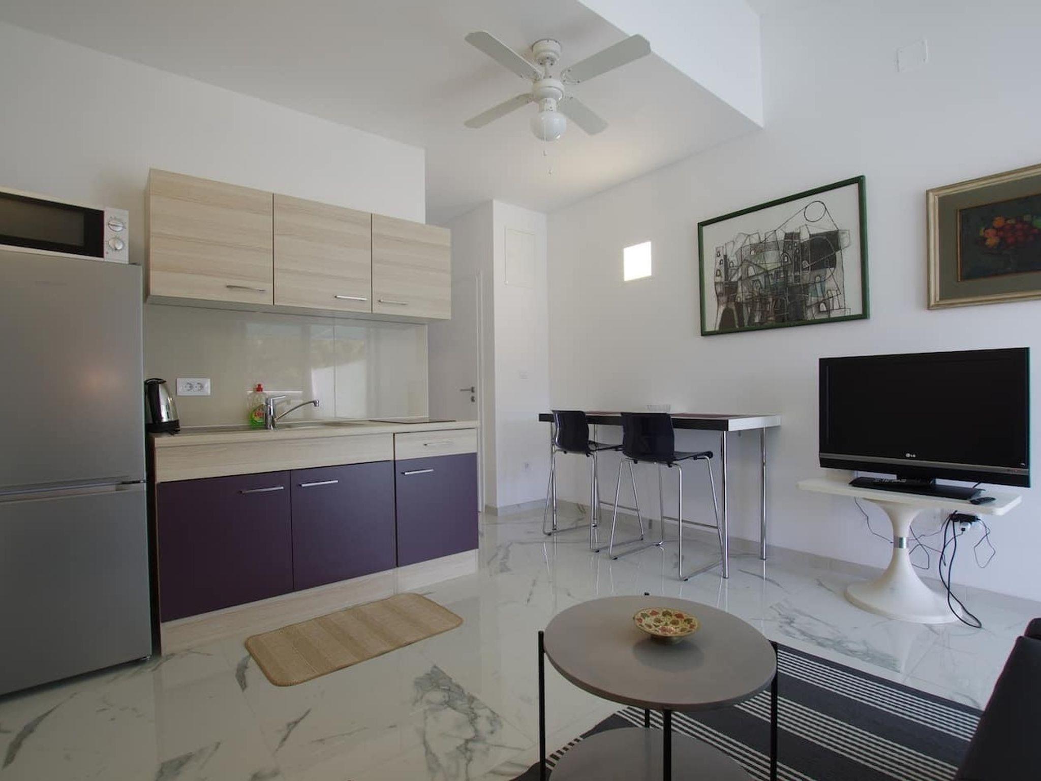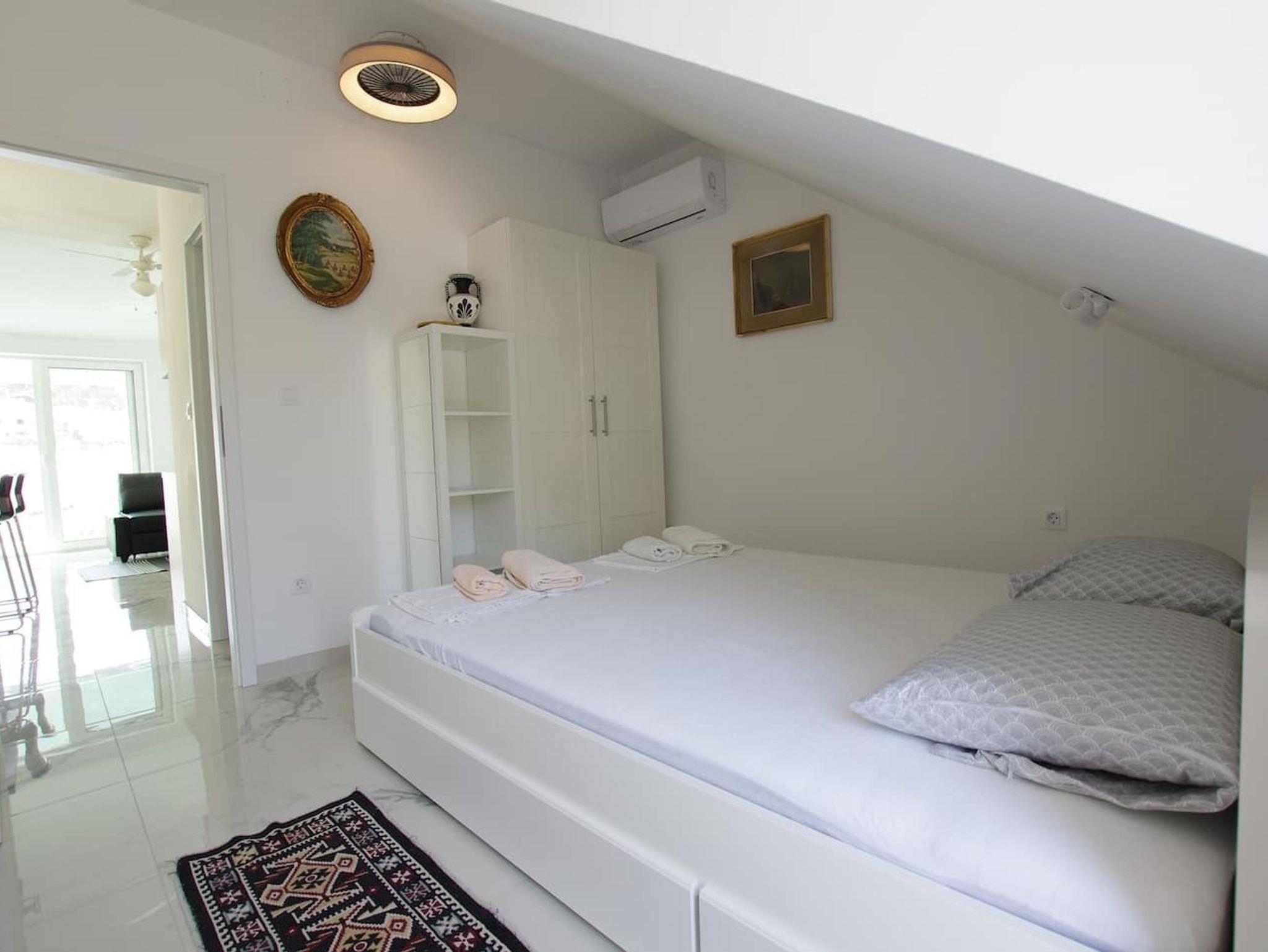 Ferienwohnung bietet Platz für 4 Gäste. Die Betten sind in Schlafzimmern, die es 1 gibt, und in Wohnzimmer, innerhalb einer Gesamtfläche von 31m2, angeordnet. Die Gäste haben eine eigene Terrasse zur Verfügung, auf der sie in warmen Sommernächten genießen können. Das Apartment bietet Meerblick. IM PREIS INBEGRIFFEN: Kurtaxe, Endreinigung, Klimatisierung, Parkplatz, Internet, Kinderbett, Bügeleisen, Bügelbrett, Föhn, Sonnenschirm. Die Verfügbarkeit zusätzlicher Dienstleistungen in Ihrem reservierten Termin und die Preise derselben (falls nicht aufgeführt) müssen im Voraus überprüft werden. Zusätzliche Dienstleistungen die in der Zahlungsaufforderung nicht aufgeführt sind werden direkt beim Vermieter bezahlt, angenommen der Gast nutzt auch diese. Ermäßigung auf den Grundpreis: Gratistag 14=13 (bei einem Aufenthalt von 14 Tagen oder mehr erhalten Sie einen Gratistag für den Aufenthalt bis 31.12.26).