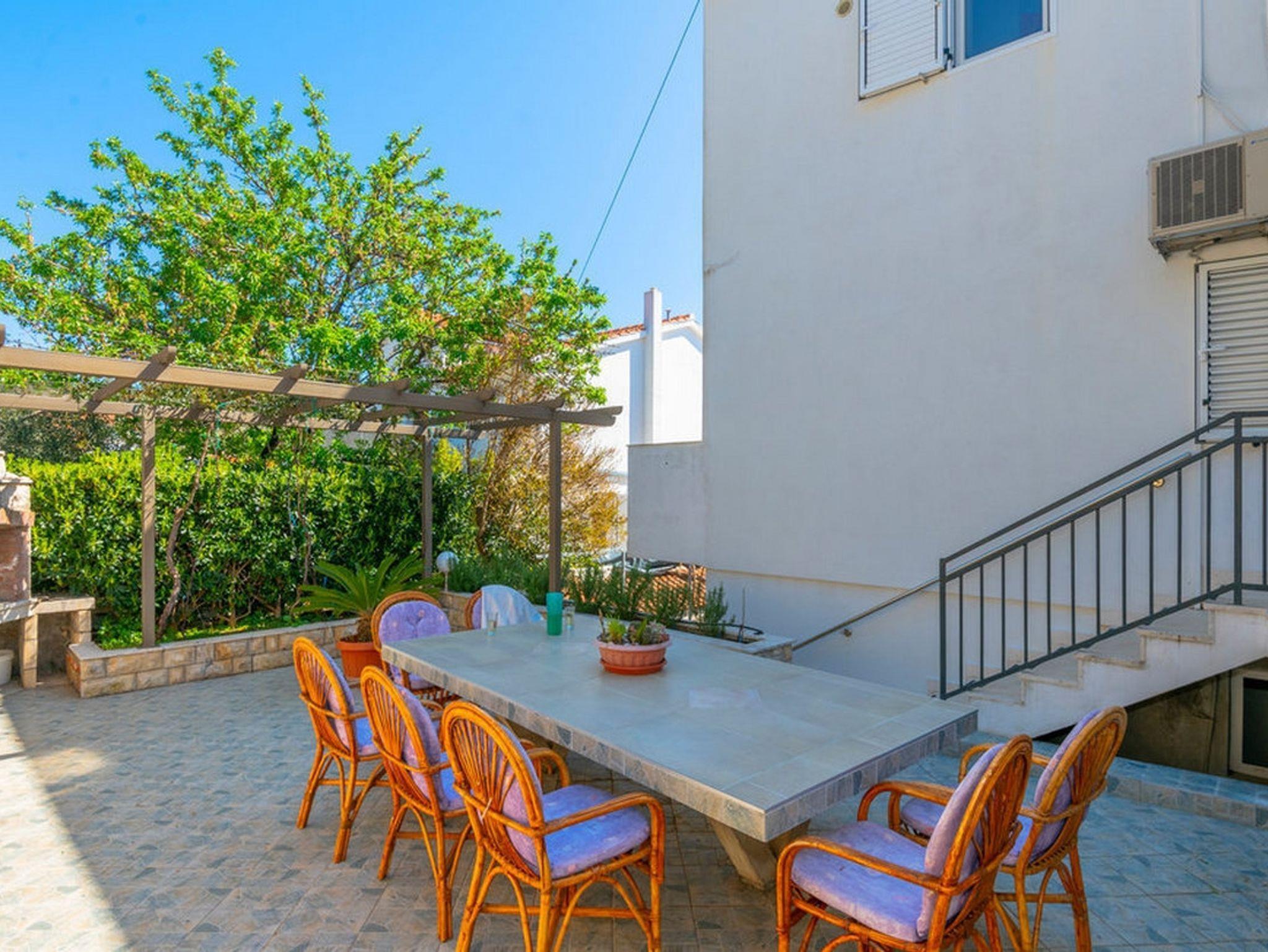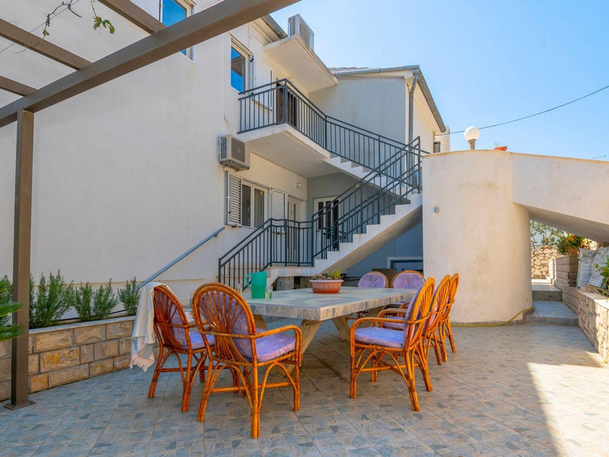 Ferienwohnung bietet Platz für 5 Gäste. Die Betten sind in Schlafzimmern, die es 3 gibt, innerhalb einer Gesamtfläche von 98m2, angeordnet. Die Gäste haben eine eigene Terrasse zur Verfügung, auf der sie in warmen Sommernächten genießen können. Das Apartment bietet Meerblick. Es ist erlaubt, Speisen auf dem Gemeinschafts-Grill vorzubereiten. IM PREIS INBEGRIFFEN: Kurtaxe, Endreinigung, Klimatisierung, Parkplatz, Internet, Kinderbett, Bügeleisen, Bügelbrett, Föhn. Die Verfügbarkeit zusätzlicher Dienstleistungen in Ihrem reservierten Termin und die Preise derselben (falls nicht aufgeführt) müssen im Voraus überprüft werden. Zusätzliche Dienstleistungen die in der Zahlungsaufforderung nicht aufgeführt sind werden direkt beim Vermieter bezahlt, angenommen der Gast nutzt auch diese. Ermäßigung auf den Grundpreis: Gratistag 14=13 (bei einem Aufenthalt von 14 Tagen oder mehr erhalten Sie einen Gratistag für den Aufenthalt bis 31.12.26).