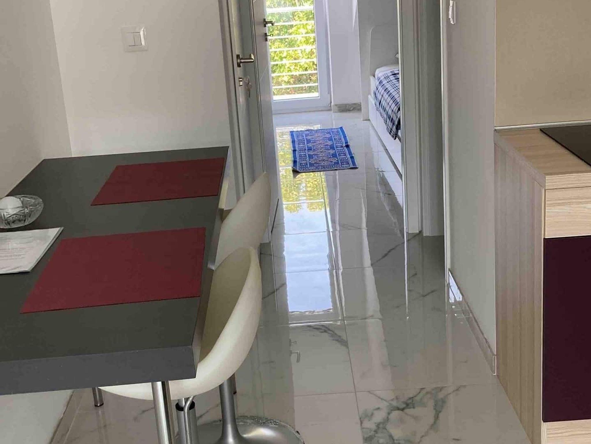 Ferienwohnung bietet Platz für 4 Gäste. Die Betten sind in Schlafzimmern, die es 1 gibt, und in Wohnzimmer, innerhalb einer Gesamtfläche von 30m2, angeordnet. Die Gäste haben eine eigene Terrasse zur Verfügung, auf der sie in warmen Sommernächten genießen können. Das Apartment bietet Meerblick. IM PREIS INBEGRIFFEN: Kurtaxe, Endreinigung, Klimatisierung, Parkplatz, Internet, Kinderbett, Bügeleisen, Bügelbrett, Föhn, Sonnenschirm. Die Verfügbarkeit zusätzlicher Dienstleistungen in Ihrem reservierten Termin und die Preise derselben (falls nicht aufgeführt) müssen im Voraus überprüft werden. Zusätzliche Dienstleistungen die in der Zahlungsaufforderung nicht aufgeführt sind werden direkt beim Vermieter bezahlt, angenommen der Gast nutzt auch diese. Ermäßigung auf den Grundpreis: Gratistag 14=13 (bei einem Aufenthalt von 14 Tagen oder mehr erhalten Sie einen Gratistag für den Aufenthalt bis 31.12.26).