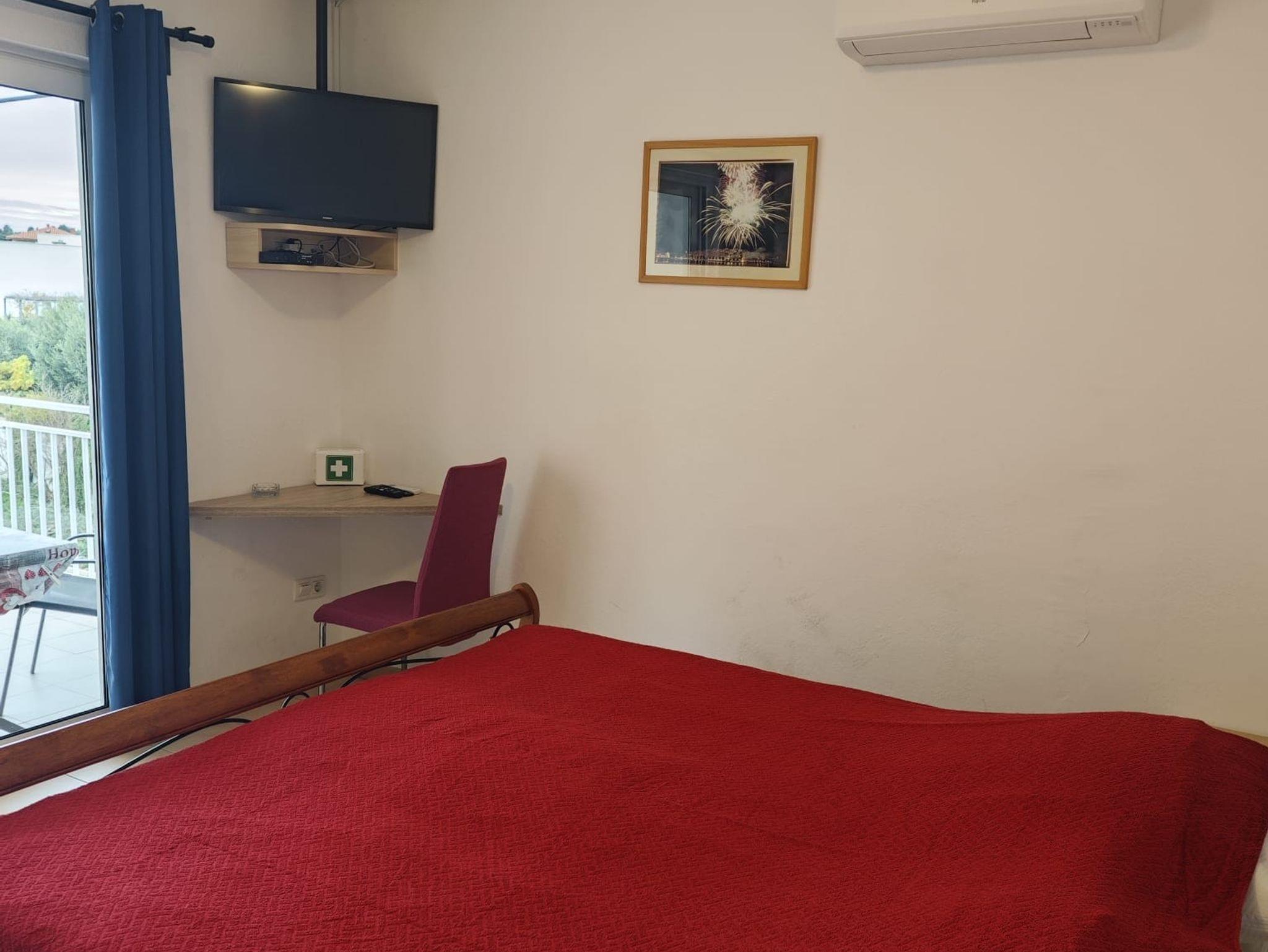 Ferienwohnung bietet Platz für 2 Gäste. Die Betten sind in Schlafzimmern, die es 1 gibt, innerhalb einer Gesamtfläche von 27m2, angeordnet. Die Gäste haben eine eigene Terrasse zur Verfügung, auf der sie in warmen Sommernächten genießen können. Das Apartment bietet Meerblick. IM PREIS INBEGRIFFEN: Kurtaxe, Endreinigung, Klimatisierung, Parkplatz, Internet, Zusatzbett, Bügeleisen, Bügelbrett, Föhn. Die Verfügbarkeit zusätzlicher Dienstleistungen in Ihrem reservierten Termin und die Preise derselben (falls nicht aufgeführt) müssen im Voraus überprüft werden. Zusätzliche Dienstleistungen die in der Zahlungsaufforderung nicht aufgeführt sind werden direkt beim Vermieter bezahlt, angenommen der Gast nutzt auch diese. Ermäßigung auf den Grundpreis: Gratistag 14=13 (bei einem Aufenthalt von 14 Tagen oder mehr erhalten Sie einen Gratistag für den Aufenthalt bis 31.12.26).