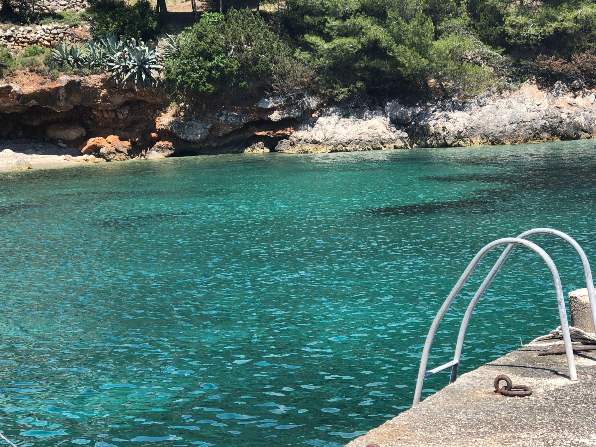 Die überdachte Terrasse direkt vor dem Haus verfügt über einen Grill, einen Tisch und eine Bank. Von hier aus können Sie den Blick auf das Meer und die Bucht genießen.