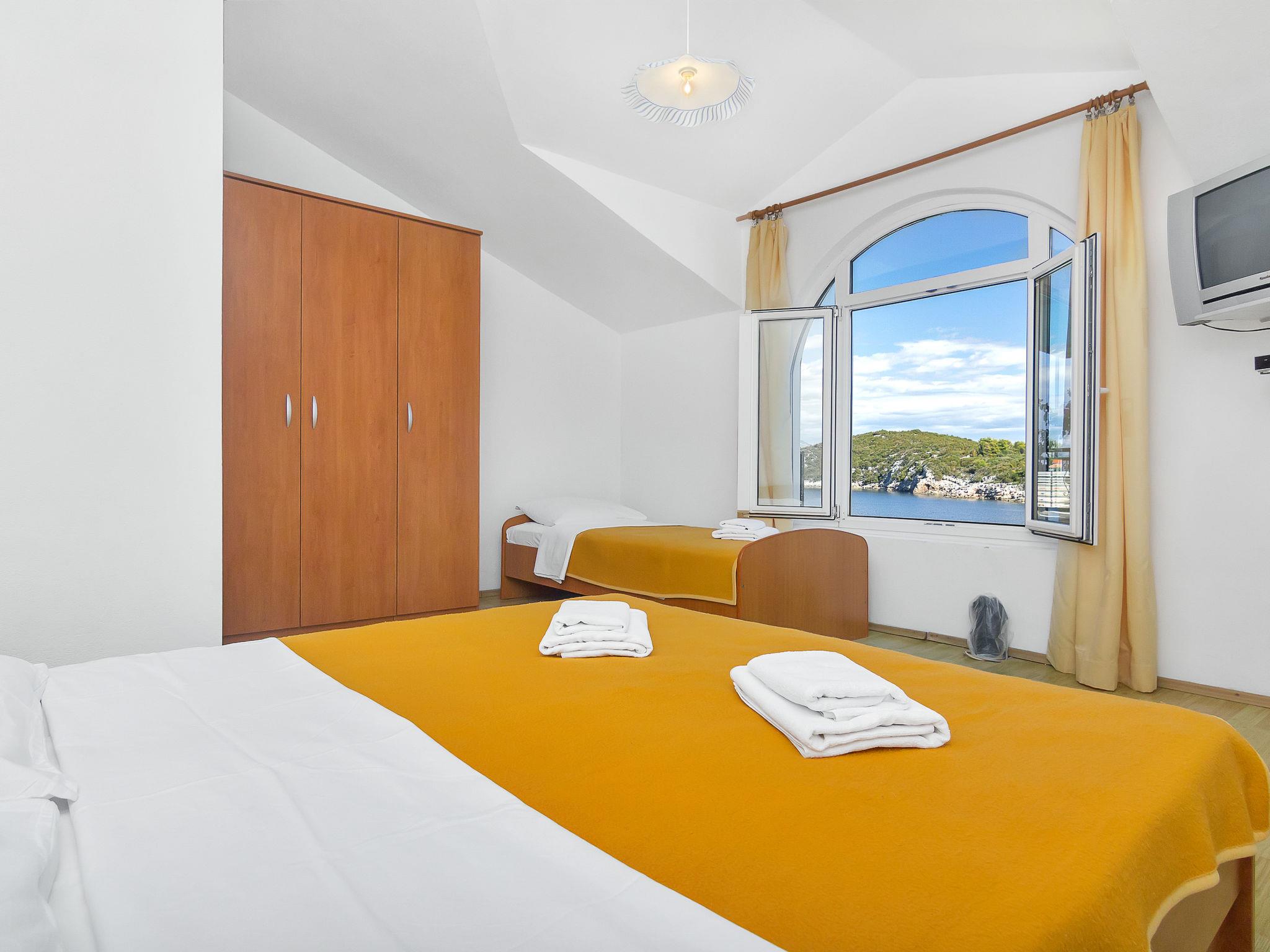 Mehrfamilienhaus "Rubin". 4 km vom Zentrum von Zastražišce, ruhige, sonnige Lage, 10 m vom Meer, 10 m vom Strand. Zur Mitbenutzung: Grundstück 1'000 m2. Grill. Im Hause: Internetzugang, Fahrradverleih. Parkplatz beim Haus auf dem Grundstück. Einkaufsgeschäft 4 km, Restaurant 15 km, Bushaltestelle 54.5 km, Felsstrand, betonierter Strand 10 m. Bitte beachten: private Bootsanlegestelle, auf Anfrage. Motorbootverleih möglich (auf Anfrage, extra).