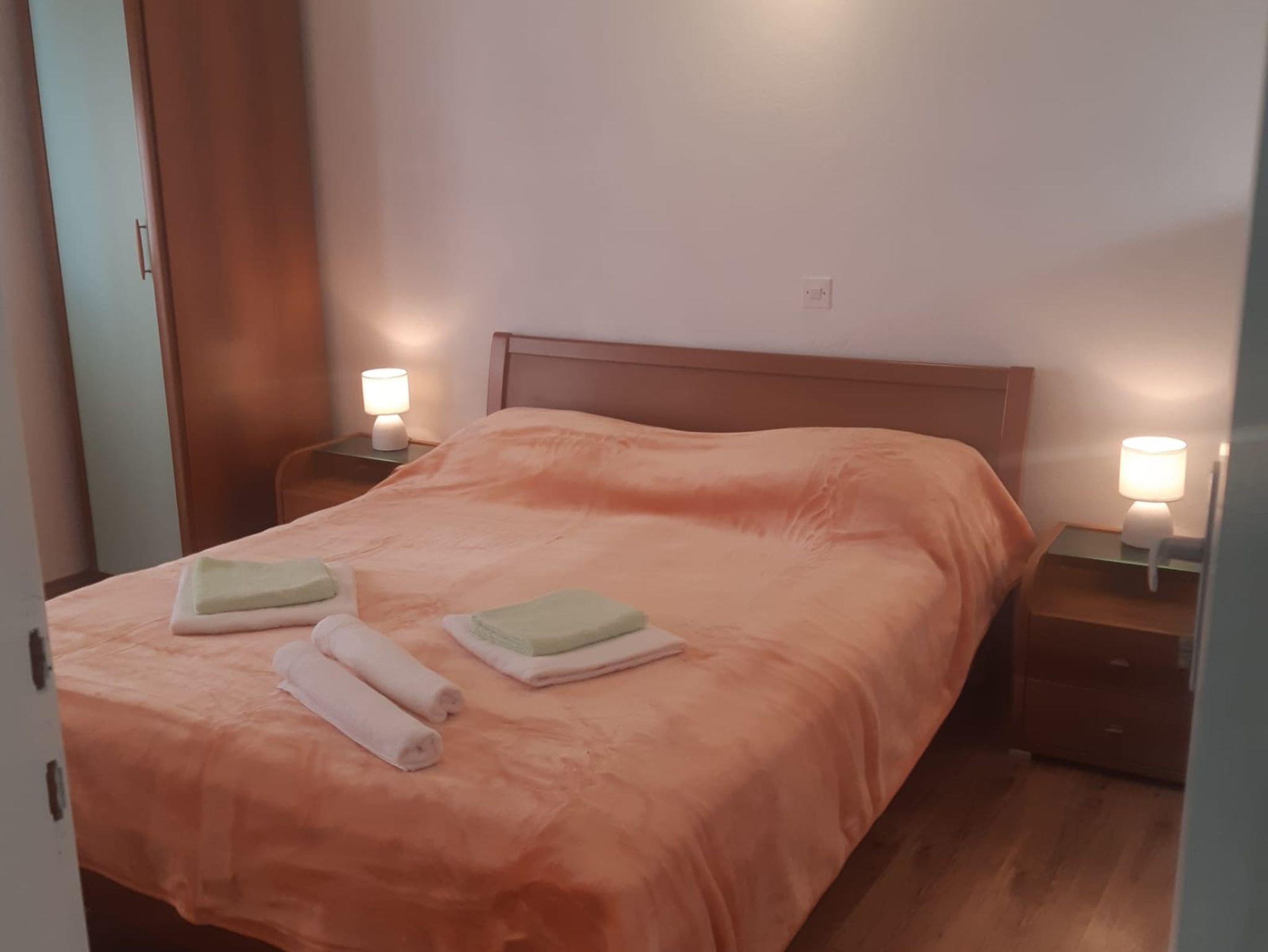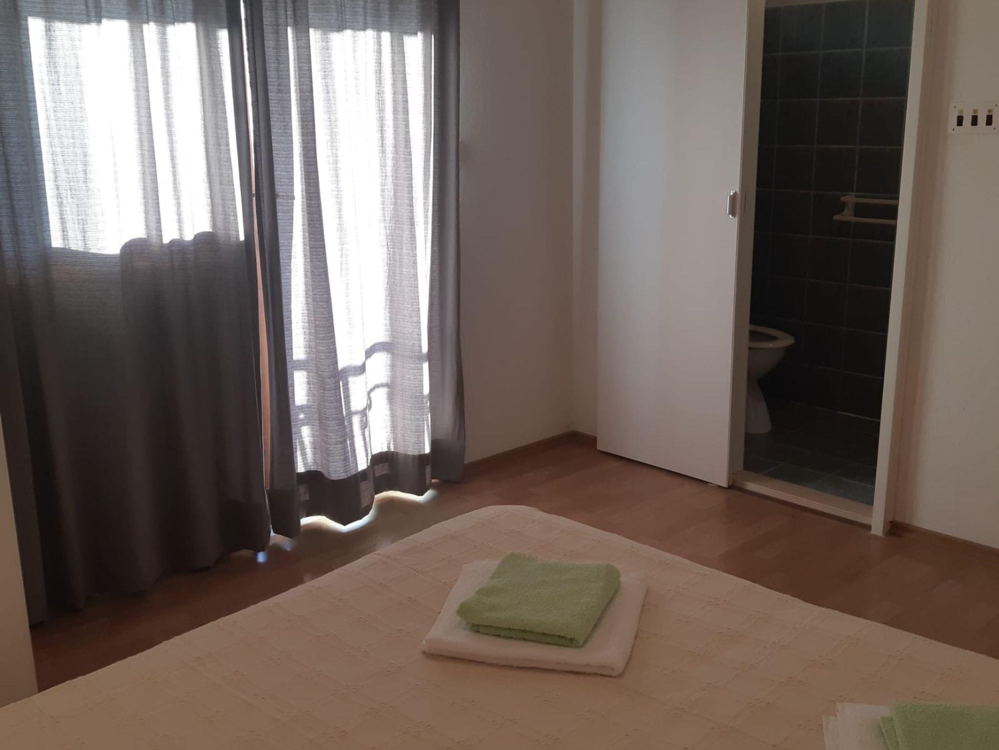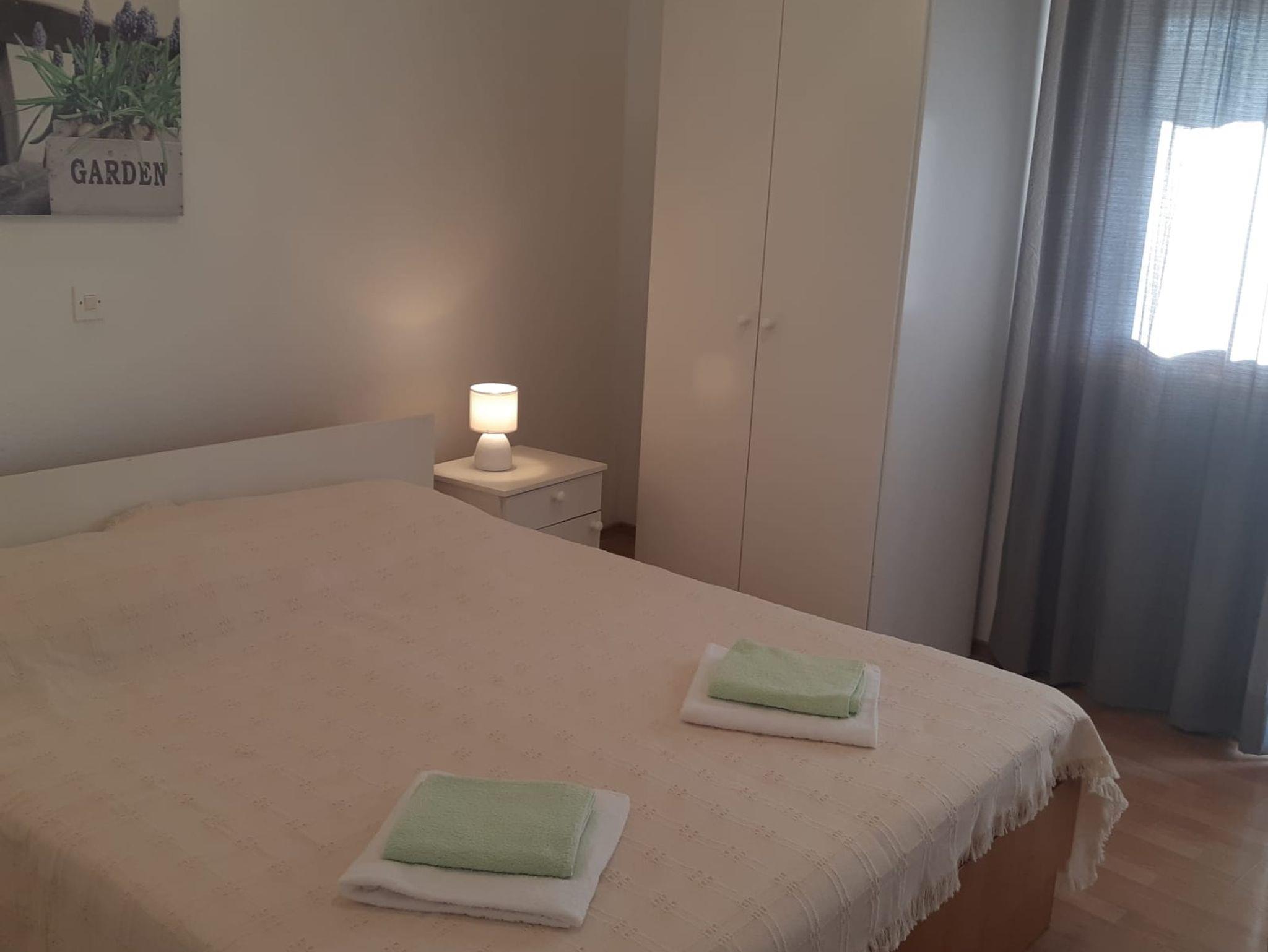 Ferienwohnung bietet Platz für 5 Gäste. Die Betten sind in Schlafzimmern, die es 2 gibt, und in Esszimmer, innerhalb einer Gesamtfläche von 44m2, angeordnet. Die Gäste haben einen eigenen Balkon zur Verfügung, auf der sie in warmen Sommernächten genießen können. Das Apartment bietet Meerblick. Es ist erlaubt, Speisen auf dem Gemeinschafts-Grill vorzubereiten. IM PREIS INBEGRIFFEN: Kurtaxe, Endreinigung, Klimatisierung, Parkplatz, Internet, Kinderbett, Bügeleisen, Bügelbrett, Föhn, tragbarer Grill. VERBINDLICHE ZUSÄTZLICHE KOSTEN: Aufzahlung für Kurzaufenthalte (prozentualer Zuschlag pro Nächtigungsanzahl: 30% - 1, 20% - 2, 10% - 3). Die Verfügbarkeit zusätzlicher Dienstleistungen in Ihrem reservierten Termin und die Preise derselben (falls nicht aufgeführt) müssen im Voraus überprüft werden. Zusätzliche Dienstleistungen die in der Zahlungsaufforderung nicht aufgeführt sind werden direkt beim Vermieter bezahlt, angenommen der Gast nutzt auch diese. Ermäßigung auf den Grundpreis: Gratistag 14=13 (bei einem Aufenthalt von 14 Tagen oder mehr erhalten Sie einen Gratistag für den Aufenthalt bis 31.12.26).