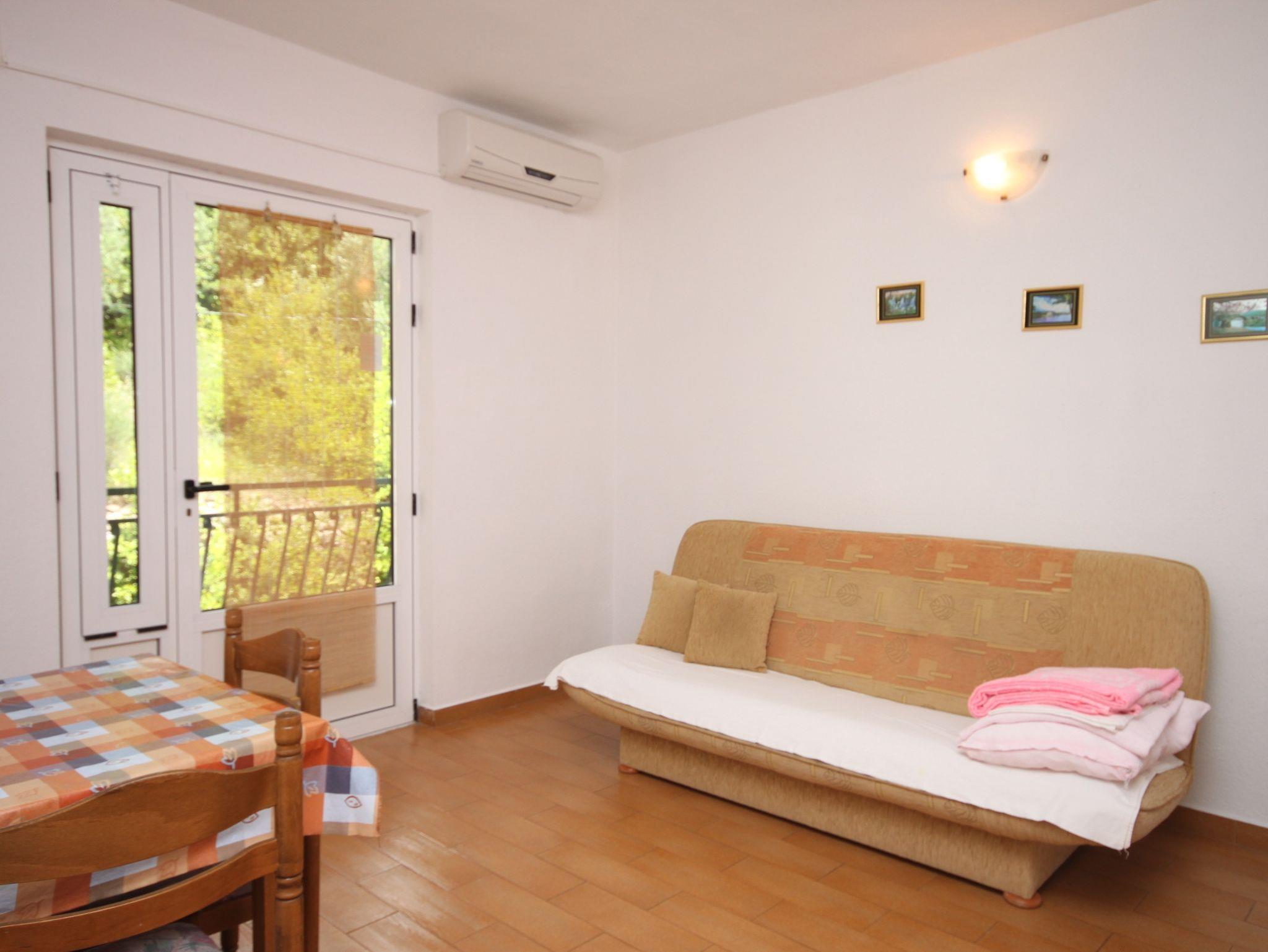 Ferienwohnung bietet Platz für 4 Gäste. Die Betten sind in Schlafzimmern, die es 1 gibt, und in Wohnzimmer, innerhalb einer Gesamtfläche von 31m2, angeordnet. Die Gäste haben einen eigenen Balkon zur Verfügung, auf der sie in warmen Sommernächten genießen können. Das Apartment bietet Meerblick. Es ist erlaubt, Speisen auf dem Gemeinschafts-Grill vorzubereiten. IM PREIS INBEGRIFFEN: Kurtaxe, Endreinigung, Klimatisierung, Parkplatz, Internet, Bootsanlegeplatz, Bügeleisen, Bügelbrett, Föhn. VERBINDLICHE ZUSÄTZLICHE KOSTEN: Aufzahlung für Kurzaufenthalte (prozentualer Zuschlag pro Nächtigungsanzahl: 30% - 1, 20% - 2, 10% - 3). UNVERBINDLICHE ZUSÄTZLICHE KOSTEN: Halbpension (12,00 €, 50% Nachlass für Kinder zwischen 4 und 12 Jahren, Kinder bis 4 Jahre sind frei.). Die Verfügbarkeit zusätzlicher Dienstleistungen in Ihrem reservierten Termin und die Preise derselben (falls nicht aufgeführt) müssen im Voraus überprüft werden. Zusätzliche Dienstleistungen die in der Zahlungsaufforderung nicht aufgeführt sind werden direkt beim Vermieter bezahlt, angenommen der Gast nutzt auch diese. Ermäßigung auf den Grundpreis: Gratistag 14=13 (bei einem Aufenthalt von 14 Tagen oder mehr erhalten Sie einen Gratistag für den Aufenthalt bis 31.12.26).