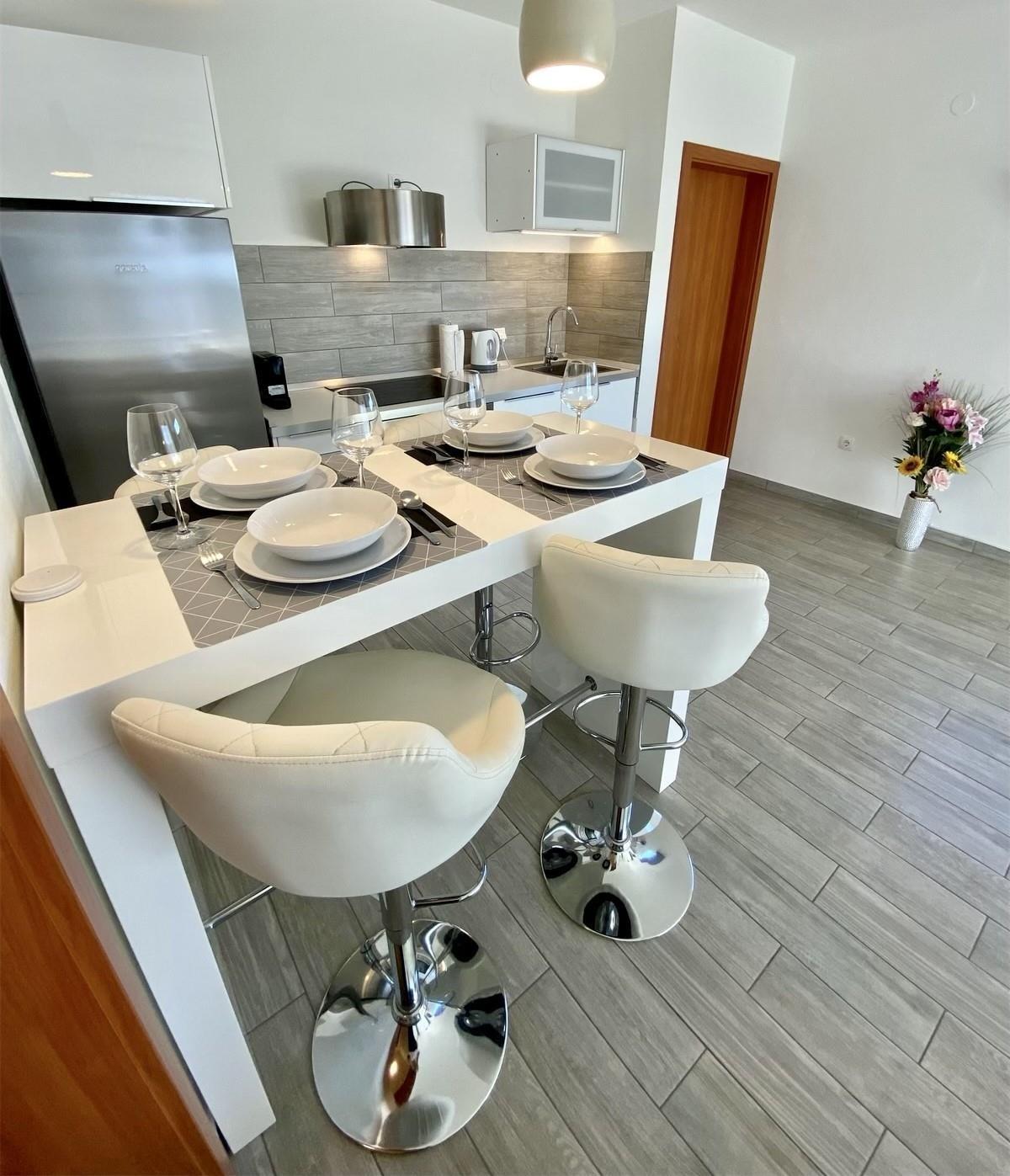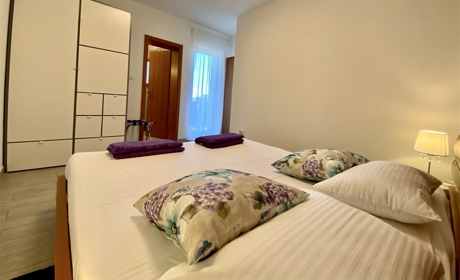 Ferienwohnung bietet Platz für 4 Gäste. Die Betten sind in Schlafzimmern, die es 1 gibt, und in Wohnzimmer, innerhalb einer Gesamtfläche von 43m2, angeordnet. Die Gäste haben eine eigene Terrasse zur Verfügung, auf der sie in warmen Sommernächten genießen können. Das Apartment bietet Meerblick. Es ist erlaubt, Speisen auf dem Gemeinschafts-Grill vorzubereiten.