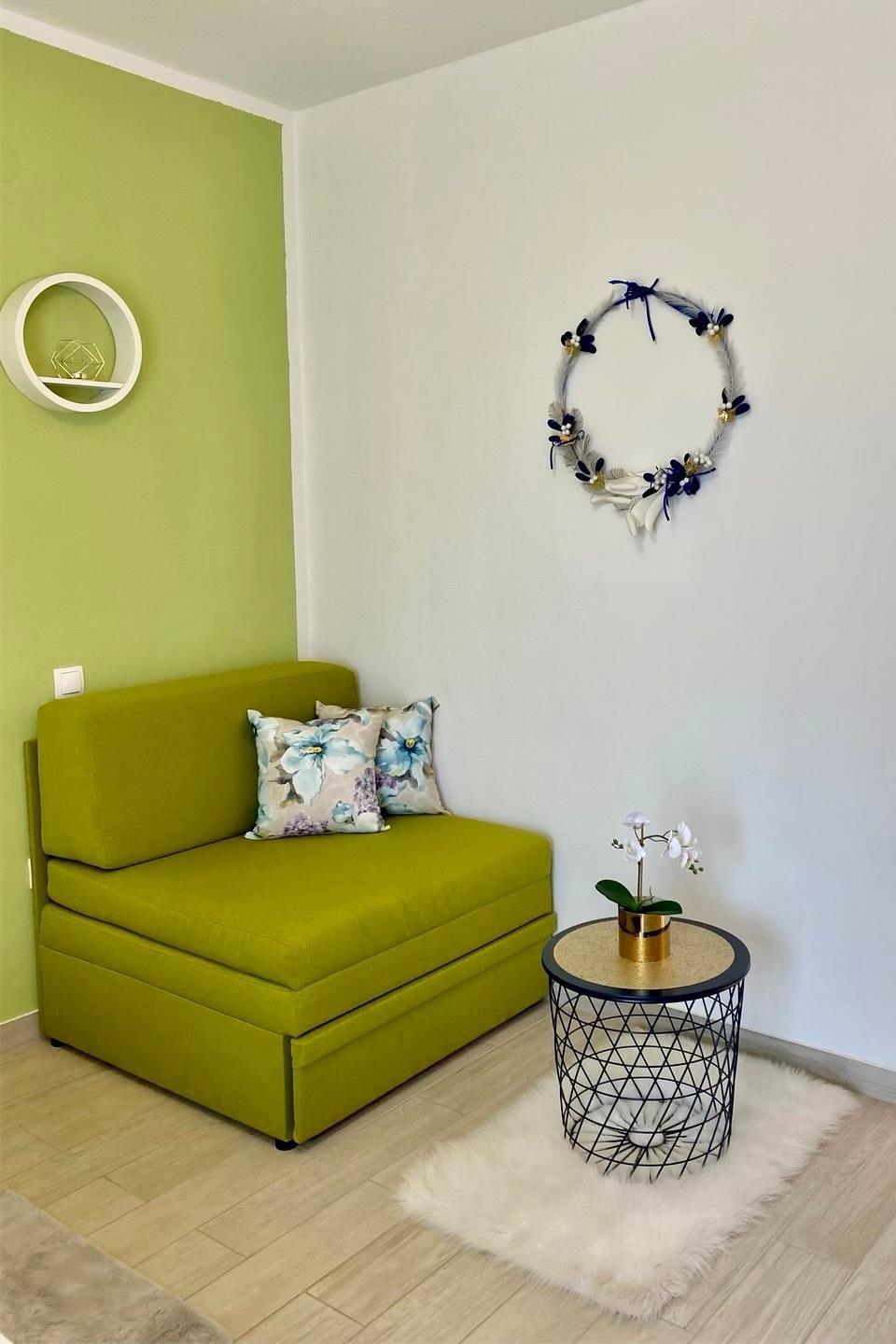 Studio bietet Platz für 2 Gäste. Die Betten sind in Schlafzimmern, die es 1 gibt, innerhalb einer Gesamtfläche von 23m2, angeordnet. Die Gäste haben einen eigenen Balkon zur Verfügung, auf der sie in warmen Sommernächten genießen können. Es ist erlaubt, Speisen auf dem Gemeinschafts-Grill vorzubereiten.