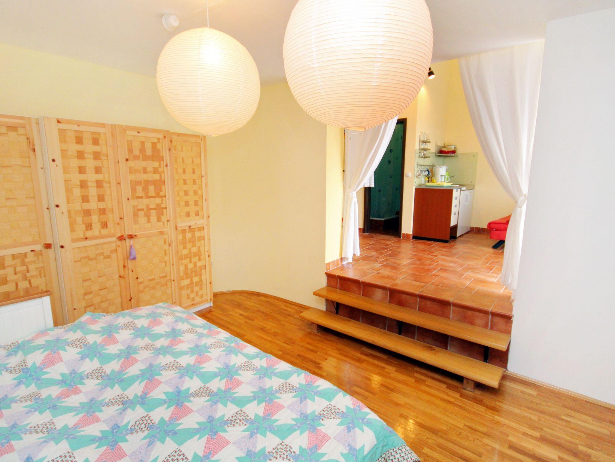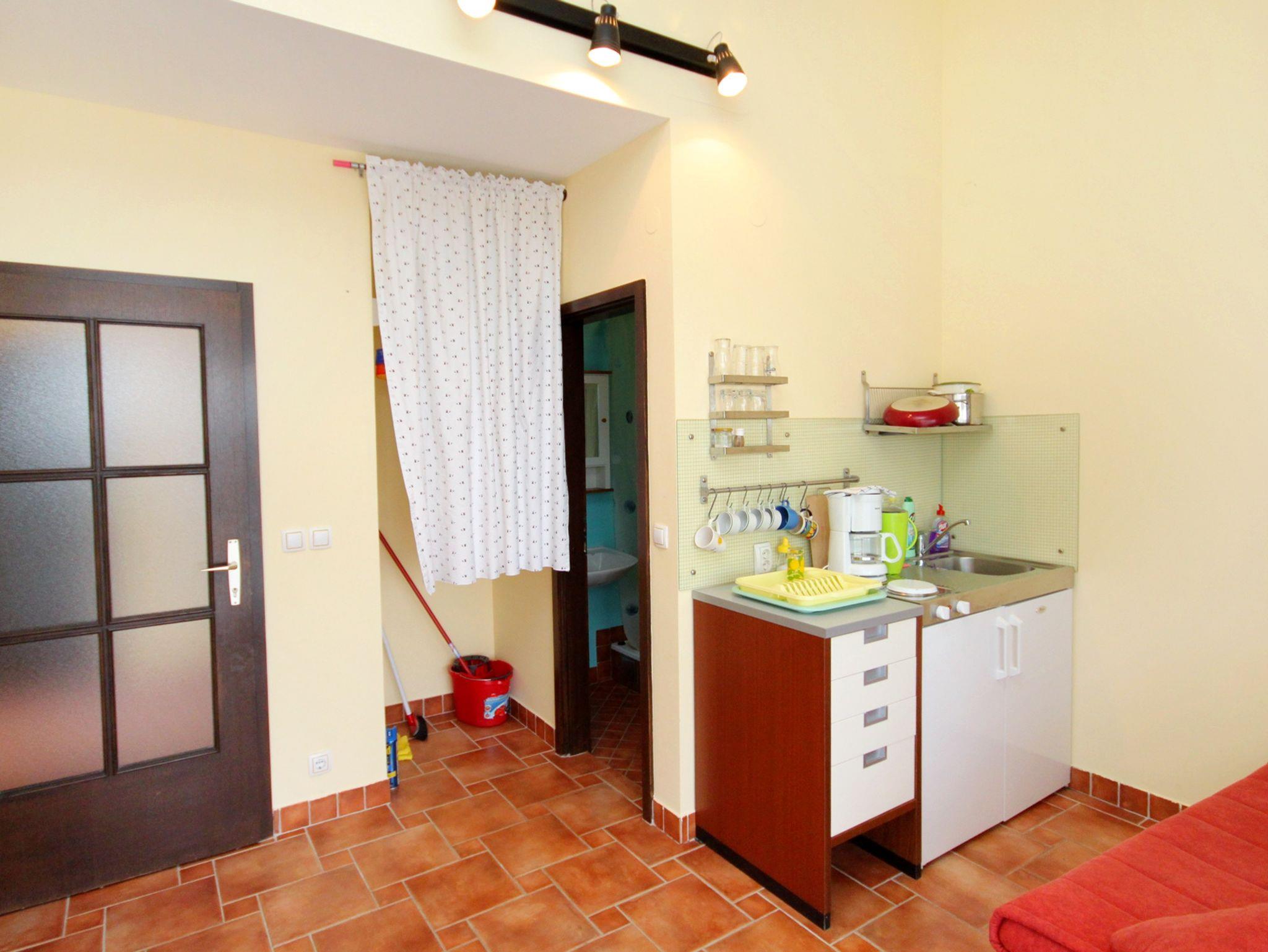 Studio bietet Platz für 2 Gäste. Die Betten sind in Schlafzimmern, die es 1 gibt, innerhalb einer Gesamtfläche von 30m2, angeordnet. Die Gäste haben eine eigene Terrasse zur Verfügung, auf der sie in warmen Sommernächten genießen können. Das Studio-Apartment bietet Meerblick. Es ist erlaubt, Speisen auf dem Gemeinschafts-Grill vorzubereiten. IM PREIS INBEGRIFFEN: Kurtaxe, Endreinigung, Internet, Kinderbett, 1 Bett für Kinder (im Preis enthalten). VERBINDLICHE ZUSÄTZLICHE KOSTEN: Aufzahlung für Kurzaufenthalte (prozentualer Zuschlag pro Nächtigungsanzahl: 30% - 1, 20% - 2, 10% - 3). Die Verfügbarkeit zusätzlicher Dienstleistungen in Ihrem reservierten Termin und die Preise derselben (falls nicht aufgeführt) müssen im Voraus überprüft werden. Zusätzliche Dienstleistungen die in der Zahlungsaufforderung nicht aufgeführt sind werden direkt beim Vermieter bezahlt, angenommen der Gast nutzt auch diese.