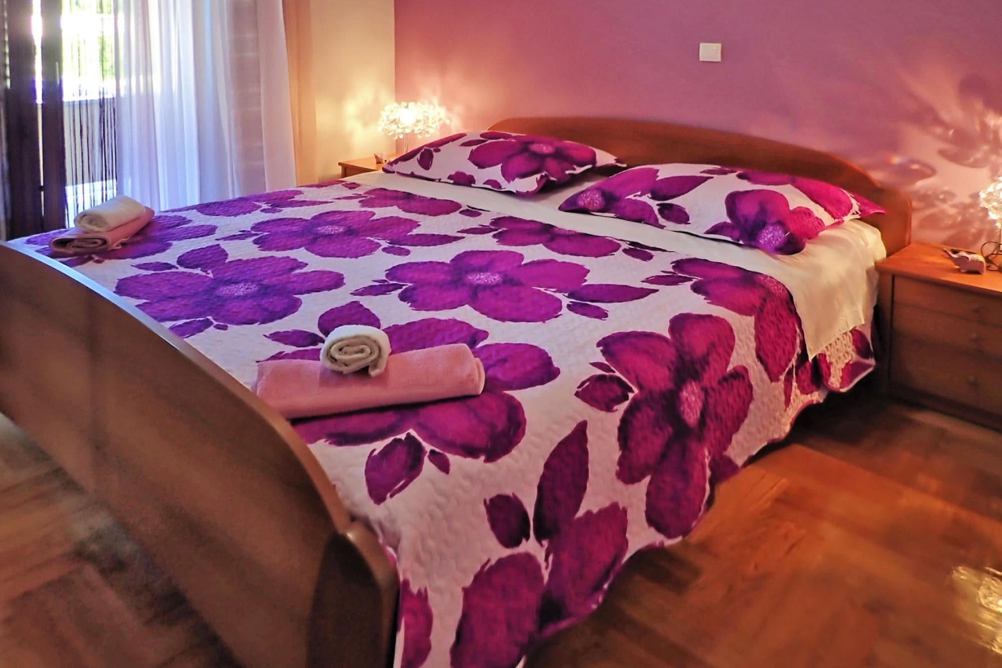 Appartementhaus in ruhiger Lage, mit schöner Aussicht auf das Velebit Gebirge und den angrenzenden Wald. Der Weg zum nur 150 m entfernten Strand führt durch einen Pinienwald der sich direkt vor dem Haus befindet. Die Ferienwohnung ist geräumig und gemütlich und verfügt über alle Annehmlichkeiten, die einen erholsamen Urlaub versprechen. Vor dem Haus befindet sich ein schöner Innenhof mit Gartenmöbeln und ein Grill zur gemeinsamen Nutzung. Zwischen Meer und Bergen - an einer kleinen Bucht befindet sich die kleine Ortschaft Rovanjska. Dieser malerische kleine Urlaubsort verspricht Erholung und Entspannung. Wer auch im Urlaub aktiv sein möchte, findet hier einige Möglichkeiten für Wassersport und durch die Nähe zu fünf Naturparks auch zu ausgedehnten Spaziergängen und Mountainbike-Touren. Lassen Sie sich im Urlaub verzaubern von der wunderschönen Landschaft Kroatiens. HighLights Inklusive: Verbrauchsabhängige Energiekosten, Bettwäsche, Handtücher, Endreinigung, WLAN, Kurtaxe, Anmeldegebühr. Aktivitäten in der Nähe : Bootsausflüge sowie Wassersport mit Seekajaks, Tauchen, Schnorcheln, Kanusafaris und Angeln werden in der Nähe angeboten. Wandern, Klettern und Mountainbiken in herrlicher Kulisse ist im Nationalpark Paklenica sehr gut möglich. Hier werden auch Jeep-Safaris auf Winnetous Spuren im Velebitgebirge zu den Filmschauplätzen angeboten. Weitere Ausflügsmöglichkeiten bieten die Plitvicer Seen, die Städte Zadar und Nin sowie der Kornati Insel-Nationalpark. Mobilität : Nicht geeignet für Personen mit eingeschränkter Mobilität.