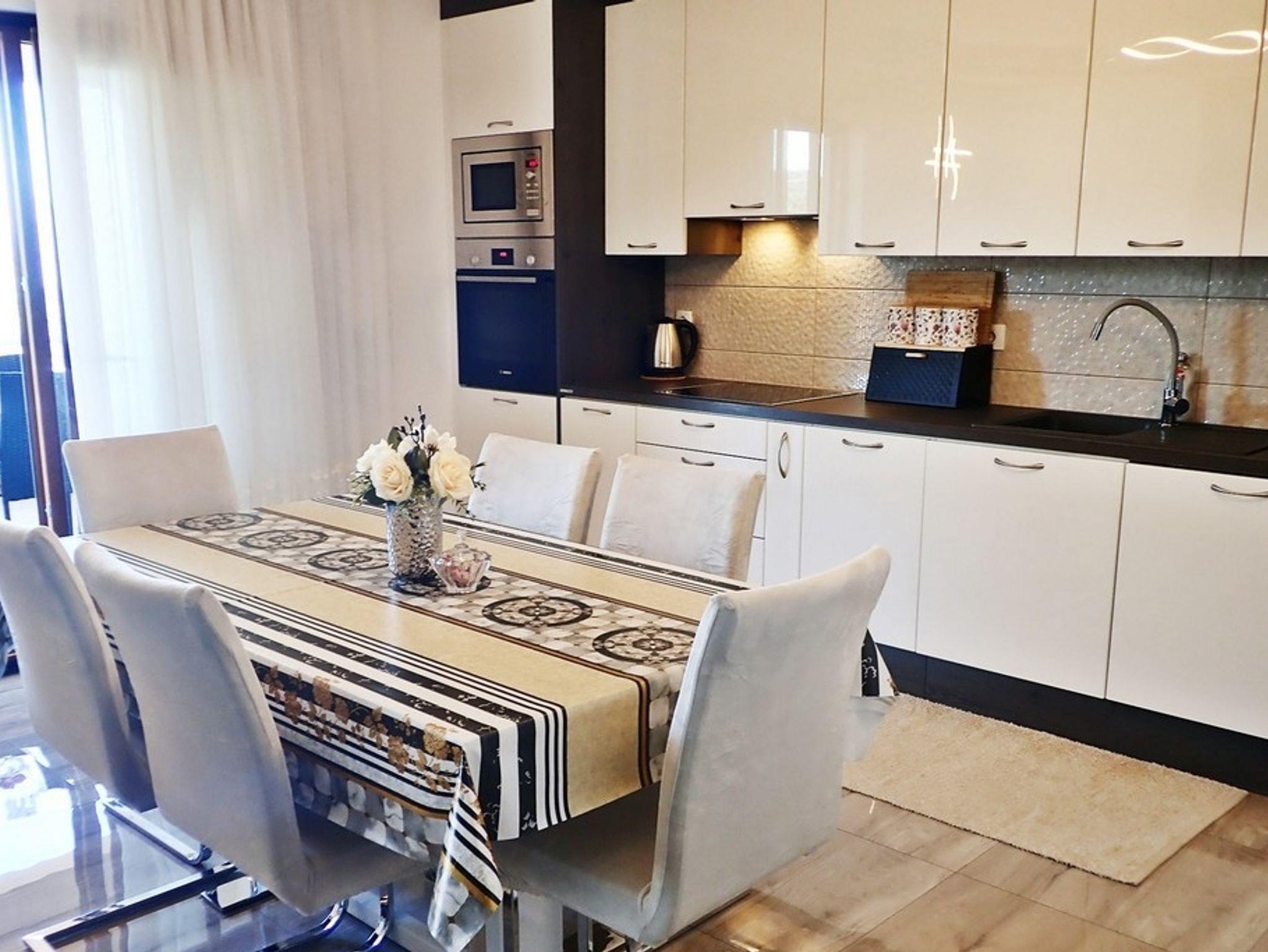 Ferienwohnung bietet Platz für 6 Gäste. Die Betten sind in Schlafzimmern, die es 3 gibt, innerhalb einer Gesamtfläche von 100m2, angeordnet. Die Gäste haben einen eigenen Balkon zur Verfügung, auf der sie in warmen Sommernächten genießen können. Das Apartment bietet Meerblick. Es ist erlaubt, Speisen auf dem Gemeinschafts-Grill vorzubereiten. IM PREIS INBEGRIFFEN: Kurtaxe, Endreinigung, Klimatisierung, Parkplatz, Internet. Die Verfügbarkeit zusätzlicher Dienstleistungen in Ihrem reservierten Termin und die Preise derselben (falls nicht aufgeführt) müssen im Voraus überprüft werden. Zusätzliche Dienstleistungen die in der Zahlungsaufforderung nicht aufgeführt sind werden direkt beim Vermieter bezahlt, angenommen der Gast nutzt auch diese.