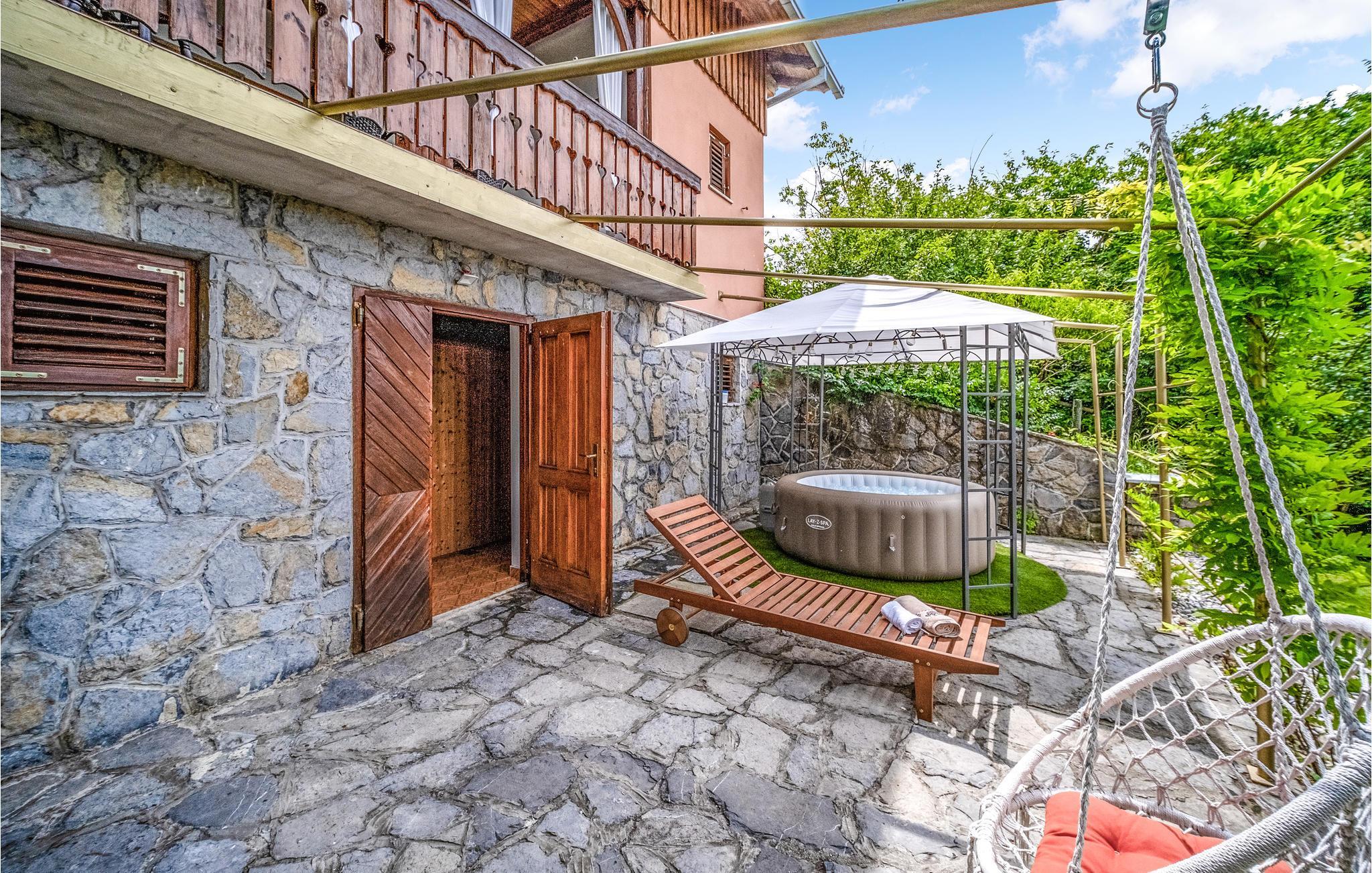 Auf zwei Etagen bietet Ihnen das Haus viele Möglichkeiten gemeinsam Zeit zu verbringen. Gehen Sie in den Whirlpool und lauschen dem Zwitschern der Vögel zu. Die vielen Sitzmöglichkeiten bieten Ihnen die freie Wahl die zubereiteten Speisen gemeinsam an der frischen Luft oder innen zu sich zu nehmen. Der gemauerte Grill lädt Sie dazu ein leckeres Barbecue zu veranstalten. Sollte es am Abend doch mal zu kühl sein, können Sie sich in das lauschige Wohnzimmer zurückziehen und den Kachelofen anschüren.