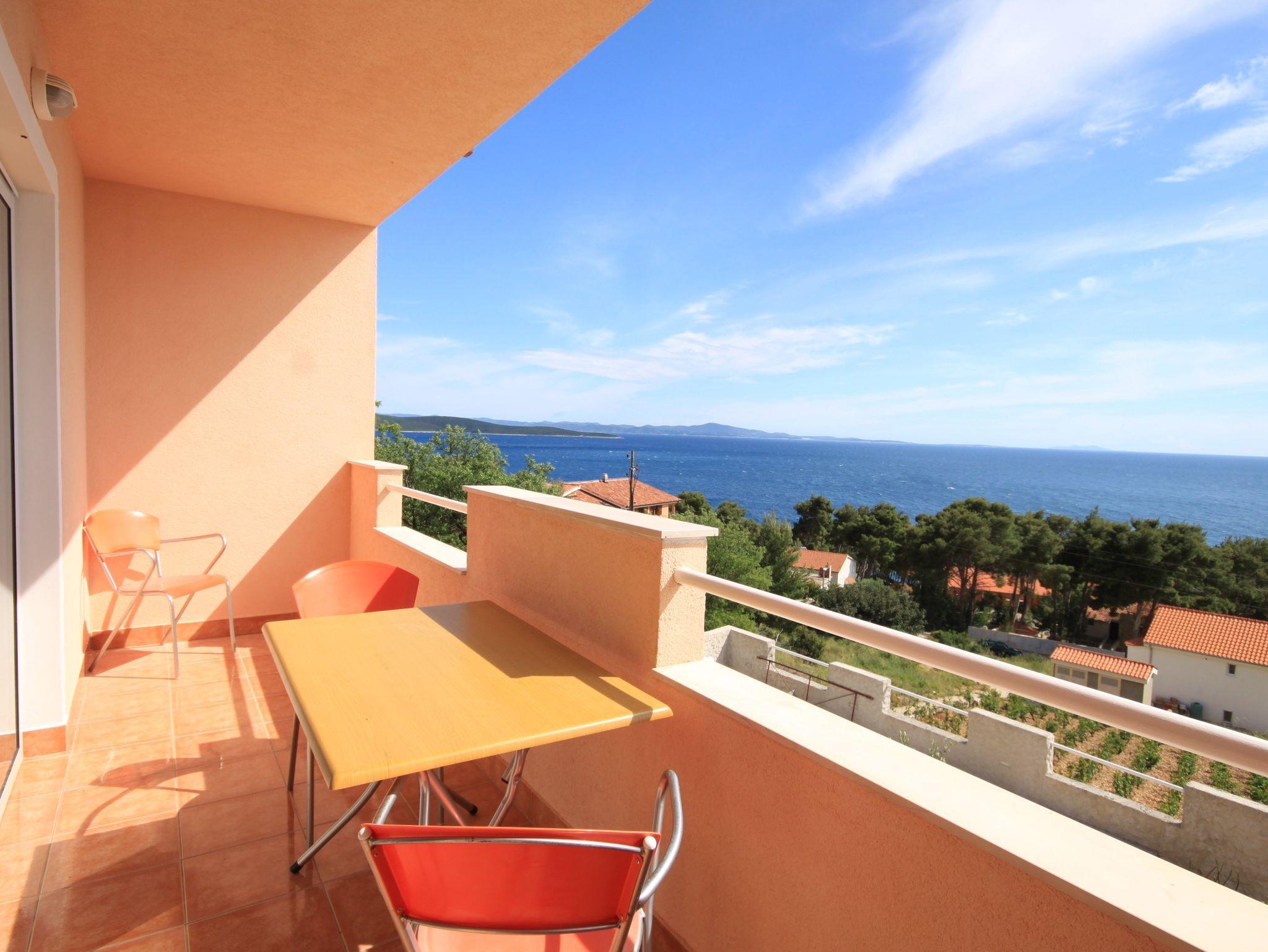 Ferienwohnung bietet Platz für 4 Gäste. Die Betten sind in Schlafzimmern, die es 2 gibt, innerhalb einer Gesamtfläche von 47m2, angeordnet. Die Gäste haben einen eigenen Balkon zur Verfügung, auf der sie in warmen Sommernächten genießen können. Das Apartment bietet Meerblick. Es ist erlaubt, Speisen auf dem Gemeinschafts-Grill vorzubereiten. In der Unterkunftseinheit besteht die Möglichkeit des Mitbringens von Haustieren gegen Aufpreis. IM PREIS INBEGRIFFEN: Kurtaxe, Endreinigung, Parkplatz, Internet, Bootsanlegeplatz, Kinderbett. UNVERBINDLICHE ZUSÄTZLICHE KOSTEN: Frühstück (15,00 €, 50% Nachlass für Kinder zwischen 4 und 12 Jahren, Kinder bis 4 Jahre sind frei.), Klimatisierung (5,00 € pro Nacht), Wäschewaschen (3,00 € Waschen), Haustiere (10,00 € pro Nacht), Zusatzbett (15,00 € pro Nacht). Die Verfügbarkeit zusätzlicher Dienstleistungen in Ihrem reservierten Termin und die Preise derselben (falls nicht aufgeführt) müssen im Voraus überprüft werden. Zusätzliche Dienstleistungen die in der Zahlungsaufforderung nicht aufgeführt sind werden direkt beim Vermieter bezahlt, angenommen der Gast nutzt auch diese. Ermäßigung auf den Grundpreis: Gratistag 14=13 (bei einem Aufenthalt von 14 Tagen oder mehr erhalten Sie einen Gratistag für den Aufenthalt bis 31.12.26).