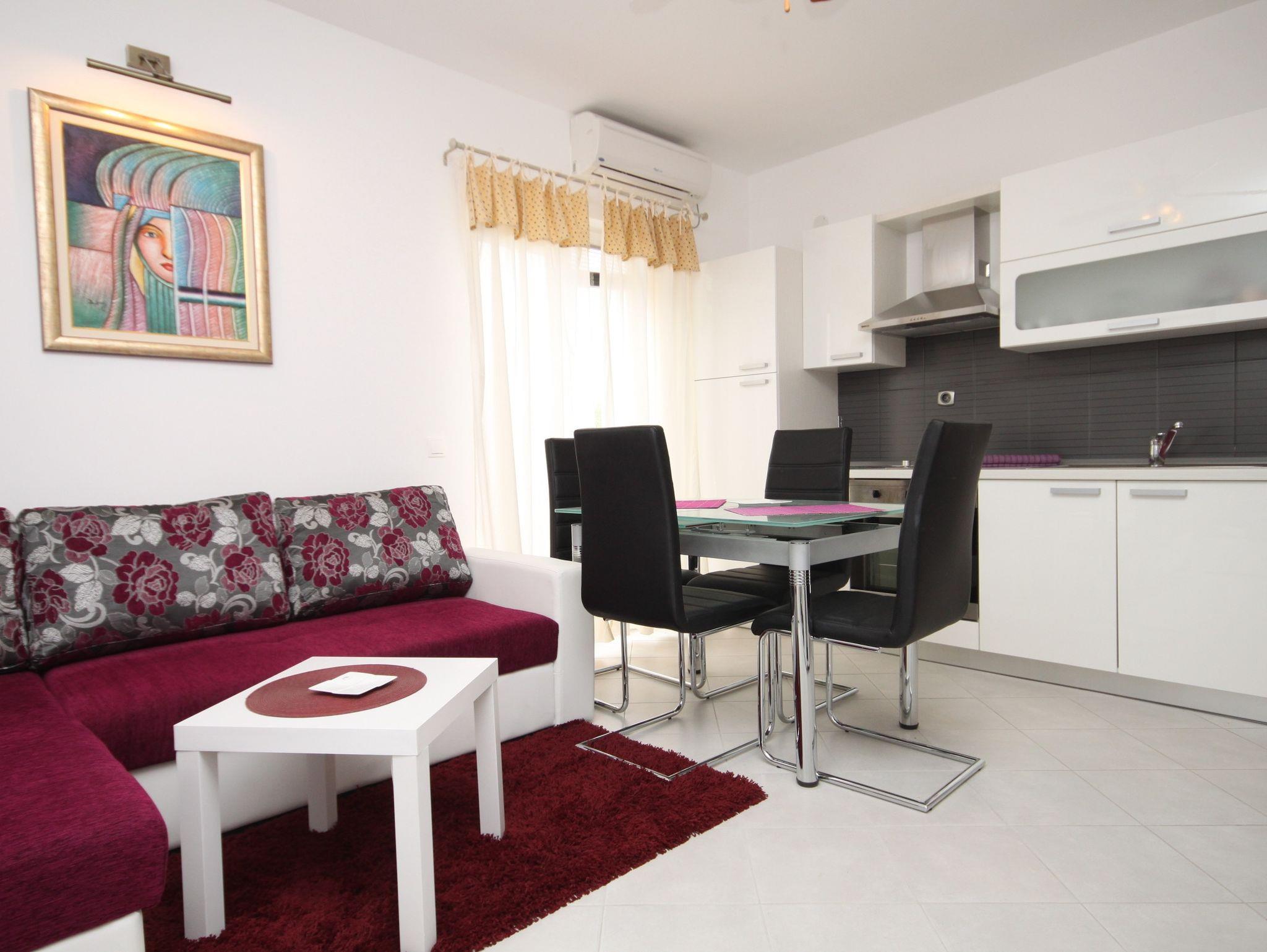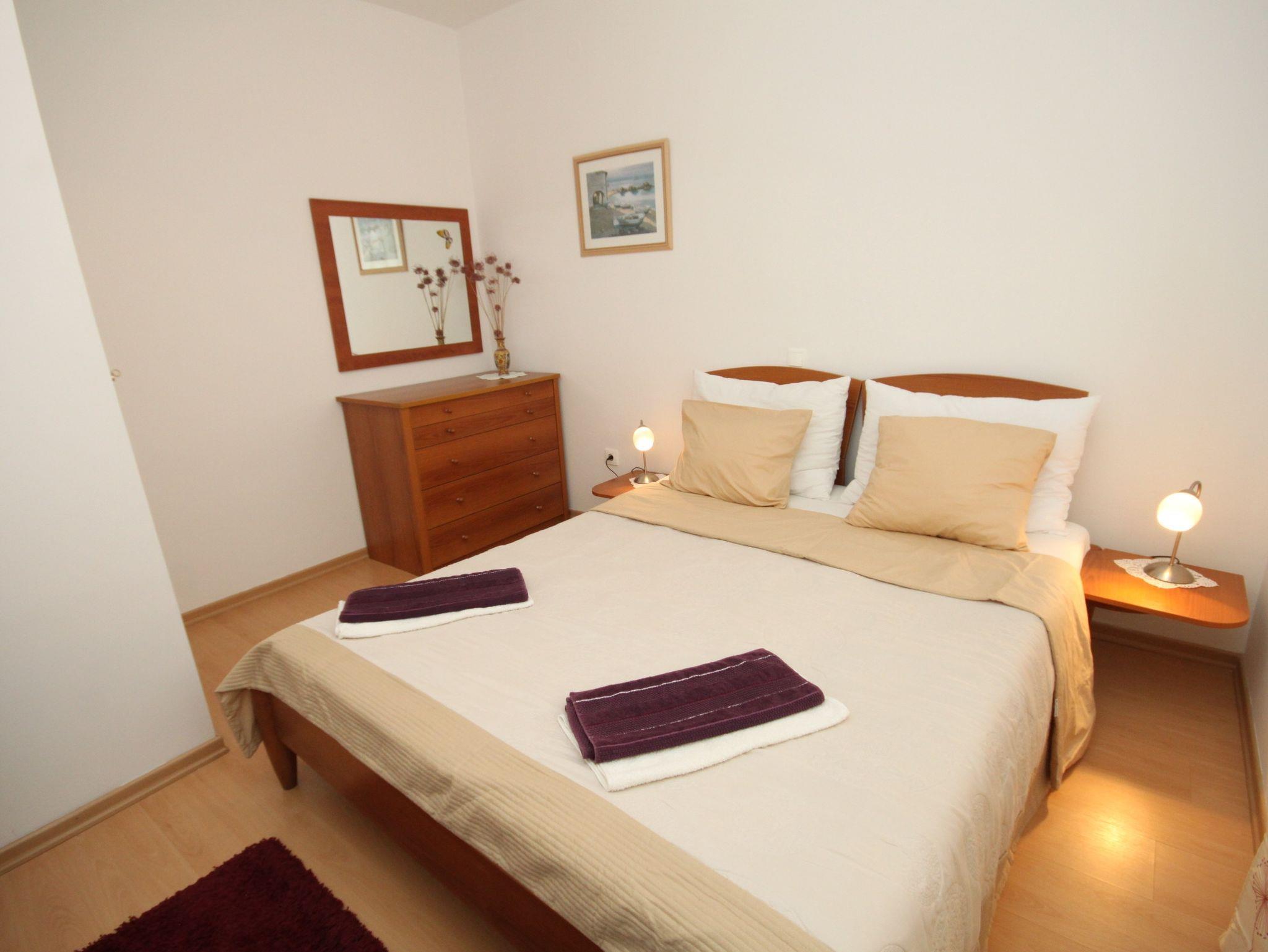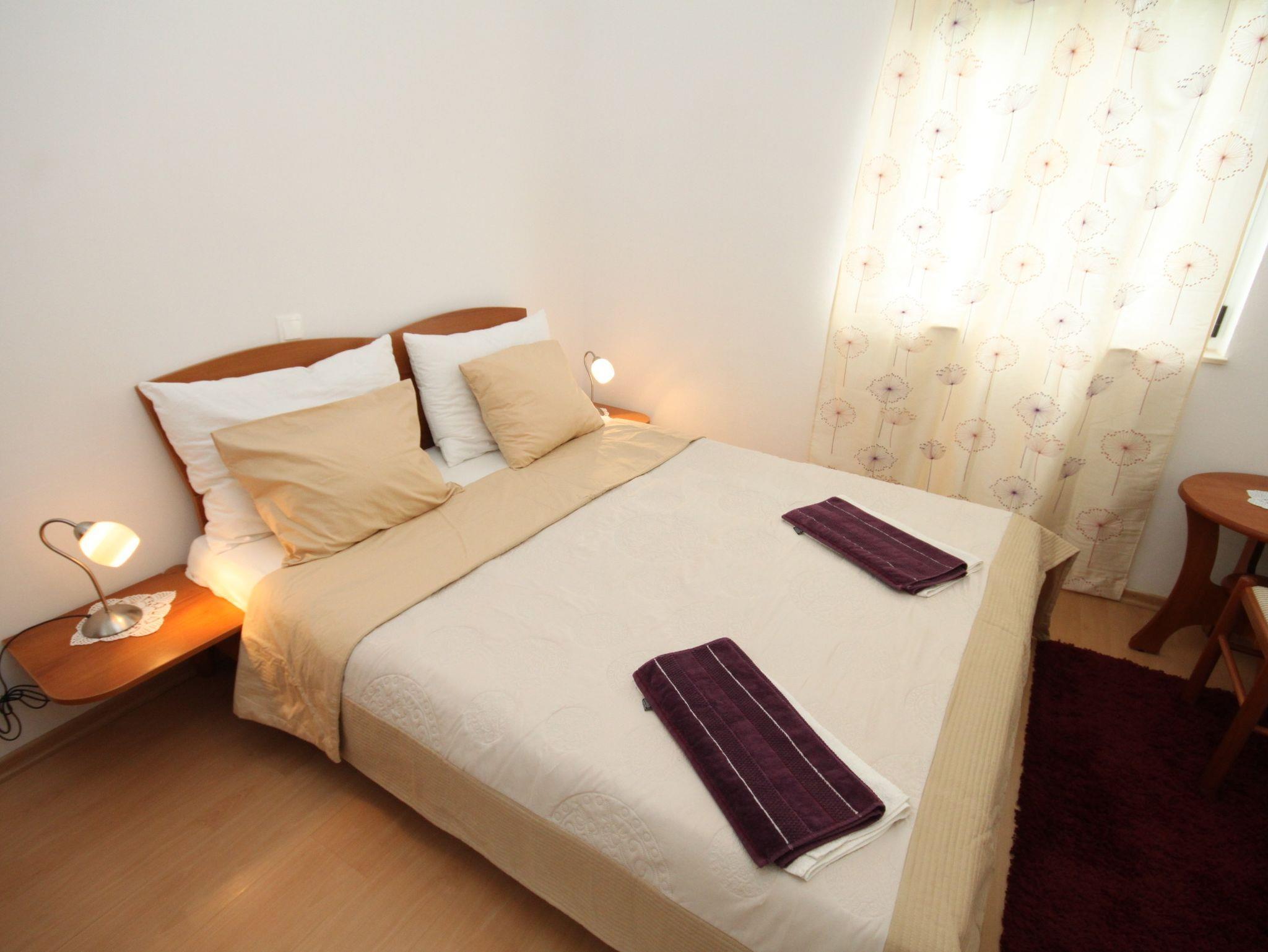 Ferienwohnung bietet Platz für 4 Gäste. Die Betten sind in Schlafzimmern, die es 2 gibt, innerhalb einer Gesamtfläche von 41m2, angeordnet. Die Gäste haben einen eigenen Balkon zur Verfügung, auf der sie in warmen Sommernächten genießen können. Das Apartment bietet Meerblick. Es ist erlaubt, Speisen auf dem Gemeinschafts-Grill vorzubereiten. In der Unterkunftseinheit besteht die Möglichkeit des Mitbringens von Haustieren gegen Aufpreis. Die reservierte Unterkunftseinheit verfügt über einen gemeinsame Terrasse. IM PREIS INBEGRIFFEN: Kurtaxe, Endreinigung, Parkplatz, Internet, Bootsanlegeplatz, Kinderbett. UNVERBINDLICHE ZUSÄTZLICHE KOSTEN: Frühstück (15,00 €, 50% Nachlass für Kinder zwischen 4 und 12 Jahren, Kinder bis 4 Jahre sind frei.), Klimatisierung (5,00 € pro Nacht), Wäschewaschen (3,00 € Waschen), Haustiere (10,00 € pro Nacht), Zusatzbett (15,00 € pro Nacht). Die Verfügbarkeit zusätzlicher Dienstleistungen in Ihrem reservierten Termin und die Preise derselben (falls nicht aufgeführt) müssen im Voraus überprüft werden. Zusätzliche Dienstleistungen die in der Zahlungsaufforderung nicht aufgeführt sind werden direkt beim Vermieter bezahlt, angenommen der Gast nutzt auch diese. Ermäßigung auf den Grundpreis: Gratistag 14=13 (bei einem Aufenthalt von 14 Tagen oder mehr erhalten Sie einen Gratistag für den Aufenthalt bis 31.12.26).