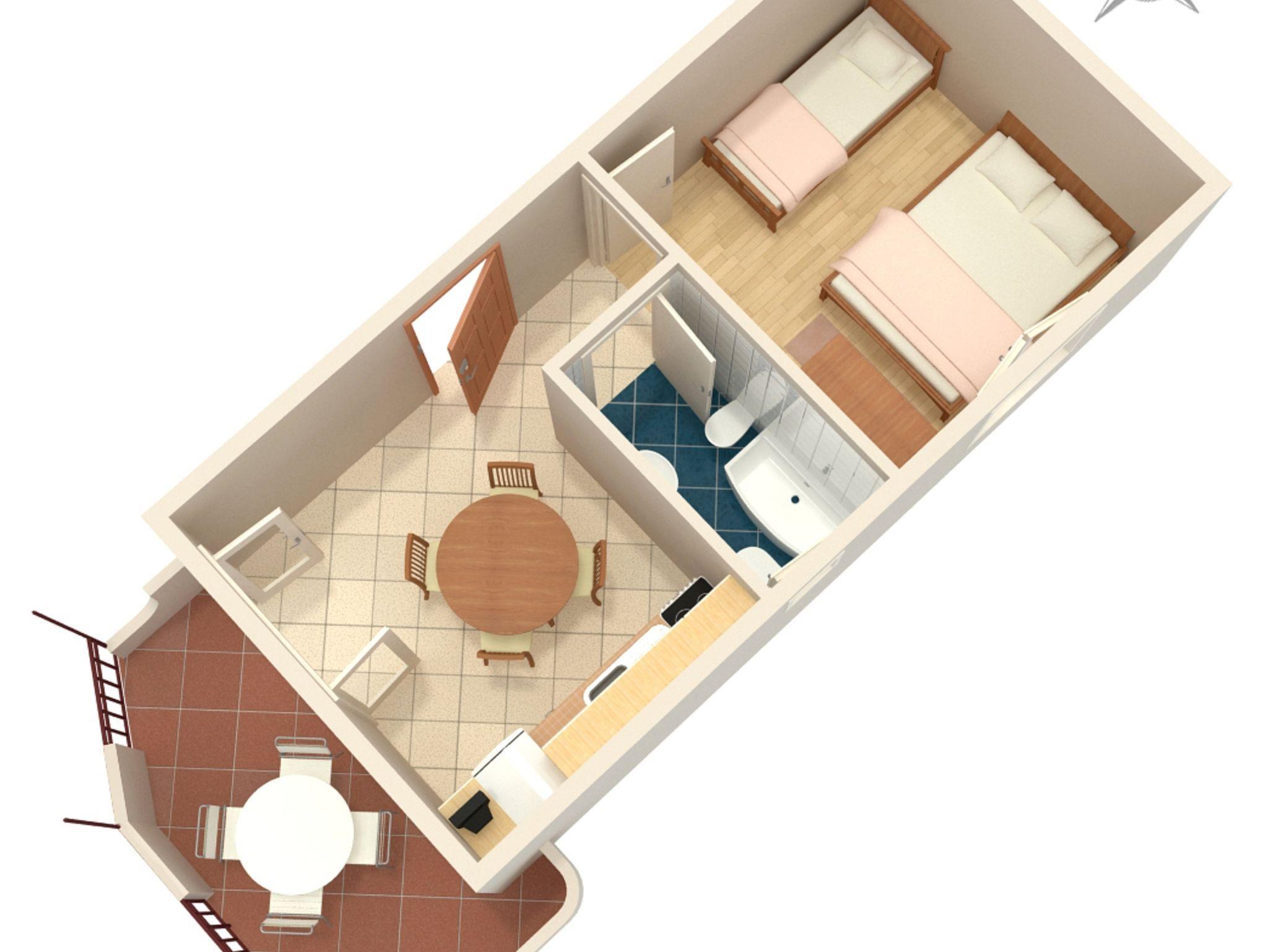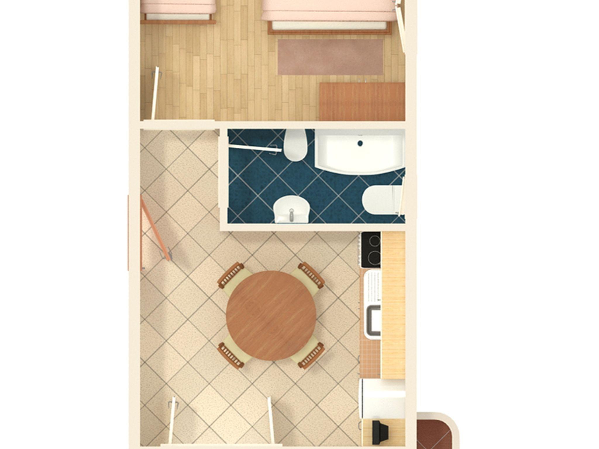 Ferienwohnung bietet Platz für 3 Gäste. Die Betten sind in Schlafzimmern, die es 1 gibt, innerhalb einer Gesamtfläche von 26m2, angeordnet. Die Gäste haben eine eigene Terrasse zur Verfügung, auf der sie in warmen Sommernächten genießen können. Es ist erlaubt, Speisen auf dem Gemeinschafts-Grill vorzubereiten. In der Unterkunftseinheit besteht die Möglichkeit des Mitbringens von Haustieren gegen Aufpreis. IM PREIS INBEGRIFFEN: Kurtaxe, Endreinigung, Klimatisierung, Parkplatz, Internet. VERBINDLICHE ZUSÄTZLICHE KOSTEN: Aufzahlung für Kurzaufenthalte (prozentualer Zuschlag pro Nächtigungsanzahl: 30% - 1, 20% - 2, 10% - 3). UNVERBINDLICHE ZUSÄTZLICHE KOSTEN: Haustiere (5,00 € pro Nacht). Die Verfügbarkeit zusätzlicher Dienstleistungen in Ihrem reservierten Termin und die Preise derselben (falls nicht aufgeführt) müssen im Voraus überprüft werden. Zusätzliche Dienstleistungen die in der Zahlungsaufforderung nicht aufgeführt sind werden direkt beim Vermieter bezahlt, angenommen der Gast nutzt auch diese.