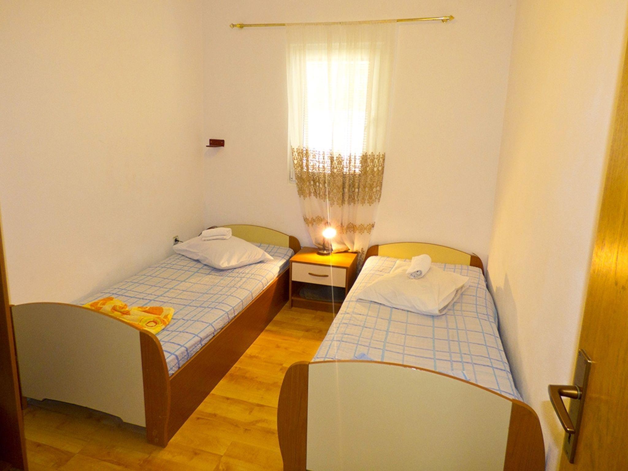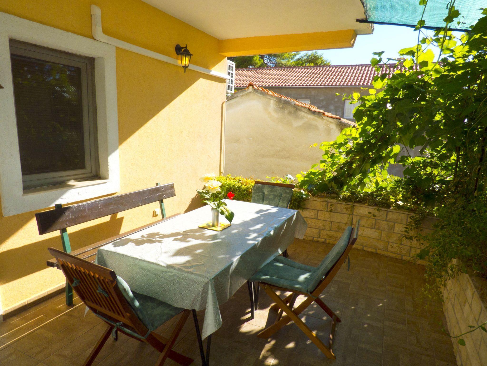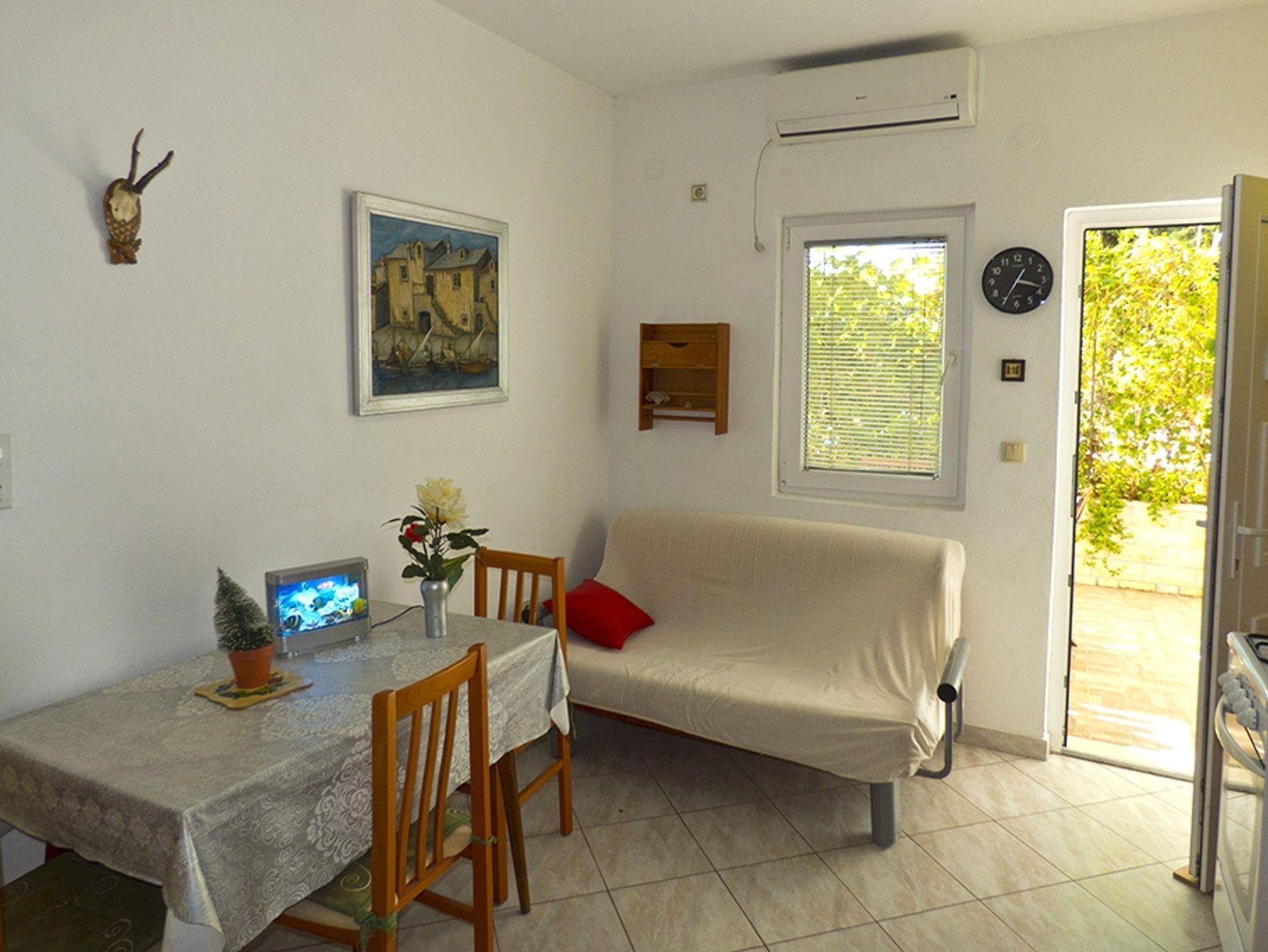 Ferienwohnung bietet Platz für 5 Gäste. Die Betten sind in Schlafzimmern, die es 2 gibt, und in Esszimmer, innerhalb einer Gesamtfläche von 33m2, angeordnet. Die Gäste haben eine eigene Terrasse zur Verfügung, auf der sie in warmen Sommernächten genießen können. Das Apartment bietet Meerblick. Es ist erlaubt, Speisen auf dem Gemeinschafts-Grill vorzubereiten. In der Unterkunftseinheit besteht die Möglichkeit des Mitbringens von Haustieren gegen Aufpreis. IM PREIS INBEGRIFFEN: Kurtaxe, Endreinigung, Klimatisierung, Parkplatz, Internet, Bügeleisen, Bügelbrett, Föhn. VERBINDLICHE ZUSÄTZLICHE KOSTEN: Aufzahlung für Kurzaufenthalte (prozentualer Zuschlag pro Nächtigungsanzahl: 30% - 1, 20% - 2, 10% - 3). UNVERBINDLICHE ZUSÄTZLICHE KOSTEN: Wäschewaschen (5,00 € Waschen), Bootsanlegeplatz (10,00 € pro Nacht), Haustiere (5,00 € pro Nacht). Die Verfügbarkeit zusätzlicher Dienstleistungen in Ihrem reservierten Termin und die Preise derselben (falls nicht aufgeführt) müssen im Voraus überprüft werden. Zusätzliche Dienstleistungen die in der Zahlungsaufforderung nicht aufgeführt sind werden direkt beim Vermieter bezahlt, angenommen der Gast nutzt auch diese.