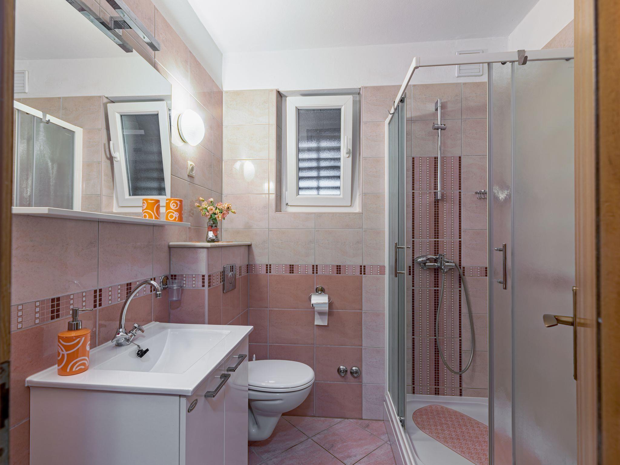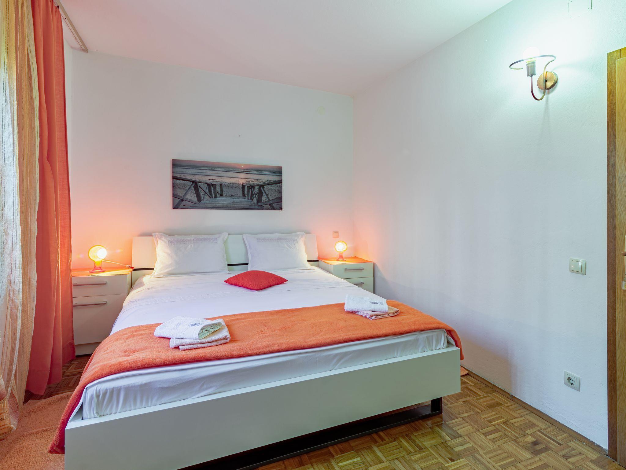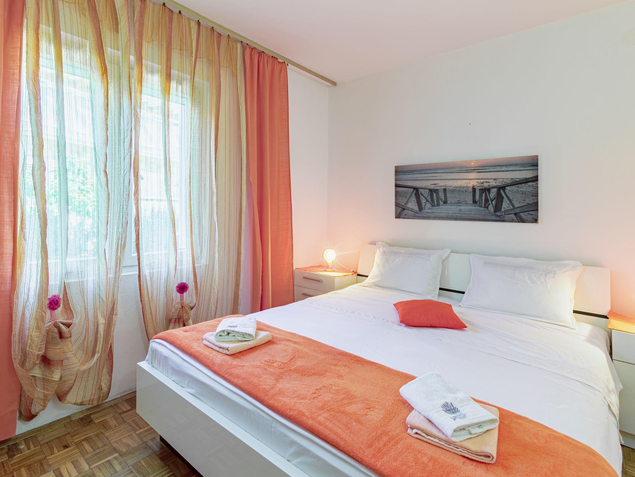 Ferienwohnung bietet Platz für 2 Gäste. Die Betten sind in Schlafzimmern, die es 1 gibt, innerhalb einer Gesamtfläche von 39m2, angeordnet. Die Gäste haben eine eigene Terrasse zur Verfügung, auf der sie in warmen Sommernächten genießen können. Das Apartment bietet Meerblick. Es ist erlaubt, Speisen auf dem Gemeinschafts-Grill vorzubereiten. IM PREIS INBEGRIFFEN: Kurtaxe, Endreinigung, Klimatisierung, Parkplatz, Internet, Wäschewaschen, Kinderbett. VERBINDLICHE ZUSÄTZLICHE KOSTEN: Aufzahlung für Kurzaufenthalte (prozentualer Zuschlag pro Nächtigungsanzahl: 30% - 1, 20% - 2, 10% - 3). Die Verfügbarkeit zusätzlicher Dienstleistungen in Ihrem reservierten Termin und die Preise derselben (falls nicht aufgeführt) müssen im Voraus überprüft werden. Zusätzliche Dienstleistungen die in der Zahlungsaufforderung nicht aufgeführt sind werden direkt beim Vermieter bezahlt, angenommen der Gast nutzt auch diese.
