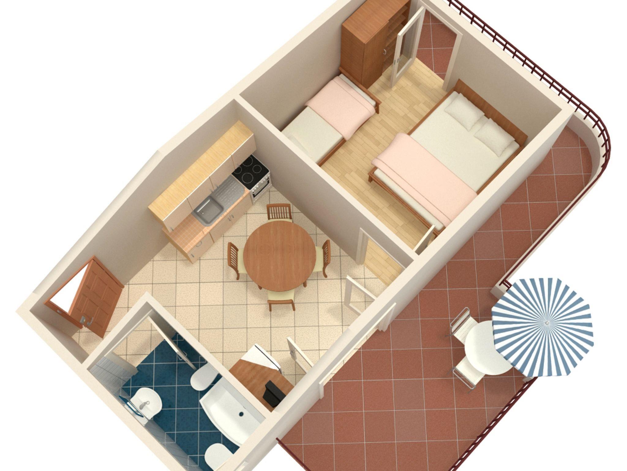 Ferienwohnung bietet Platz für 3 Gäste. Die Betten sind in Schlafzimmern, die es 1 gibt, innerhalb einer Gesamtfläche von 25m2, angeordnet. Die Gäste haben eine eigene Terrasse zur Verfügung, auf der sie in warmen Sommernächten genießen können. Das Apartment bietet Meerblick. Es ist erlaubt, Speisen auf dem Gemeinschafts-Grill vorzubereiten. In der Unterkunftseinheit besteht die Möglichkeit des Mitbringens von Haustieren gegen Aufpreis. IM PREIS INBEGRIFFEN: Kurtaxe, Endreinigung, Klimatisierung, Parkplatz, Internet. VERBINDLICHE ZUSÄTZLICHE KOSTEN: Aufzahlung für Kurzaufenthalte (prozentualer Zuschlag pro Nächtigungsanzahl: 30% - 1, 20% - 2, 10% - 3). UNVERBINDLICHE ZUSÄTZLICHE KOSTEN: Haustiere (5,00 € pro Nacht). Die Verfügbarkeit zusätzlicher Dienstleistungen in Ihrem reservierten Termin und die Preise derselben (falls nicht aufgeführt) müssen im Voraus überprüft werden. Zusätzliche Dienstleistungen die in der Zahlungsaufforderung nicht aufgeführt sind werden direkt beim Vermieter bezahlt, angenommen der Gast nutzt auch diese.