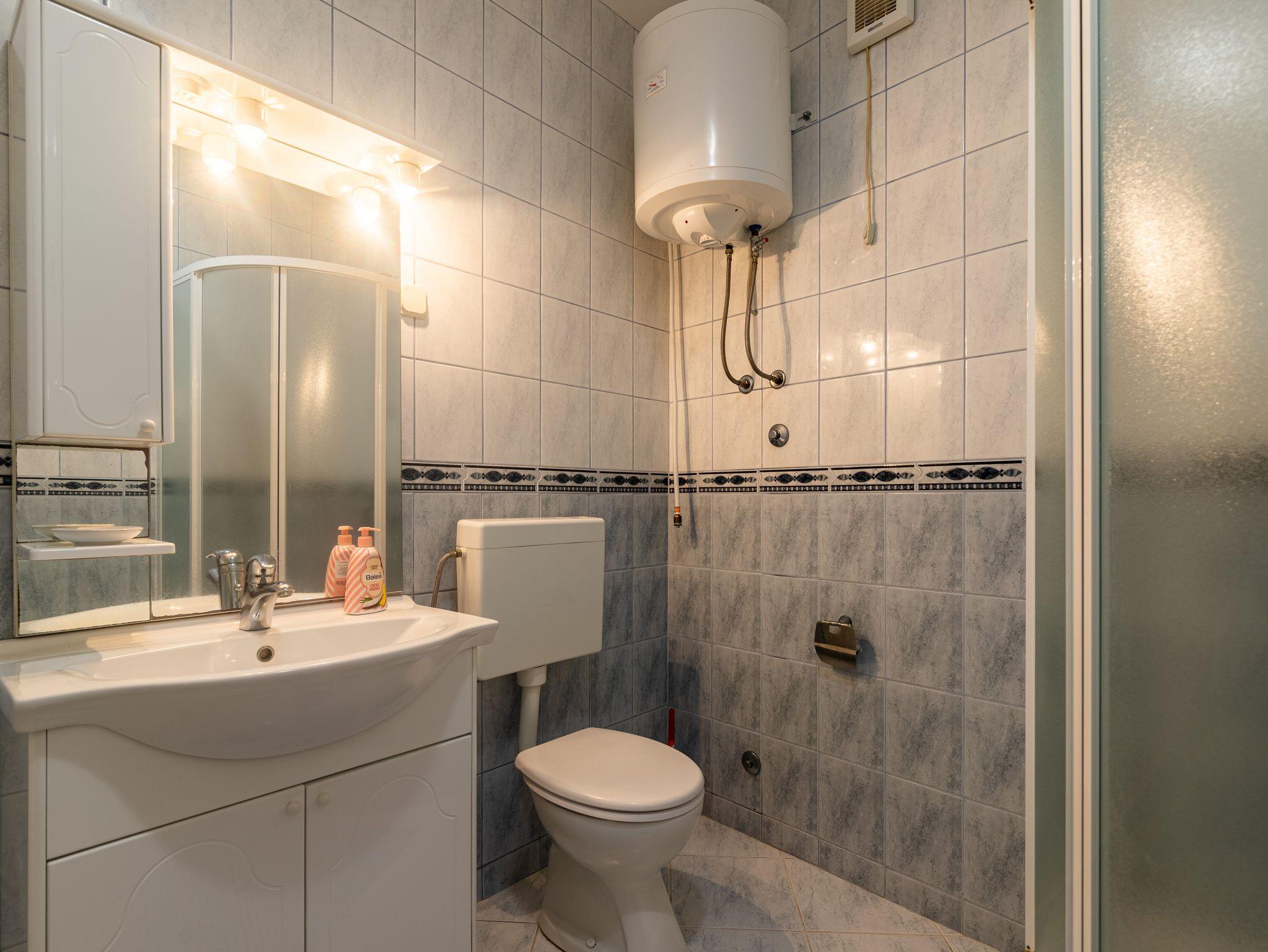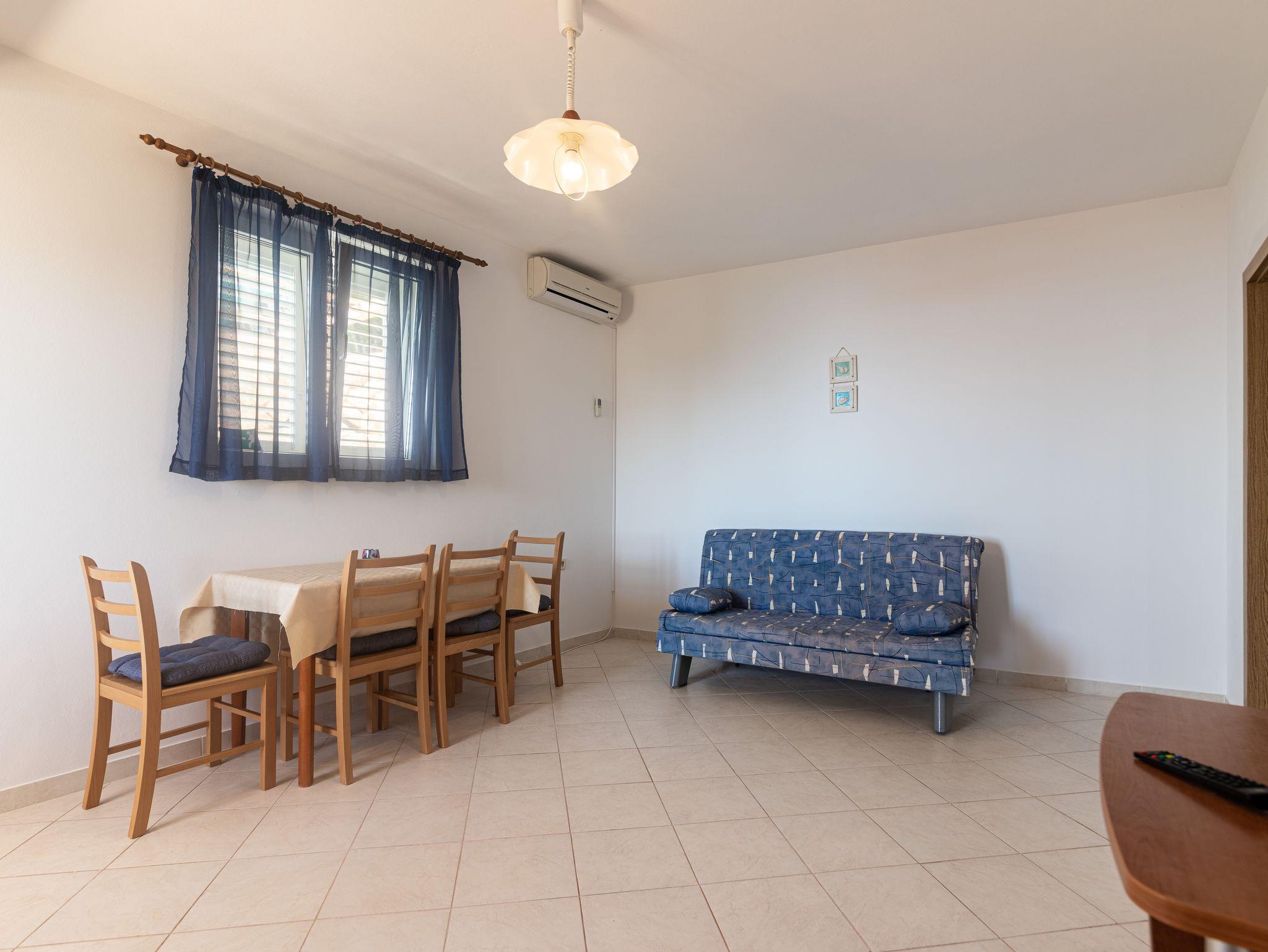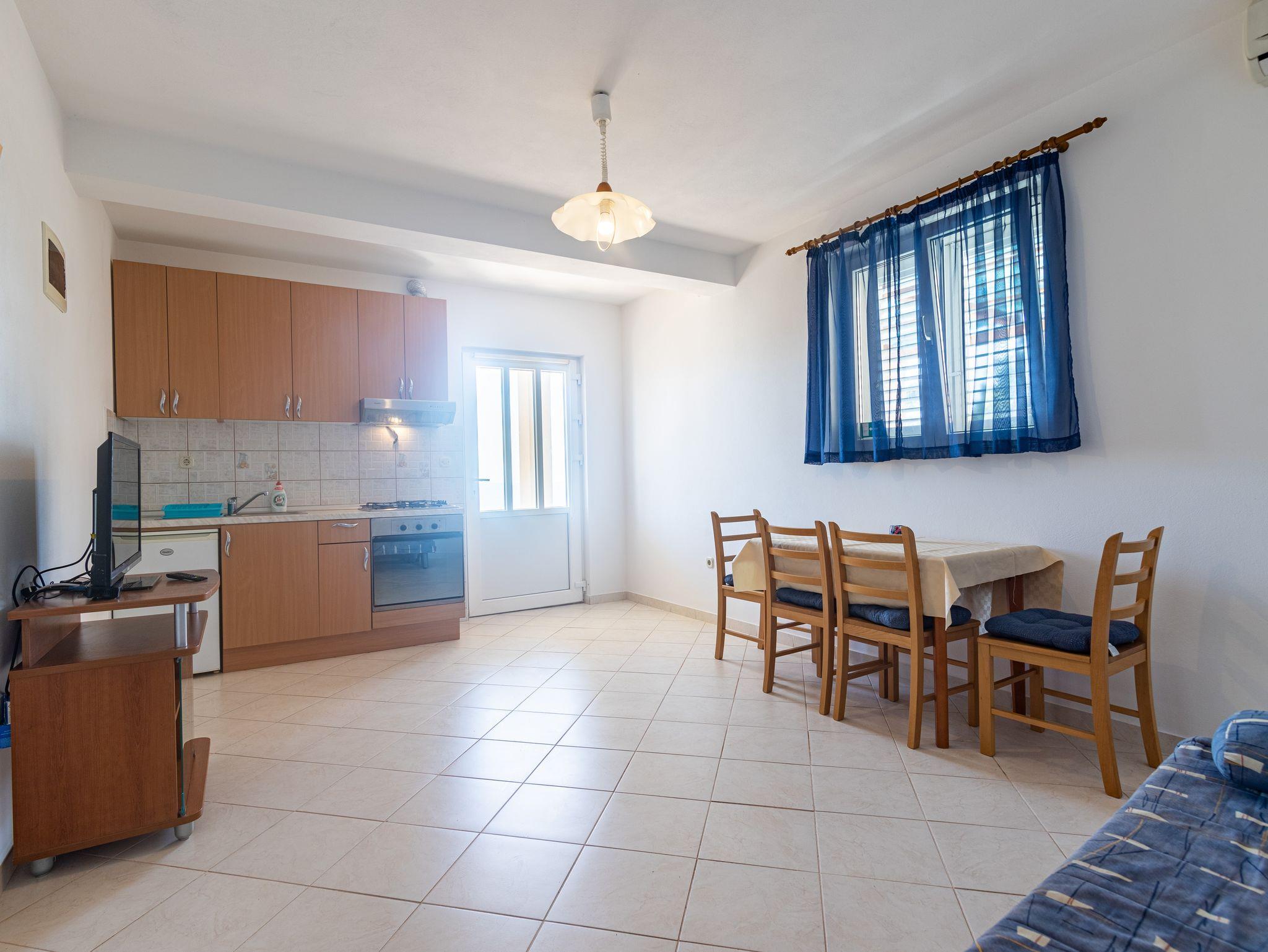 Ferienwohnung bietet Platz für 4 Gäste. Die Betten sind in Schlafzimmern, die es 1 gibt, und in Wohnzimmer, innerhalb einer Gesamtfläche von 43m2, angeordnet. Die Gäste haben eine eigene Terrasse zur Verfügung, auf der sie in warmen Sommernächten genießen können. Das Apartment bietet Meerblick. Für vollen Genuss und Entspannung gibt es einen privaten Grill für Gäste dieser Unterkunft. In der Unterkunftseinheit besteht die Möglichkeit des Mitbringens von Haustieren gegen Aufpreis. IM PREIS INBEGRIFFEN: Kurtaxe, Endreinigung, Klimatisierung, Parkplatz, Internet, Bügeleisen, Bügelbrett, Föhn. VERBINDLICHE ZUSÄTZLICHE KOSTEN: Aufzahlung für Kurzaufenthalte (prozentualer Zuschlag pro Nächtigungsanzahl: 30% - 1, 20% - 2, 10% - 3). UNVERBINDLICHE ZUSÄTZLICHE KOSTEN: Garage (3,00 € pro Nacht), Wäschewaschen (15,00 € Waschen), Haustiere (5,00 € pro Nacht). Die Verfügbarkeit zusätzlicher Dienstleistungen in Ihrem reservierten Termin und die Preise derselben (falls nicht aufgeführt) müssen im Voraus überprüft werden. Zusätzliche Dienstleistungen die in der Zahlungsaufforderung nicht aufgeführt sind werden direkt beim Vermieter bezahlt, angenommen der Gast nutzt auch diese. Ermäßigung auf den Grundpreis: Gratistag 28=25 (bei einem Aufenthalt von 28 oder mehr Tagen erhalten Sie 3 kostenlose Tage für den Aufenthalt bis 31.12.26).