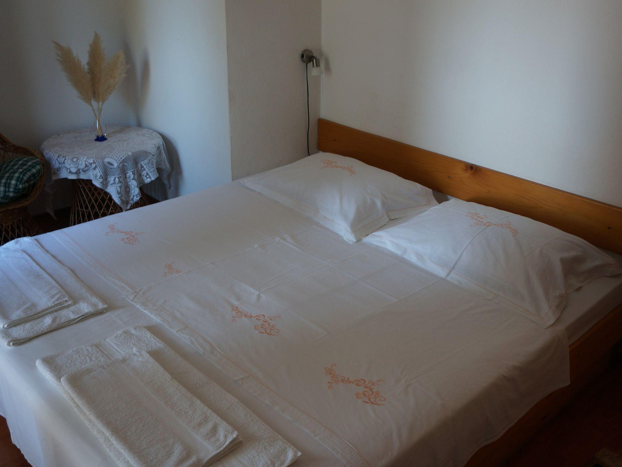 Ferienwohnung bietet Platz für 5 Gäste. Die Betten sind in Schlafzimmern, die es 2 gibt, und in Wohnzimmer, innerhalb einer Gesamtfläche von 45m2, angeordnet. Die Gäste haben eine eigene Terrasse zur Verfügung, auf der sie in warmen Sommernächten genießen können. Es ist erlaubt, Speisen auf dem Gemeinschafts-Grill vorzubereiten. In der Unterkunftseinheit besteht die Möglichkeit des Mitbringens von Haustieren, und die Dienstleistung ist im Preis der Unterkunft enthalten. IM PREIS INBEGRIFFEN: Kurtaxe, Frühstück, Endreinigung, Klimatisierung, Parkplatz, Internet, Wäschewaschen, Bootsanlegeplatz, Haustiere, Fahrrad, Föhn. UNVERBINDLICHE ZUSÄTZLICHE KOSTEN: Halbpension (22,00 €, 50% Nachlass für Kinder zwischen 4 und 12 Jahren, Kinder bis 4 Jahre sind frei.), Zusatzbett (15,00 € pro Nacht). Die Verfügbarkeit zusätzlicher Dienstleistungen in Ihrem reservierten Termin und die Preise derselben (falls nicht aufgeführt) müssen im Voraus überprüft werden. Zusätzliche Dienstleistungen die in der Zahlungsaufforderung nicht aufgeführt sind werden direkt beim Vermieter bezahlt, angenommen der Gast nutzt auch diese.