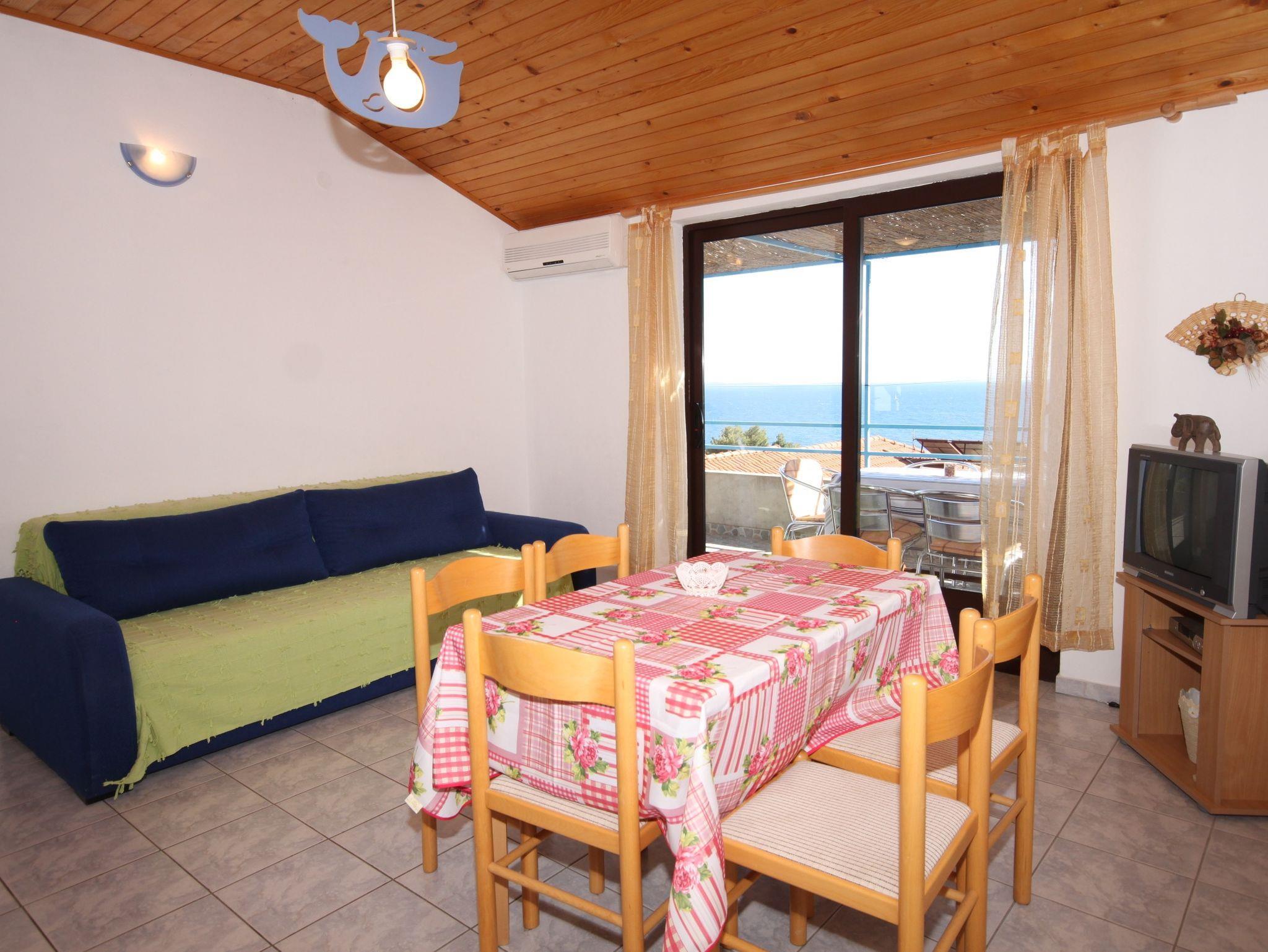 Ferienwohnung bietet Platz für 4 Gäste. Die Betten sind in Schlafzimmern, die es 2 gibt, innerhalb einer Gesamtfläche von 48m2, angeordnet. Die Gäste haben eine eigene Terrasse zur Verfügung, auf der sie in warmen Sommernächten genießen können. Das Apartment bietet Meerblick. Es ist erlaubt, Speisen auf dem Gemeinschafts-Grill vorzubereiten. In der Unterkunftseinheit besteht die Möglichkeit des Mitbringens von Haustieren, und die Dienstleistung ist im Preis der Unterkunft enthalten. IM PREIS INBEGRIFFEN: Kurtaxe, Endreinigung, Klimatisierung, Parkplatz, Internet, Haustiere, Kinderbett, Bügeleisen, Bügelbrett, Föhn, tragbarer Grill. VERBINDLICHE ZUSÄTZLICHE KOSTEN: Aufzahlung für Kurzaufenthalte (prozentualer Zuschlag pro Nächtigungsanzahl: 30% - 1, 20% - 2, 10% - 3). Die Verfügbarkeit zusätzlicher Dienstleistungen in Ihrem reservierten Termin und die Preise derselben (falls nicht aufgeführt) müssen im Voraus überprüft werden. Zusätzliche Dienstleistungen die in der Zahlungsaufforderung nicht aufgeführt sind werden direkt beim Vermieter bezahlt, angenommen der Gast nutzt auch diese. Ermäßigung auf den Grundpreis: Gratistag 14=13 (bei einem Aufenthalt von 14 Tagen oder mehr erhalten Sie einen Gratistag für den Aufenthalt bis 31.12.26).