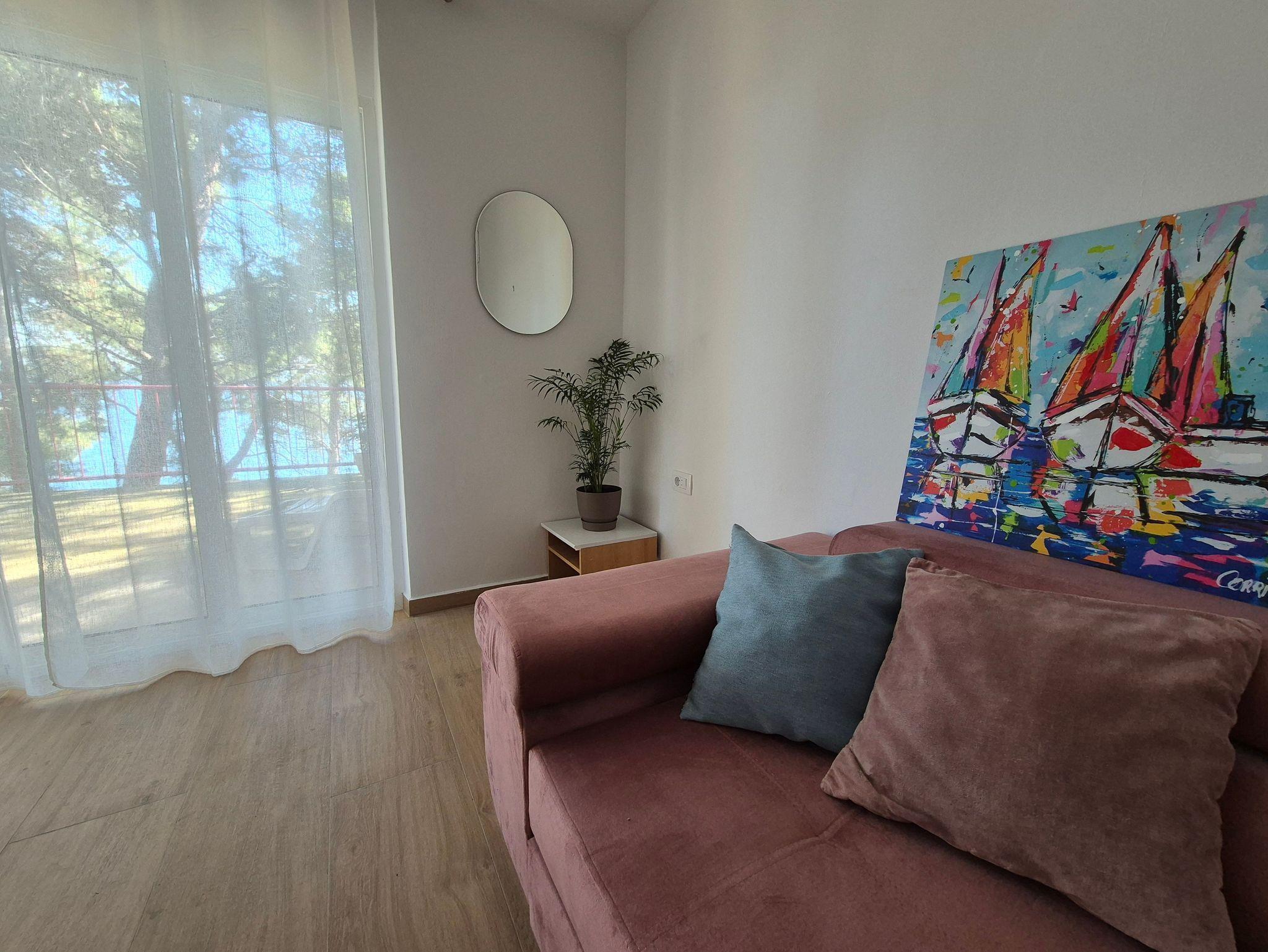 Ferienwohnung bietet Platz für 4 Gäste. Die Betten sind in Schlafzimmern, die es 2 gibt, innerhalb einer Gesamtfläche von 59m2, angeordnet. Die Gäste haben eine eigene Terrasse zur Verfügung, auf der sie in warmen Sommernächten genießen können. Das Apartment bietet Meerblick. Es ist erlaubt, Speisen auf dem Gemeinschafts-Grill vorzubereiten. In der Unterkunftseinheit besteht die Möglichkeit des Mitbringens von Haustieren gegen Aufpreis. IM PREIS INBEGRIFFEN: Kurtaxe, Endreinigung, Klimatisierung, Parkplatz, Bügeleisen, Bügelbrett, Föhn. VERBINDLICHE ZUSÄTZLICHE KOSTEN: Aufzahlung für Kurzaufenthalte (prozentualer Zuschlag pro Nächtigungsanzahl: 30% - 1, 20% - 2, 10% - 3). UNVERBINDLICHE ZUSÄTZLICHE KOSTEN: Haustiere (5,00 € pro Nacht), Zusatzbett (10,00 € pro Nacht). Die Verfügbarkeit zusätzlicher Dienstleistungen in Ihrem reservierten Termin und die Preise derselben (falls nicht aufgeführt) müssen im Voraus überprüft werden. Zusätzliche Dienstleistungen die in der Zahlungsaufforderung nicht aufgeführt sind werden direkt beim Vermieter bezahlt, angenommen der Gast nutzt auch diese.