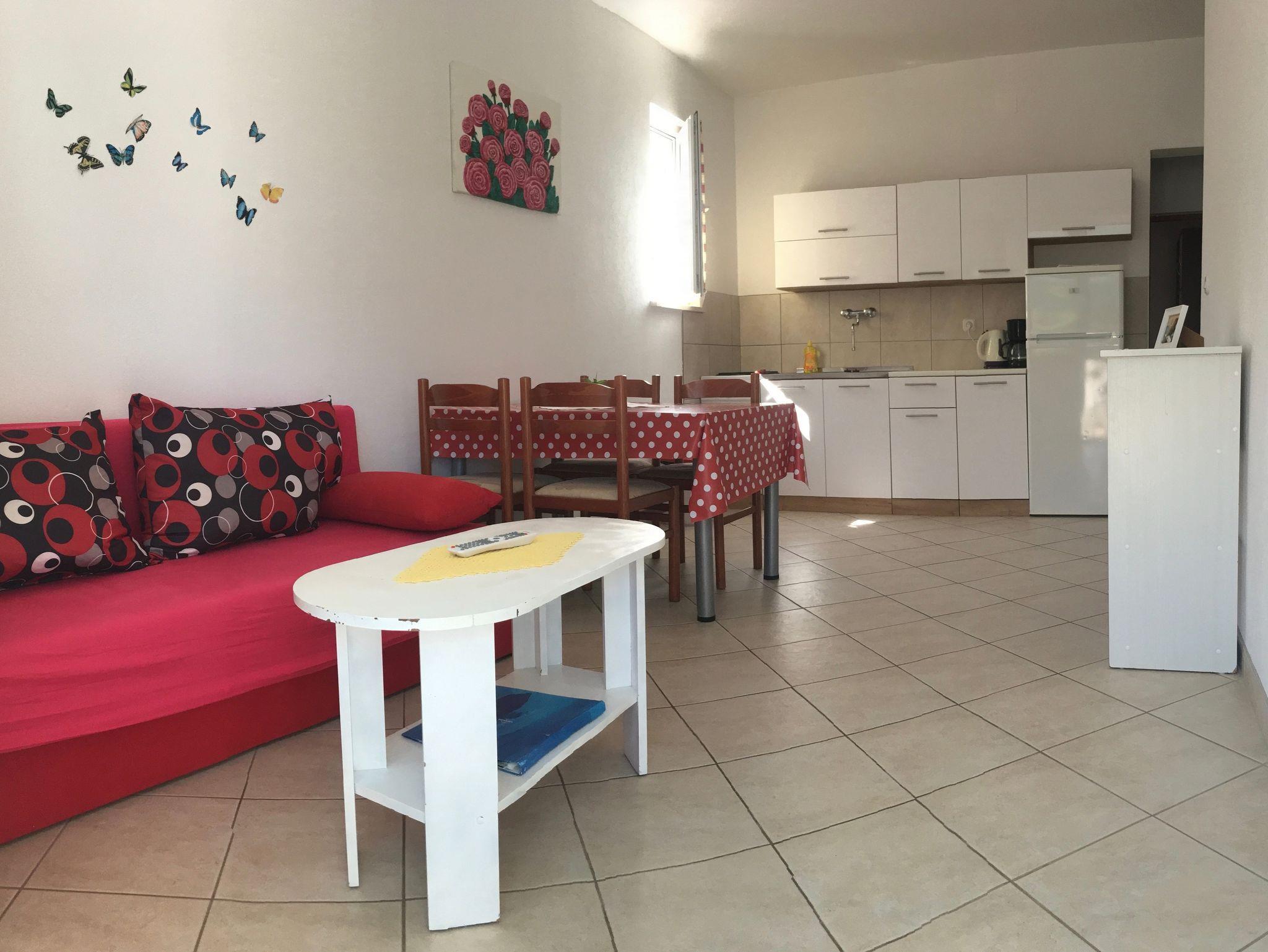 Ferienwohnung bietet Platz für 4 Gäste. Die Betten sind in Schlafzimmern, die es 2 gibt, innerhalb einer Gesamtfläche von 45m2, angeordnet. Die Gäste haben eine eigene Terrasse zur Verfügung, auf der sie in warmen Sommernächten genießen können. Das Apartment bietet Meerblick. Es ist erlaubt, Speisen auf dem Gemeinschafts-Grill vorzubereiten. IM PREIS INBEGRIFFEN: Kurtaxe, Endreinigung, Klimatisierung, Parkplatz, Internet, Bootsanlegeplatz, Kinderbett, Bügeleisen, Bügelbrett. Die Verfügbarkeit zusätzlicher Dienstleistungen in Ihrem reservierten Termin und die Preise derselben (falls nicht aufgeführt) müssen im Voraus überprüft werden. Zusätzliche Dienstleistungen die in der Zahlungsaufforderung nicht aufgeführt sind werden direkt beim Vermieter bezahlt, angenommen der Gast nutzt auch diese.