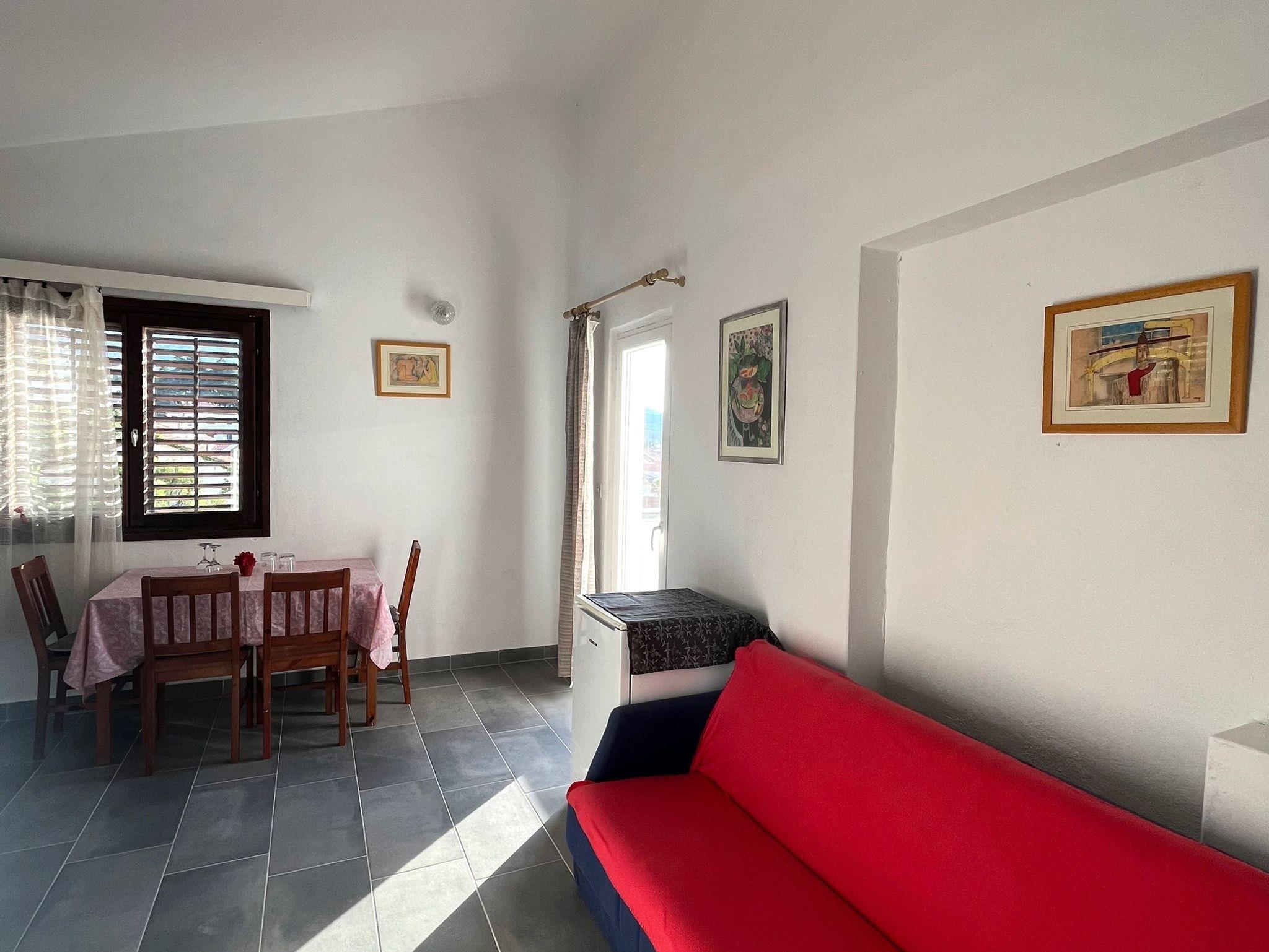 Ferienwohnung bietet Platz für 4 Gäste. Die Betten sind in Schlafzimmern, die es 1 gibt, und in Wohnzimmer, innerhalb einer Gesamtfläche von 55m2, angeordnet. Die Gäste haben eine eigene Terrasse zur Verfügung, auf der sie in warmen Sommernächten genießen können. Das Apartment bietet Meerblick. In der Unterkunftseinheit besteht die Möglichkeit des Mitbringens von Haustieren, und die Dienstleistung ist im Preis der Unterkunft enthalten. IM PREIS INBEGRIFFEN: Kurtaxe, Endreinigung, Klimatisierung, Parkplatz, Internet, Haustiere. VERBINDLICHE ZUSÄTZLICHE KOSTEN: Aufzahlung für Kurzaufenthalte (prozentualer Zuschlag pro Nächtigungsanzahl: 30% - 1, 20% - 2, 10% - 3). UNVERBINDLICHE ZUSÄTZLICHE KOSTEN: Zusatzbett (15,00 € pro Nacht). Die Verfügbarkeit zusätzlicher Dienstleistungen in Ihrem reservierten Termin und die Preise derselben (falls nicht aufgeführt) müssen im Voraus überprüft werden. Zusätzliche Dienstleistungen die in der Zahlungsaufforderung nicht aufgeführt sind werden direkt beim Vermieter bezahlt, angenommen der Gast nutzt auch diese.