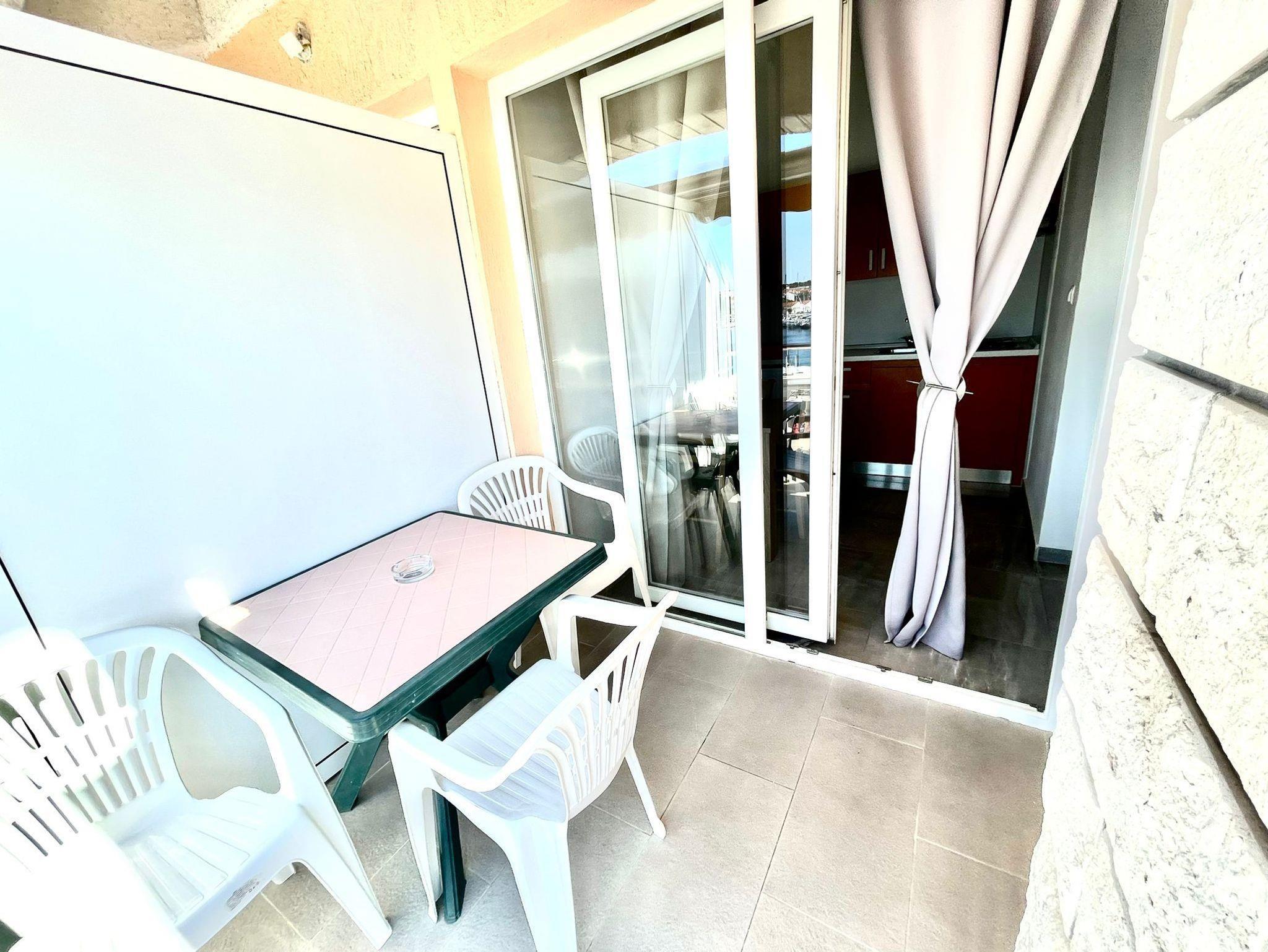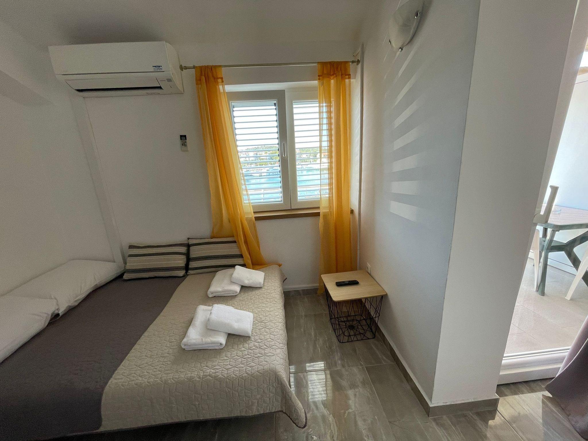 Ferienwohnung bietet Platz für 4 Gäste. Die Betten sind in Schlafzimmern, die es 1 gibt, und in Wohnzimmer, innerhalb einer Gesamtfläche von 24m2, angeordnet. Die Gäste haben eine eigene Terrasse zur Verfügung, auf der sie in warmen Sommernächten genießen können. Das Apartment bietet Meerblick. Es ist erlaubt, Speisen auf dem Gemeinschafts-Grill vorzubereiten. IM PREIS INBEGRIFFEN: Kurtaxe, Endreinigung, Klimatisierung, Parkplatz, Internet, tragbarer Grill. VERBINDLICHE ZUSÄTZLICHE KOSTEN: Aufzahlung für Kurzaufenthalte (prozentualer Zuschlag pro Nächtigungsanzahl: 30% - 1, 20% - 2, 10% - 3). Die Verfügbarkeit zusätzlicher Dienstleistungen in Ihrem reservierten Termin und die Preise derselben (falls nicht aufgeführt) müssen im Voraus überprüft werden. Zusätzliche Dienstleistungen die in der Zahlungsaufforderung nicht aufgeführt sind werden direkt beim Vermieter bezahlt, angenommen der Gast nutzt auch diese.