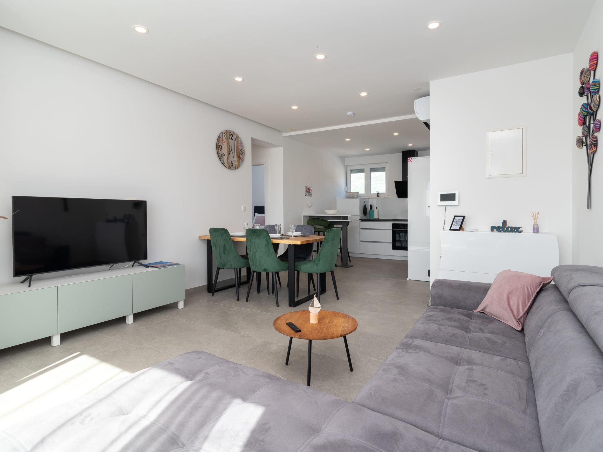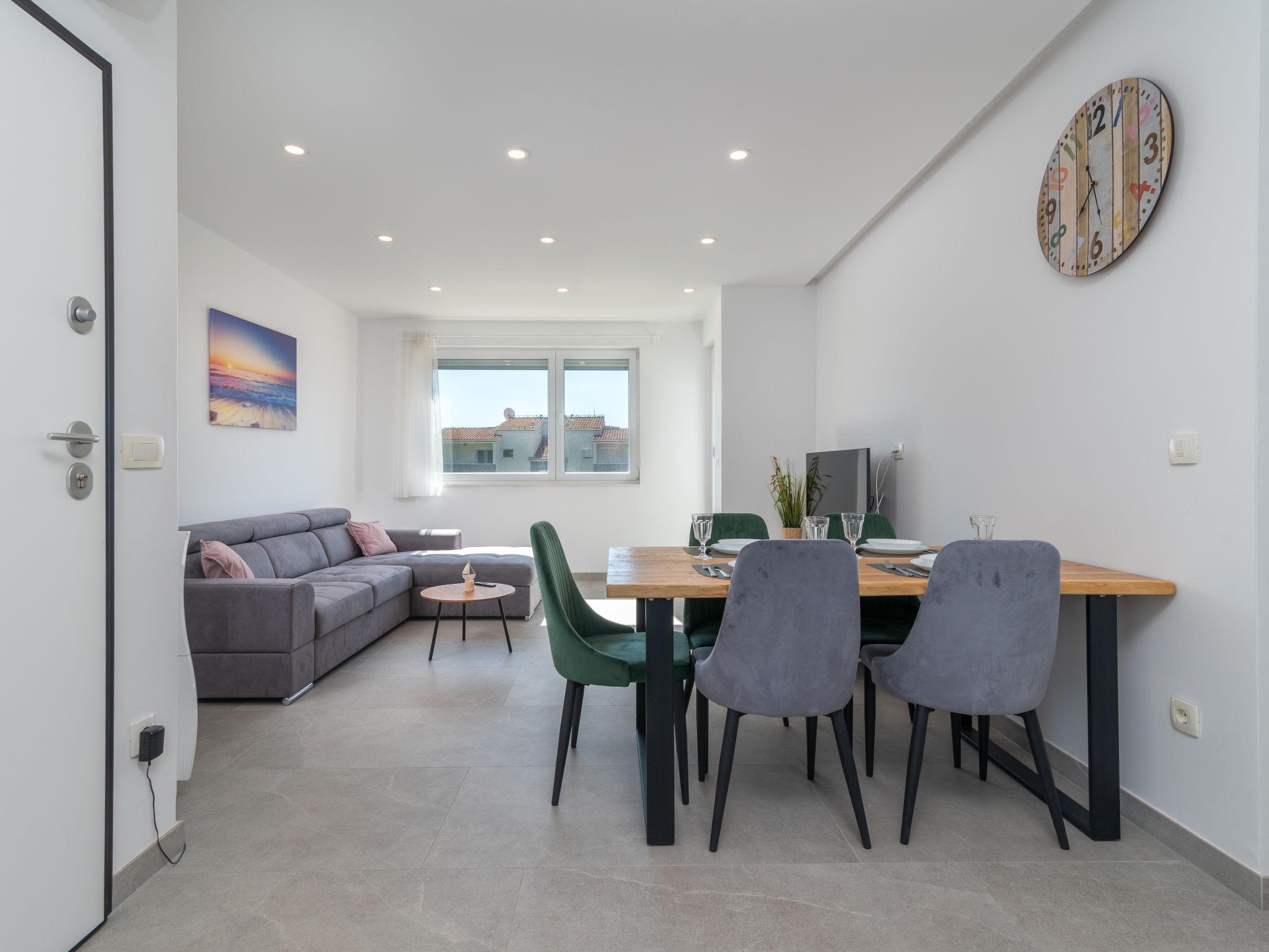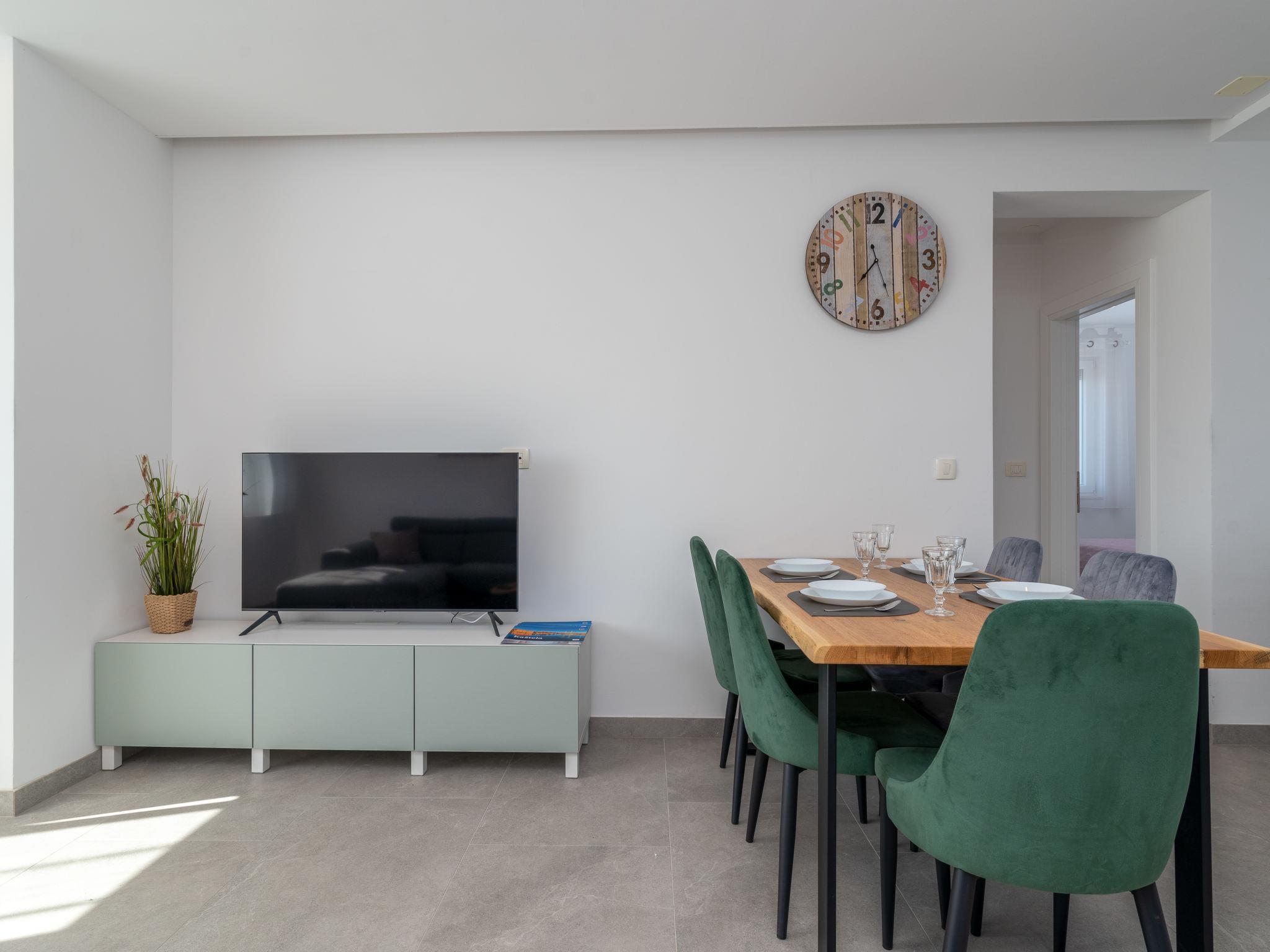 Mehrfamilienhaus auf 2 Stockwerken. 1 km vom Zentrum von Kaštel Novi, sonnige Lage, 1 km vom Meer, 1 km vom Strand, Richtung Süden. Im Hause: Internetzugang. Parkplatz beim Haus auf dem Grundstück. Einkaufsgeschäft 900 m, Restaurant 1 km, Bushaltestelle 1 km, Kieselstrand 1 km, Felsstrand 1 km.