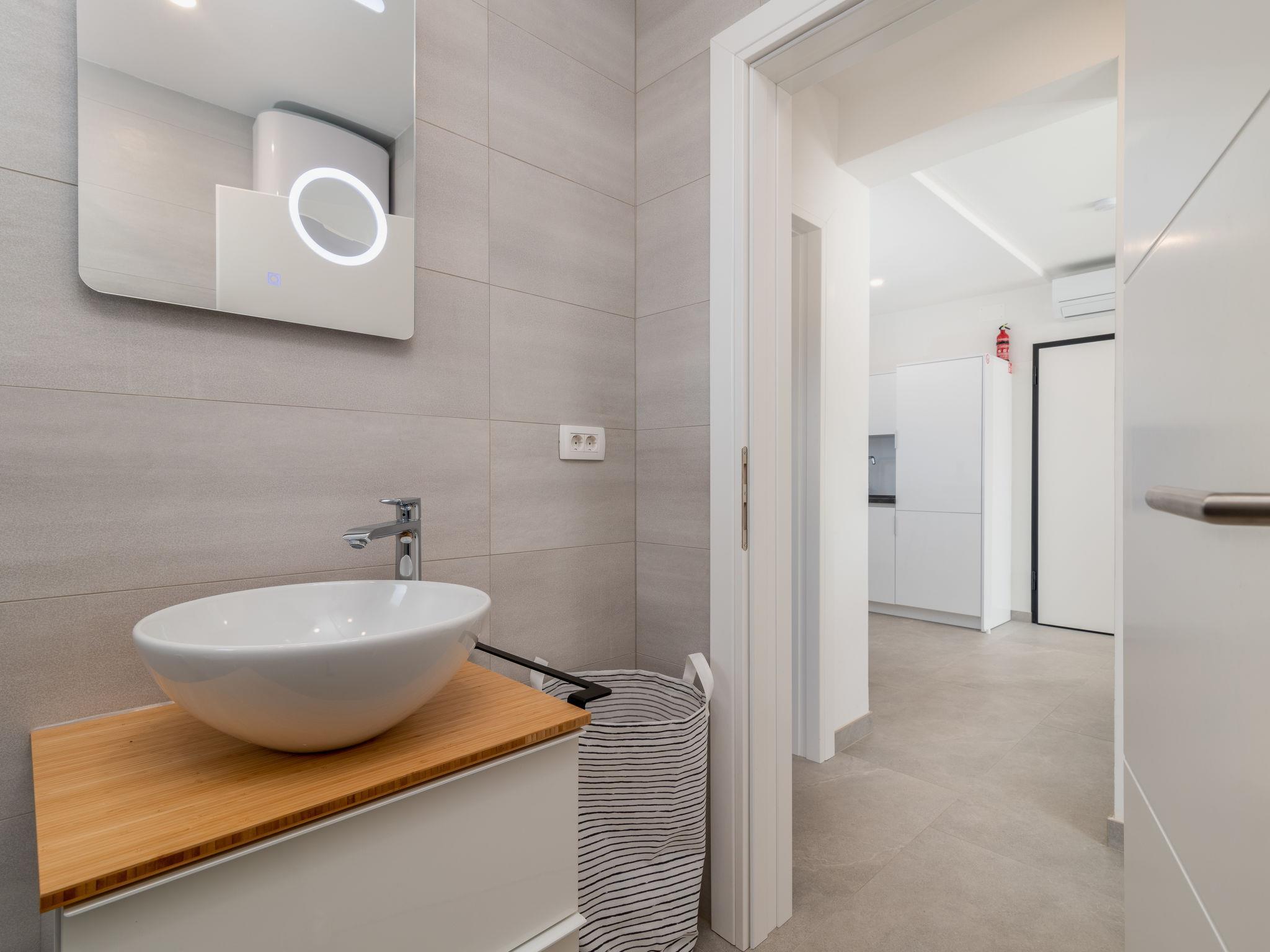 "M&M 2", 3-Zimmer-Wohnung 60 m2 im 2. Stock, Südlage. Wohn-/Esszimmer mit 1 Doppeldiwanbett (140 cm, Länge 200 cm), Sat-TV (Flachbildschirm), Klimaanlage. Ausgang zum Balkon. 1 Zimmer mit 1 franz. Bett (160 cm, Länge 200 cm). 1 Zimmer mit 2 Betten (90 cm, Länge 200 cm). Offene Küche (Backofen, Geschirrspüler, 4 Glaskeramikplatten, Wasserkocher, Tiefkühler, elektrische Kaffeemaschine). Dusche/WC. Balkon 4 m2. Balkonmöbel. Zur Verfügung: Waschmaschine, Kinderhochstuhl, Babybett, Haartrockner. Internet (Wireless LAN, gratis).