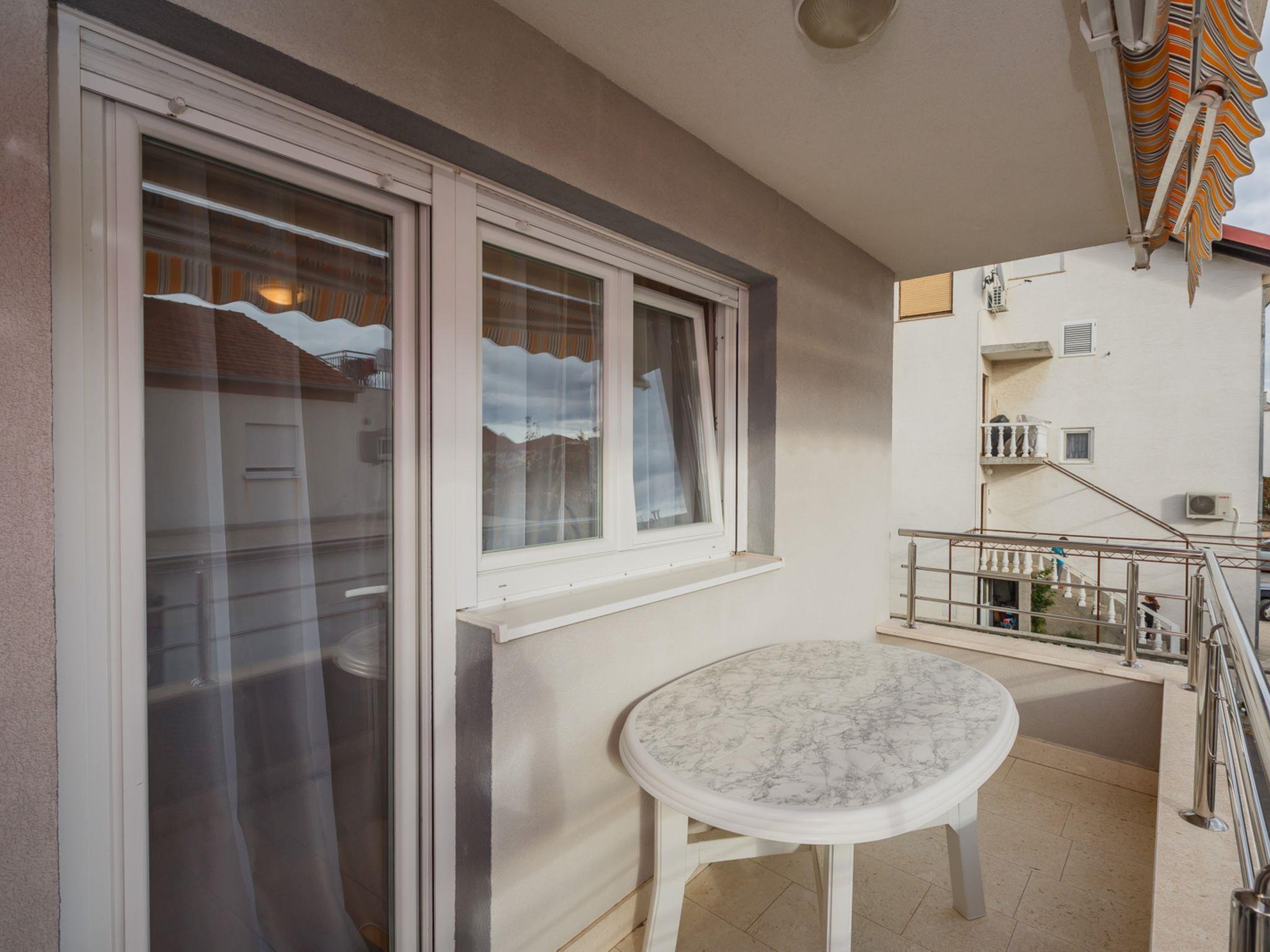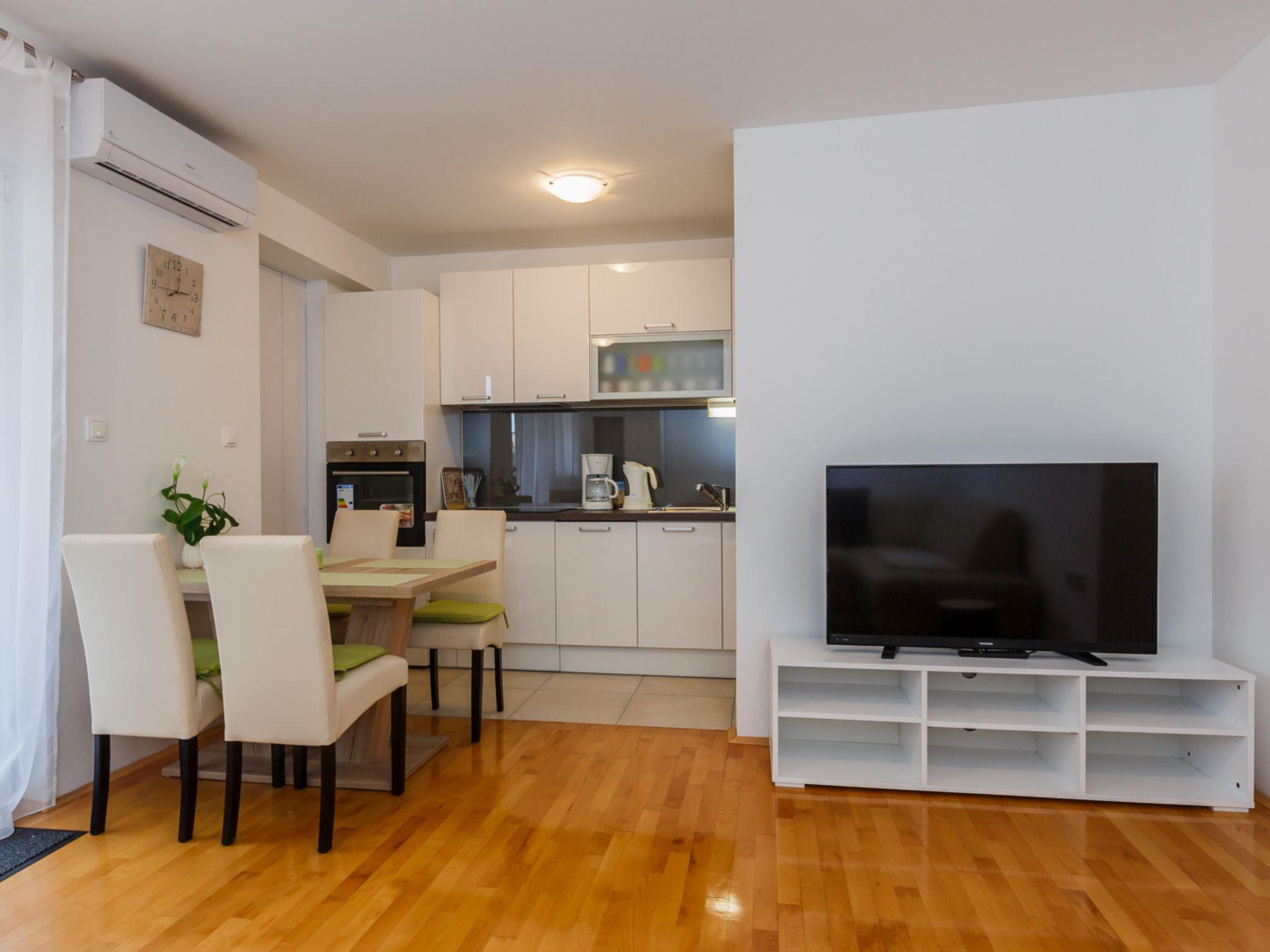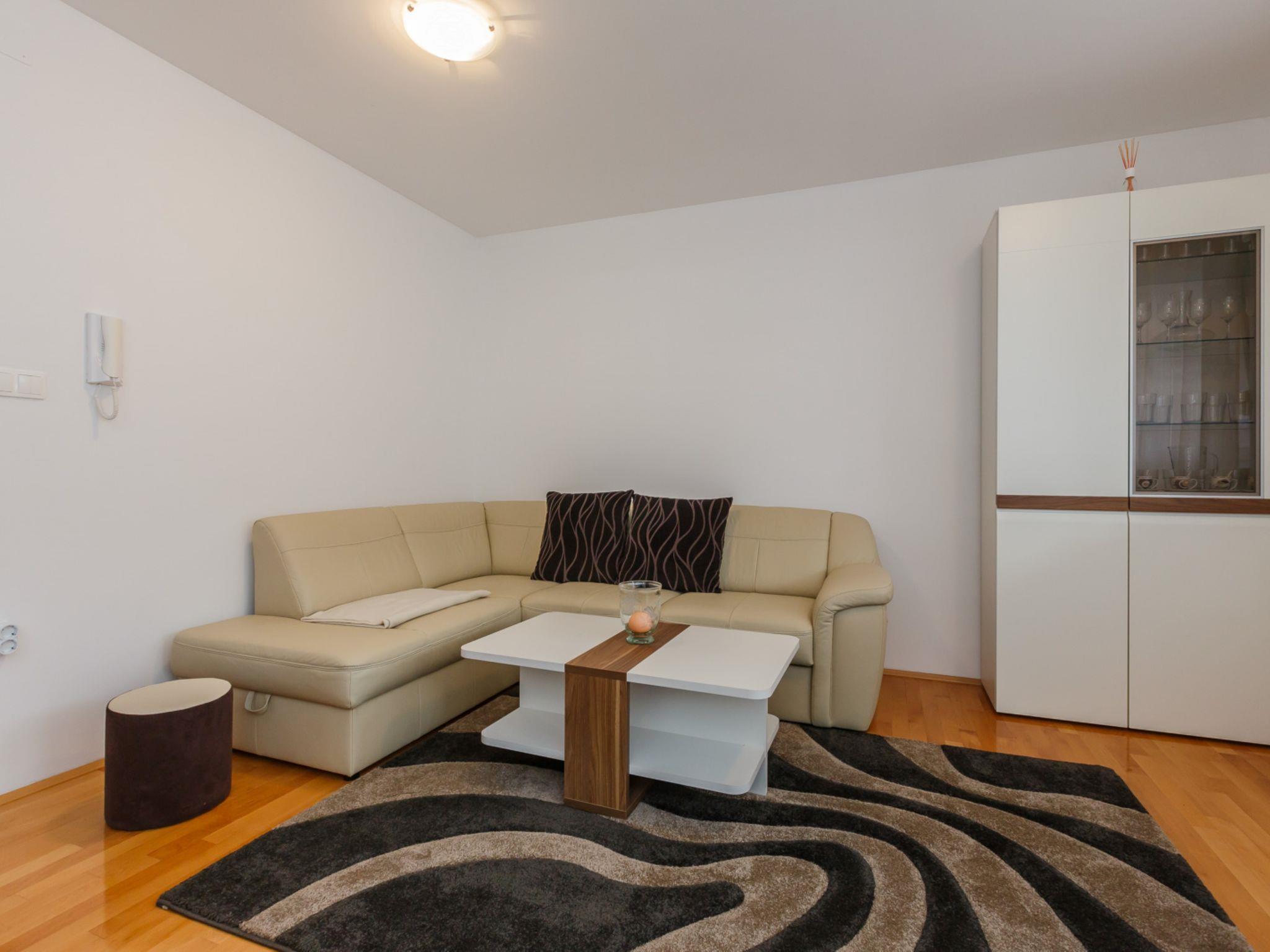 "Ružica", 3-Zimmer-Wohnung 60 m2 im 1. Stock, Südlage. Wohn-/Esszimmer mit Sat-TV (Flachbildschirm), Klimaanlage. Ausgang zum Balkon. 1 Zimmer mit 1 Doppelbett (2 x 90 cm, Länge 200 cm). 1 Zimmer mit 1 Bett (90 cm, Länge 200 cm). Offene Küche (4 Kochplatten, Backofen, Geschirrspüler, Wasserkocher, Tiefkühler). Dusche/WC. Balkon 4 m2. Balkonmöbel. Zur Verfügung: Waschmaschine, Haartrockner. Internet (Wireless LAN, gratis).