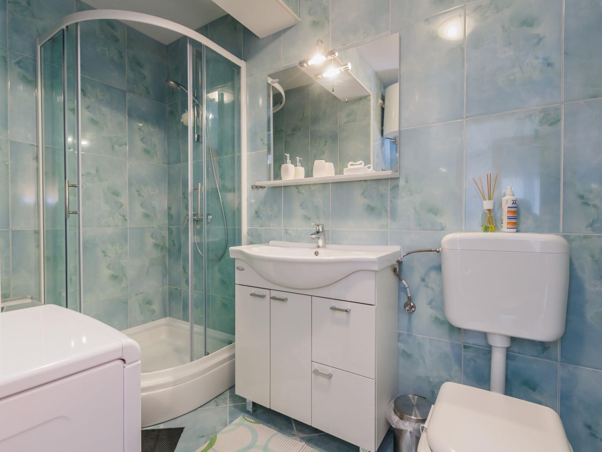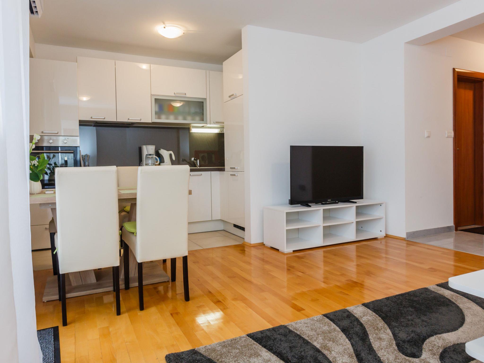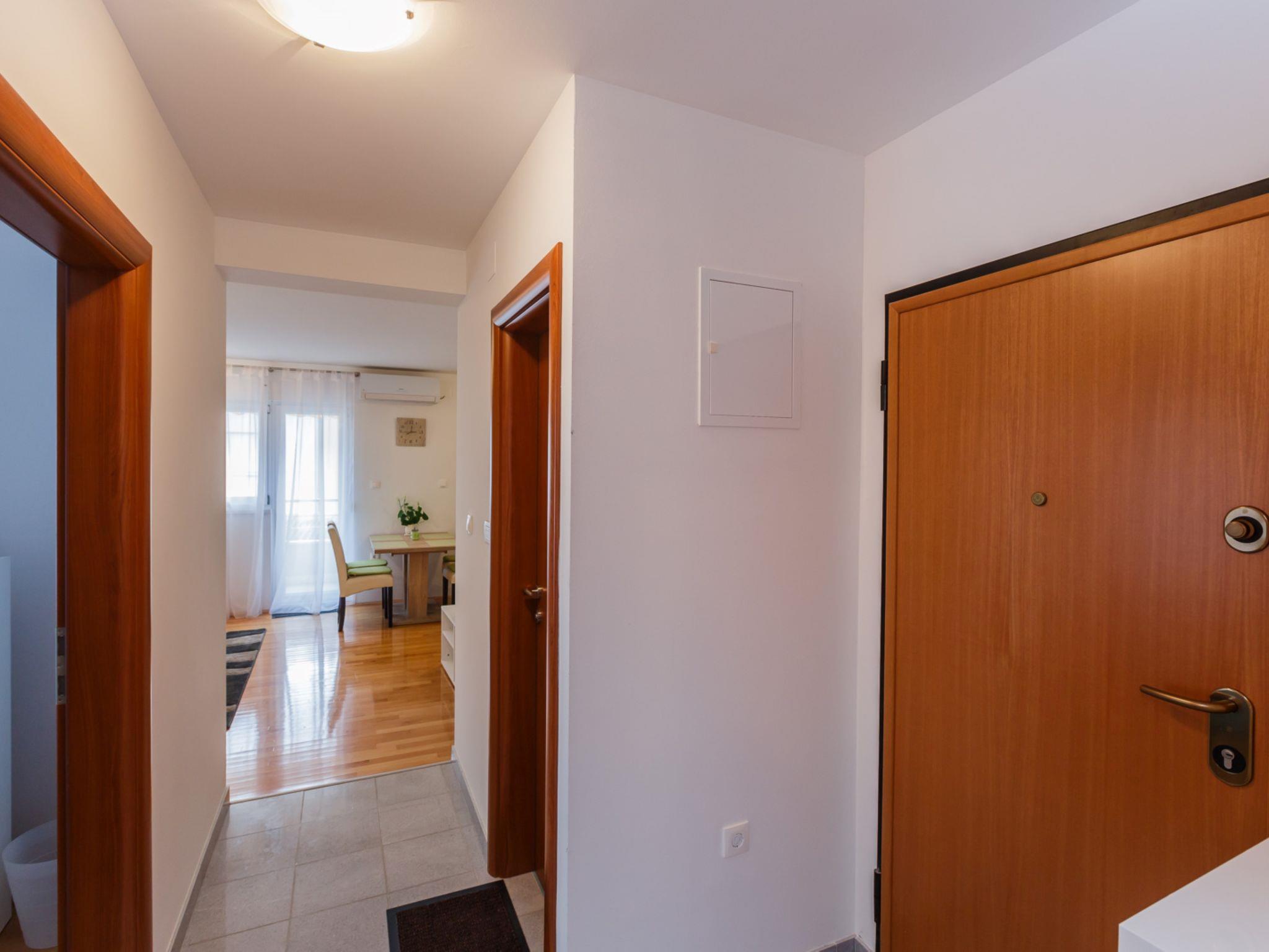 "Ružica", 3-Zimmer-Wohnung 60 m2 im 1. Stock, Südlage. Wohn-/Esszimmer mit Sat-TV (Flachbildschirm), Klimaanlage. Ausgang zum Balkon. 1 Zimmer mit 1 Doppelbett (2 x 90 cm, Länge 200 cm). 1 Zimmer mit 1 Bett (90 cm, Länge 200 cm). Offene Küche (4 Kochplatten, Backofen, Geschirrspüler, Wasserkocher, Tiefkühler). Dusche/WC. Balkon 4 m2. Balkonmöbel. Zur Verfügung: Waschmaschine, Haartrockner. Internet (Wireless LAN, gratis).