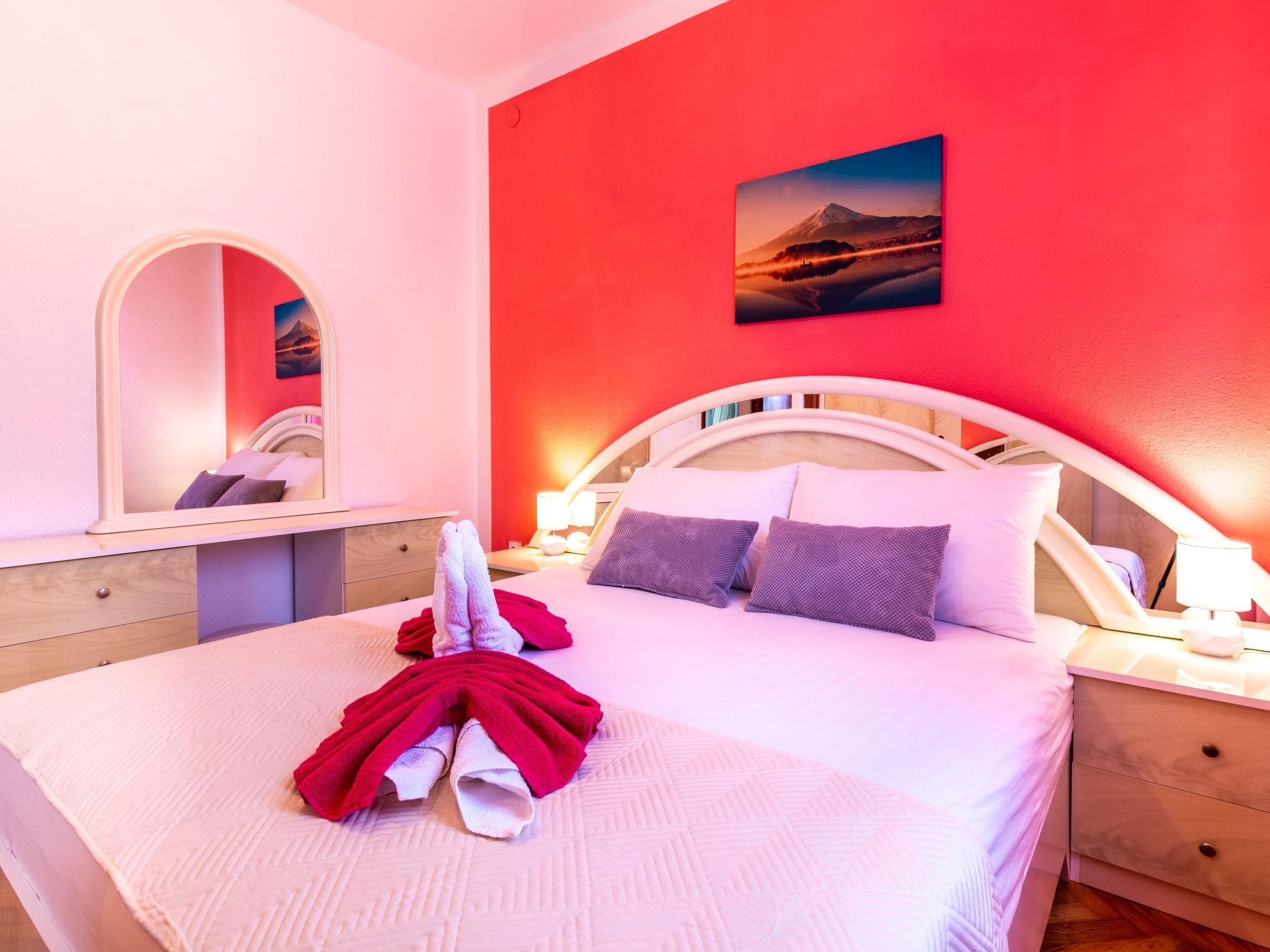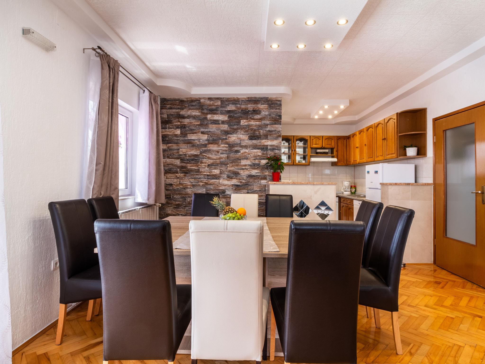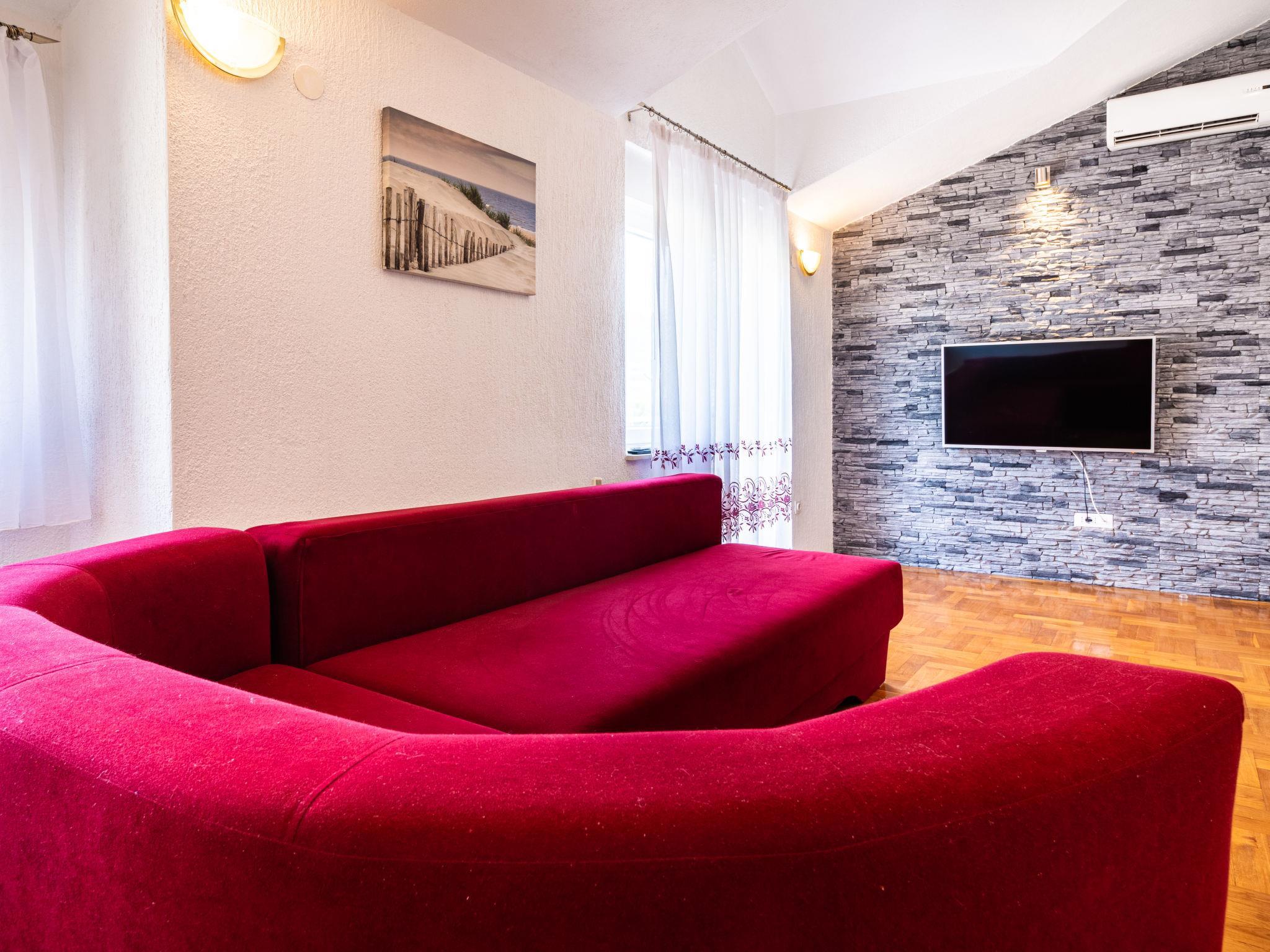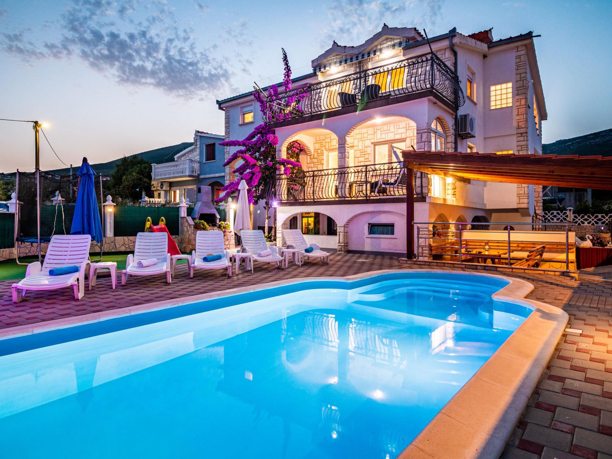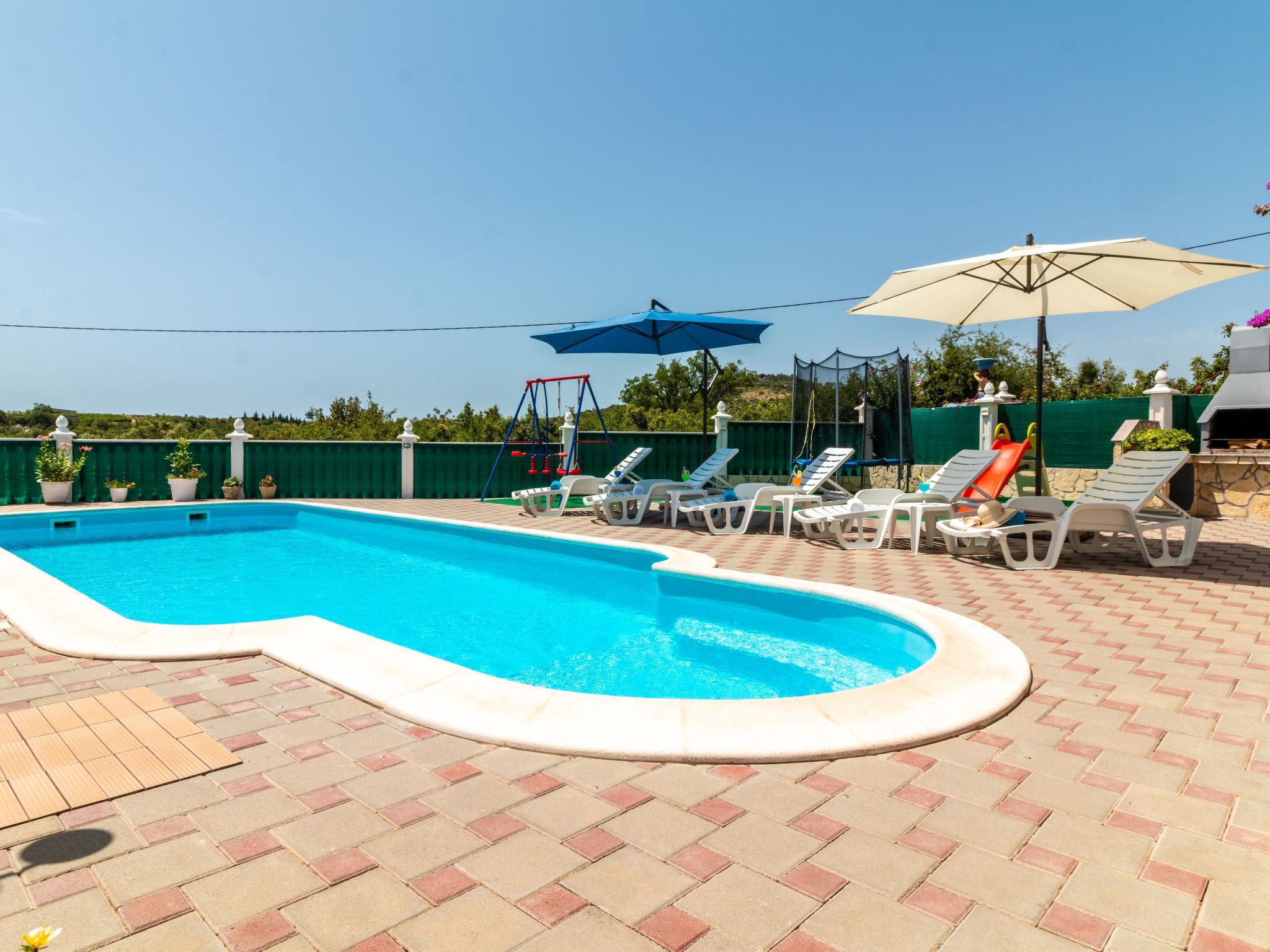 Dreifamilienhaus "Josipa". 2.8 km vom Zentrum von Kaštel Novi, ruhige, sonnige Lage, 2.5 km vom Meer. Zur Alleinbenutzung: Grundstück 600 m2 (eingezäunt), Schwimmbad nierenförmig (7 x 3 m, 150 cm tief, saisonale Verfügbarkeit: 01.Jun. - 01.Okt.) mit Innentreppe. Aussendusche, Terrasse (30 m2), Gartenmöbel, Grill, Kinderspielplatz (Schaukel). Im Hause: Internetzugang, Tischfussball, Trampolin, Waschmaschine. Parkplatz (für 3 Autos) beim Haus auf dem Grundstück. Einkaufsgeschäft 250 m, Restaurant 1.5 km, Bushaltestelle 1.1 km, Kieselstrand 2.5 km. Jugendgruppen nur auf Anfrage. Die Nachbarschaft ist sehr lärmempfindlich. Ruhe und gutes Benehmen wird erwartet.